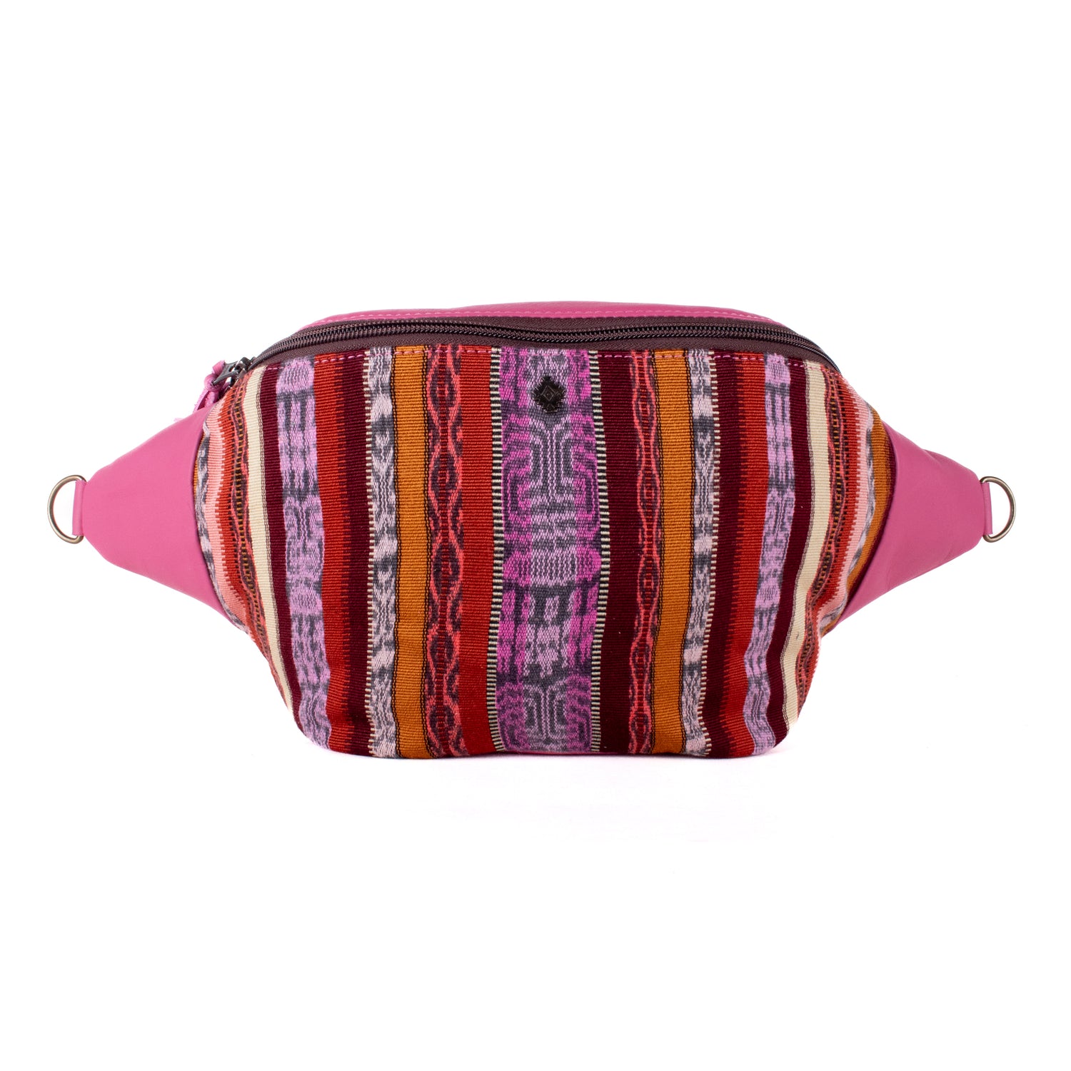 Many unique Maya symbols can be found in our One of a Kind Collection. The fabric we use for this collection is made from upcycled vintage huipiles (traditional attire worn by women in Guatemala) that were handwoven by Artisans up to 10 years ago, and they have lived a full life before being incorporated into your leather bag!