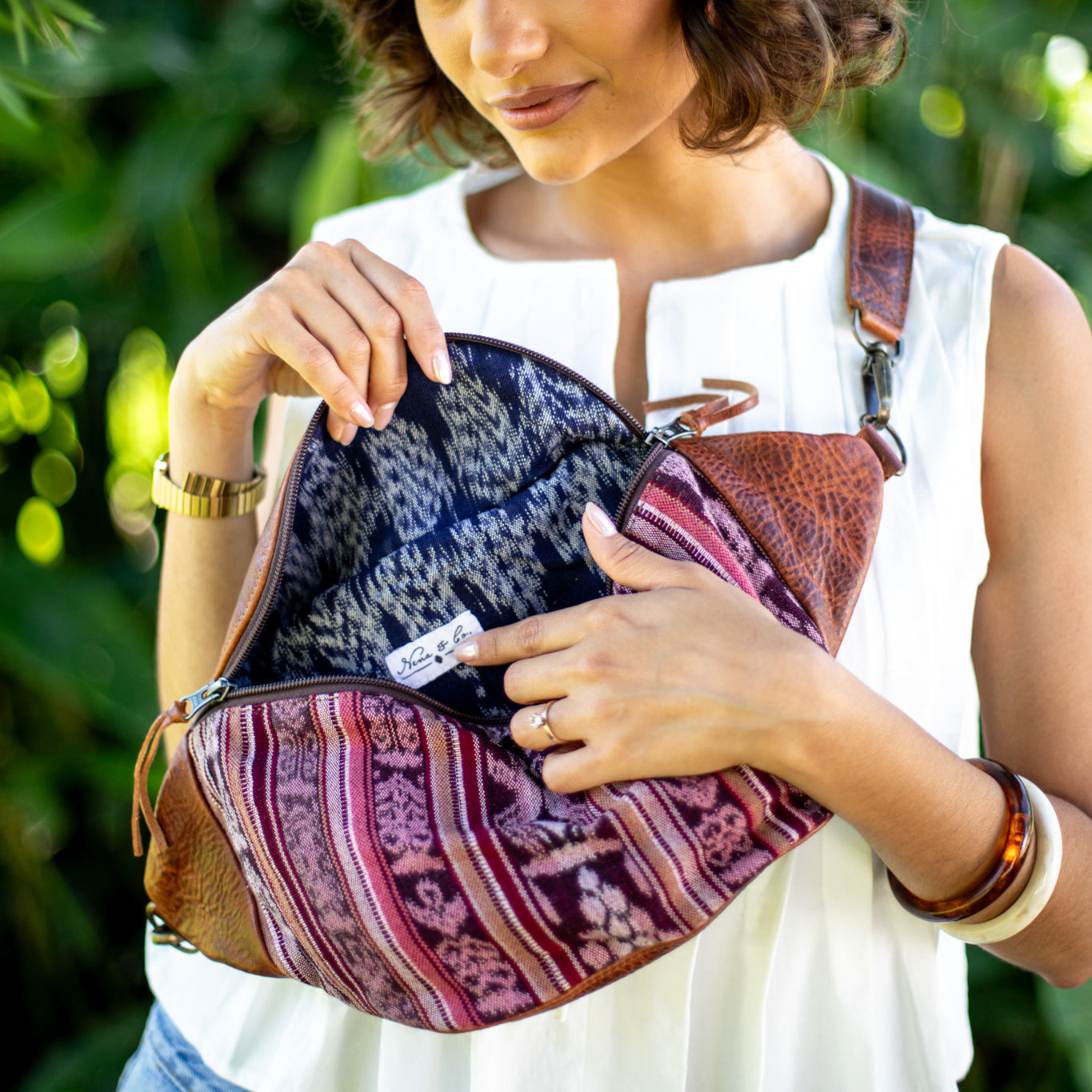 We make every effort to provide our customers with the best-handcrafted and high-quality bags. Please note that all our processes to make the bags are done by hand, from curing, cutting, and treating the leather to using up-cycled huipils. Our bags have natural characteristics and qualities that should not be considered as flaws or as damage because they do not interfere with the functionality of the bag. We up-cycle vintage Maya clothing to make beautiful one-of-a-kind products. Many times you will find snags in the pattern. This is normal. Should your patterned huipil snag you can snip the loose threads with scissors. Do not pull them.