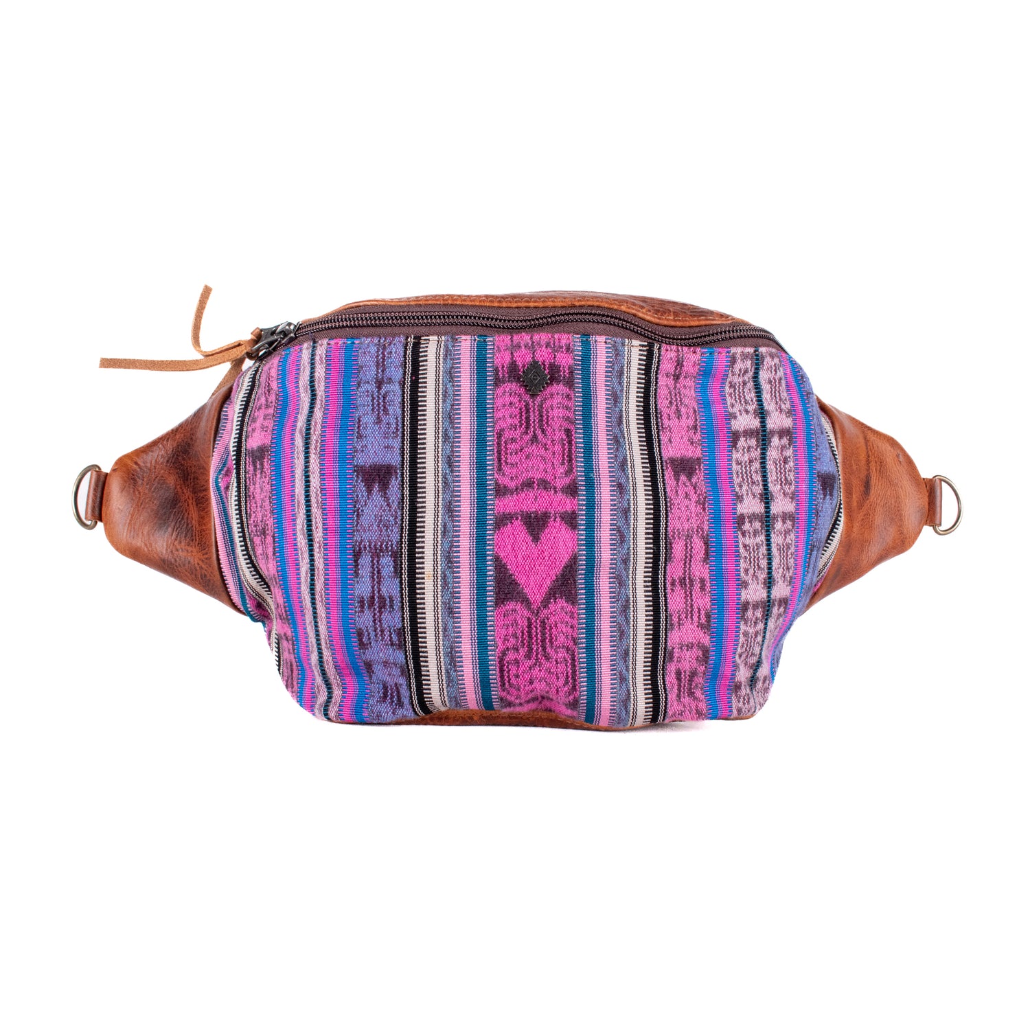 Many unique Maya symbols can be found in our One of a Kind Collection. The fabric we use for this collection is made from upcycled vintage huipiles (traditional attire worn by women in Guatemala) that were handwoven by Artisans up to 10 years ago, and they have lived a full life before being incorporated into your leather bag!