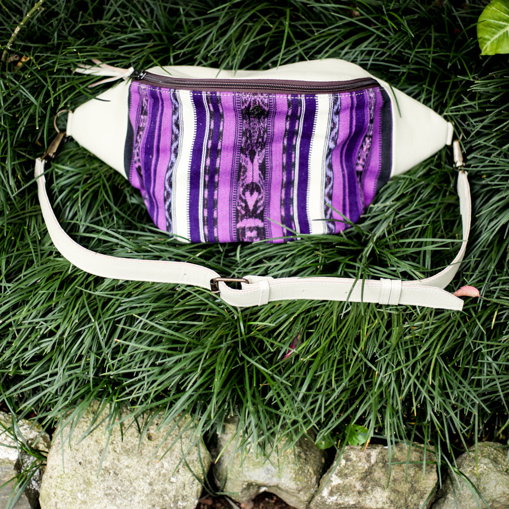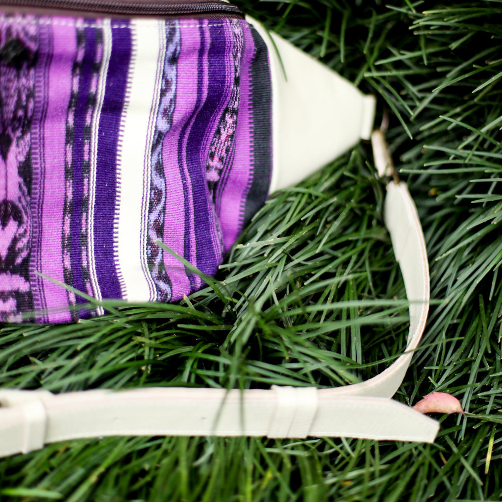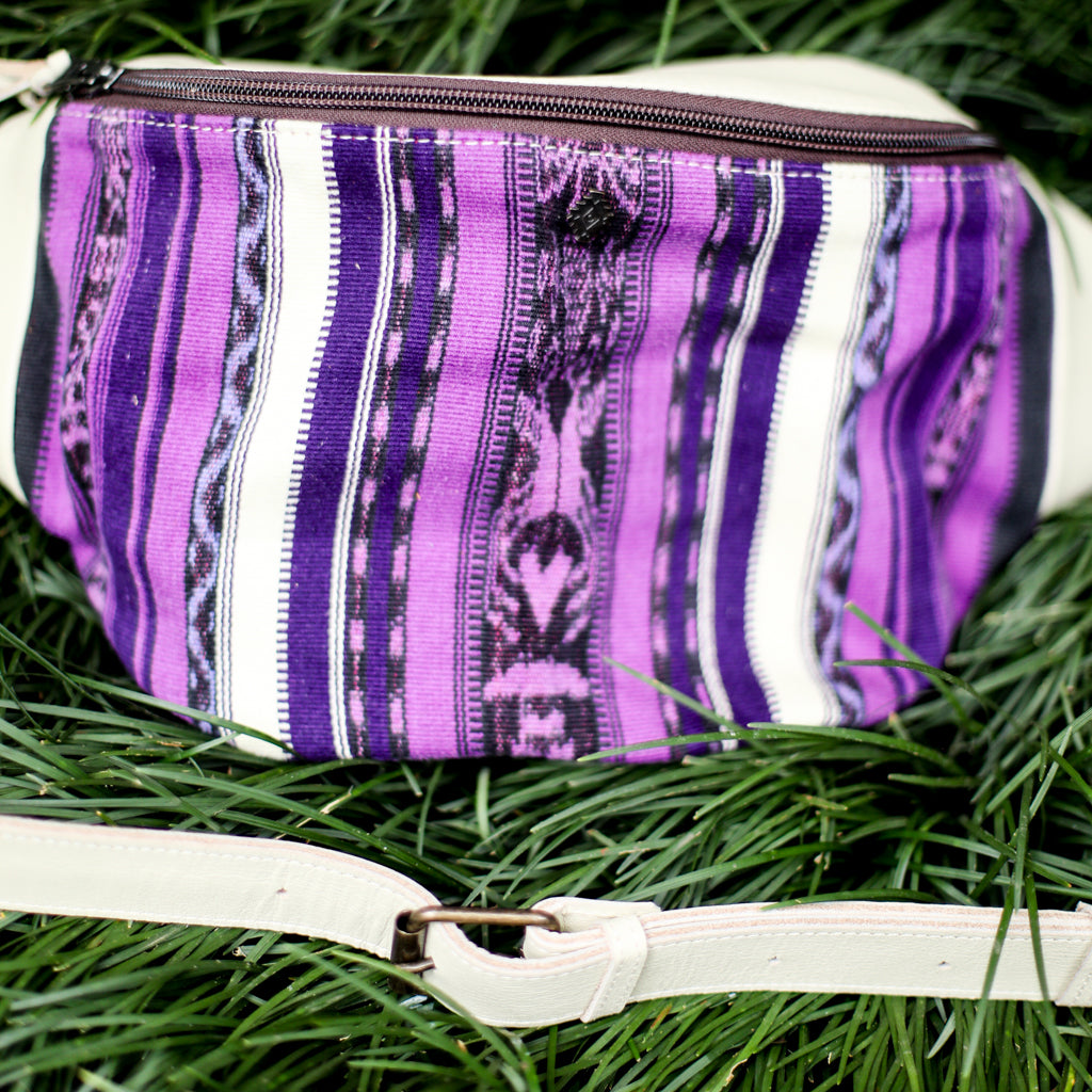 Many unique Maya symbols can be found in our One of a Kind Collection. The fabric we use for this collection is made from upcycled vintage huipiles (traditional attire worn by women in Guatemala) that were handwoven by Artisans up to 10 years ago, and they have lived a full life before being incorporated into your leather bag!