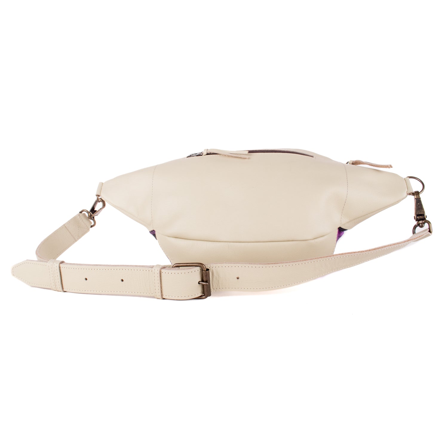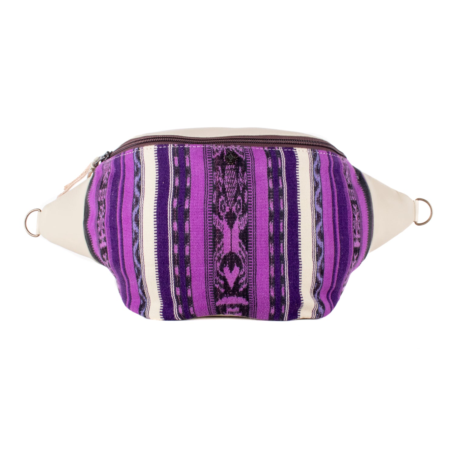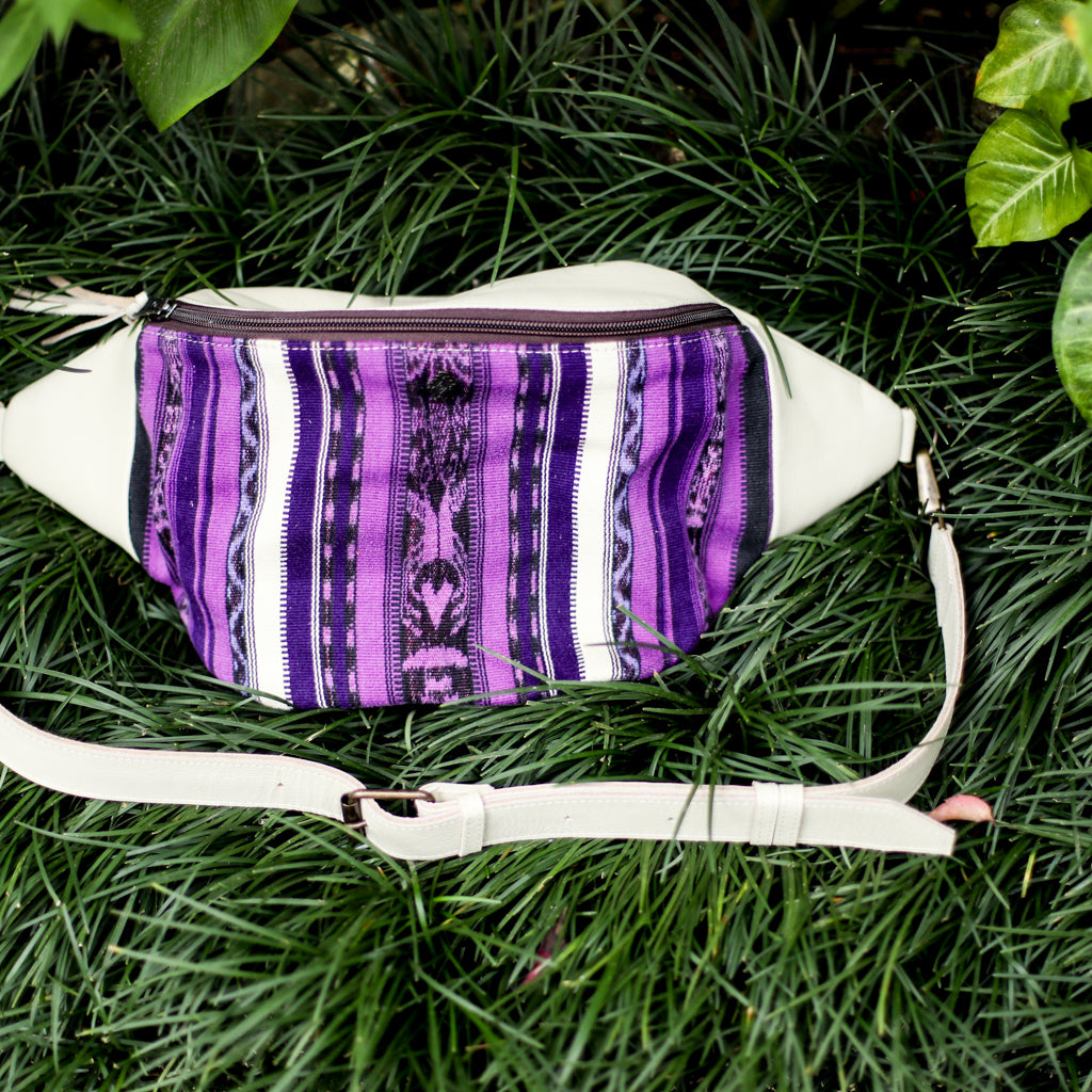 Many unique Maya symbols can be found in our One of a Kind Collection. The fabric we use for this collection is made from upcycled vintage huipiles (traditional attire worn by women in Guatemala) that were handwoven by Artisans up to 10 years ago, and they have lived a full life before being incorporated into your leather bag!