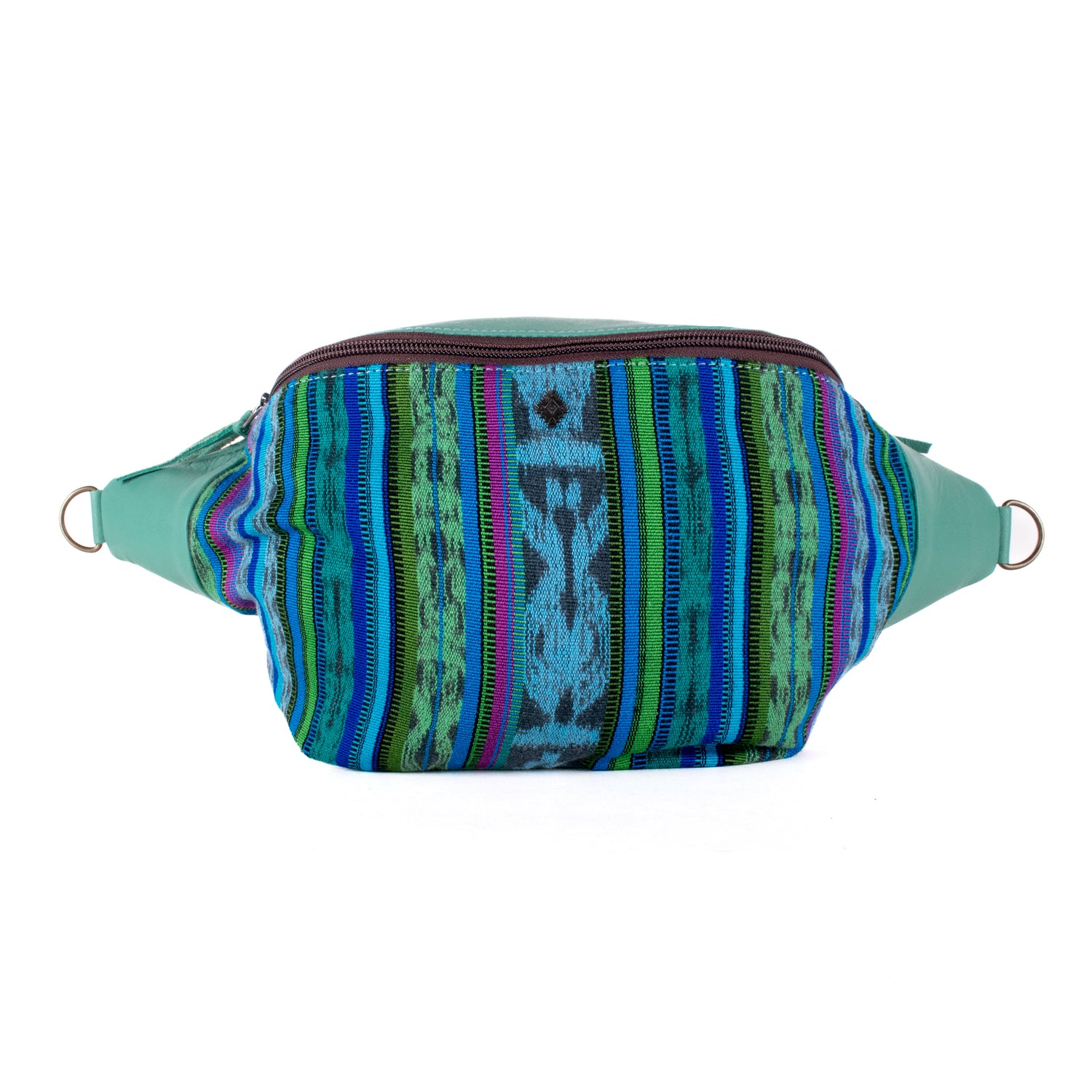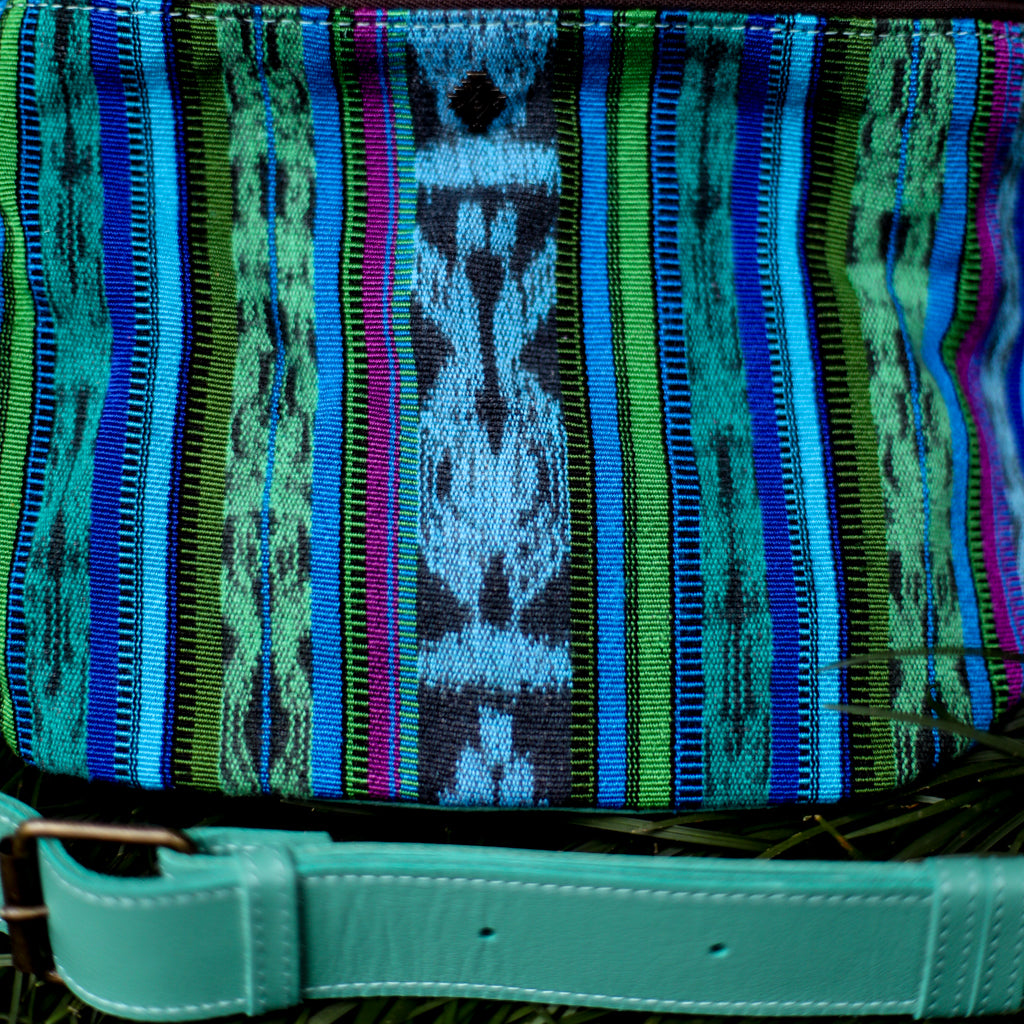 Many unique Maya symbols can be found in our One of a Kind Collection. The fabric we use for this collection is made from upcycled vintage huipiles (traditional attire worn by women in Guatemala) that were handwoven by Artisans up to 10 years ago, and they have lived a full life before being incorporated into your leather bag!