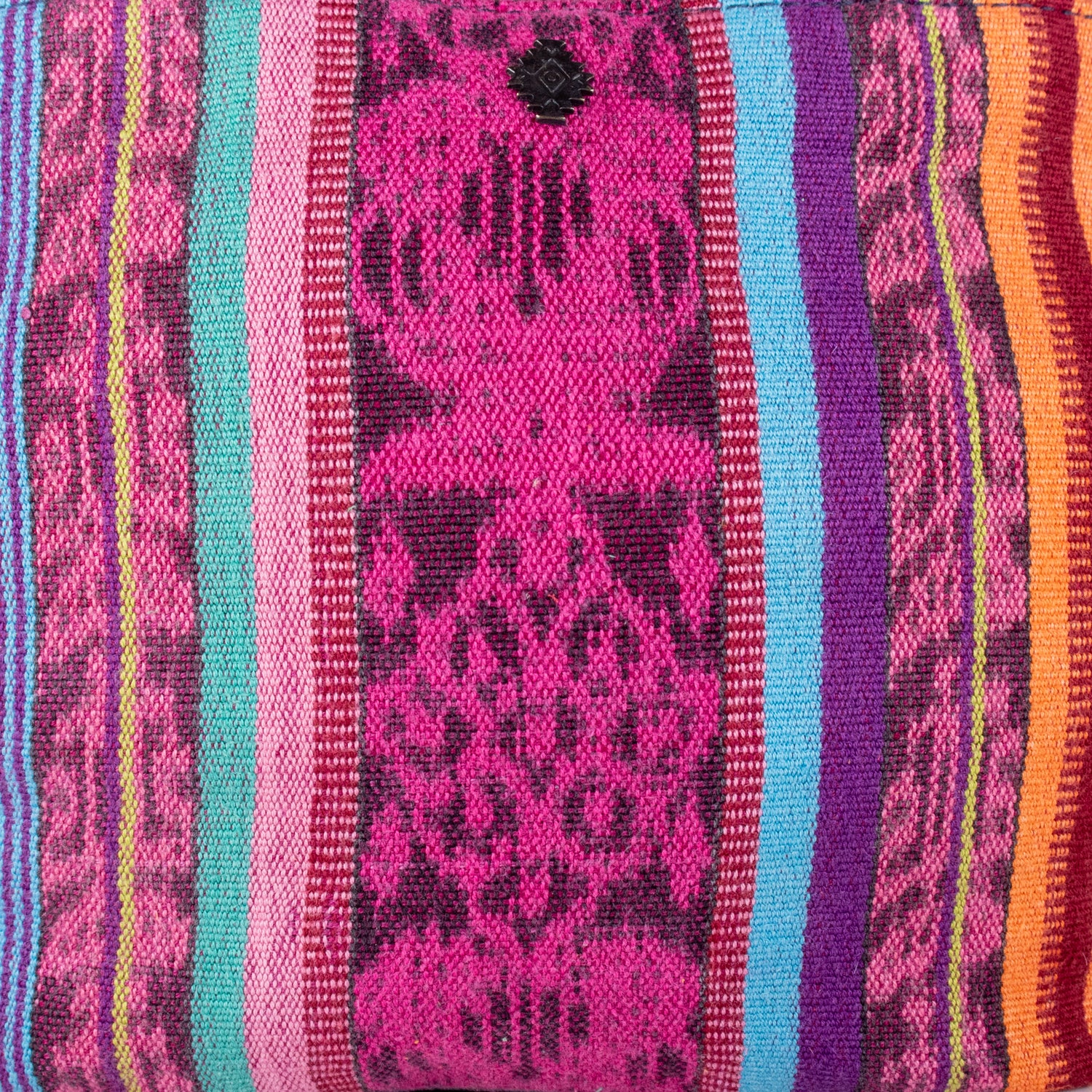 Many unique Maya symbols can be found in our One of a Kind Collection. The fabric we use for this collection is made from upcycled vintage huipiles (traditional attire worn by women in Guatemala) that were handwoven by Artisans up to 10 years ago, and they have lived a full life before being incorporated into your leather bag!