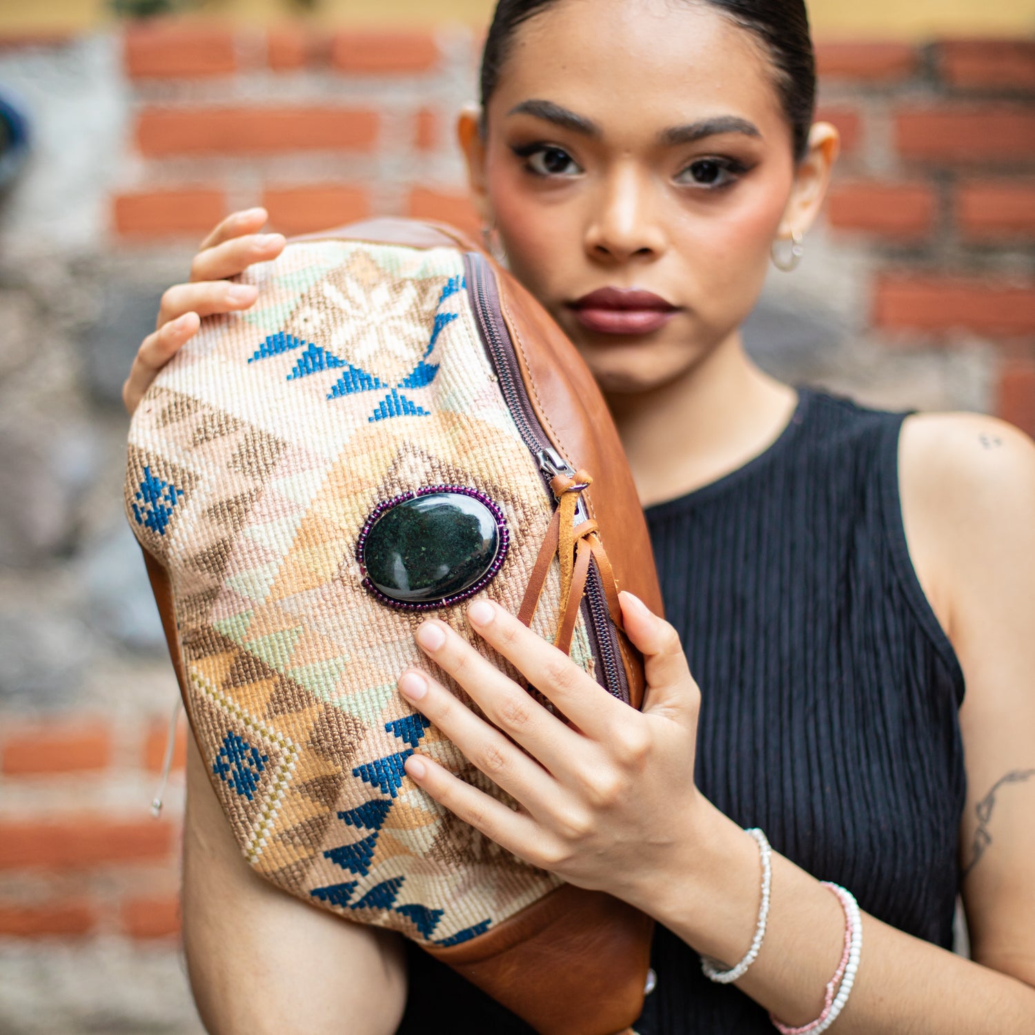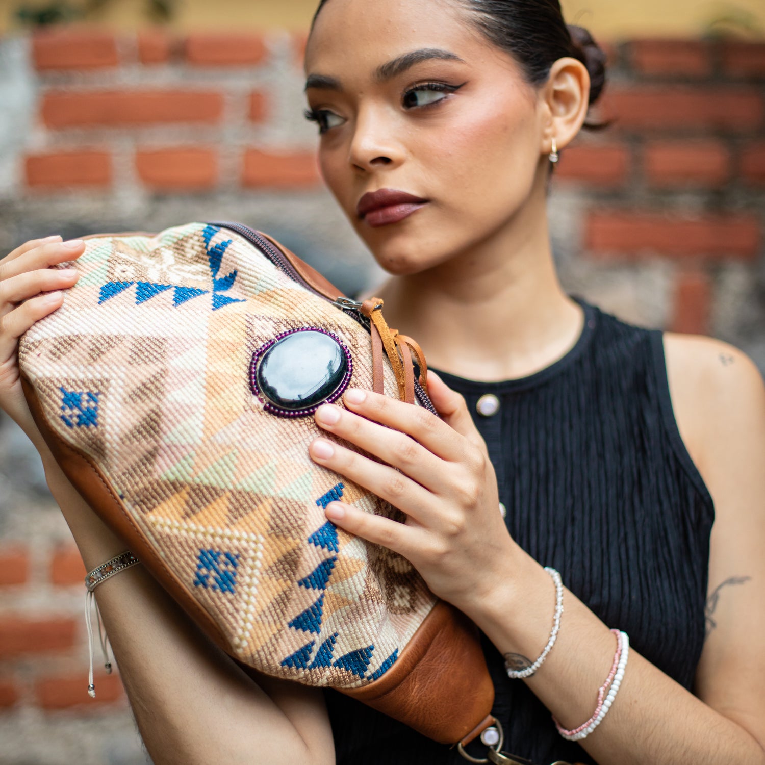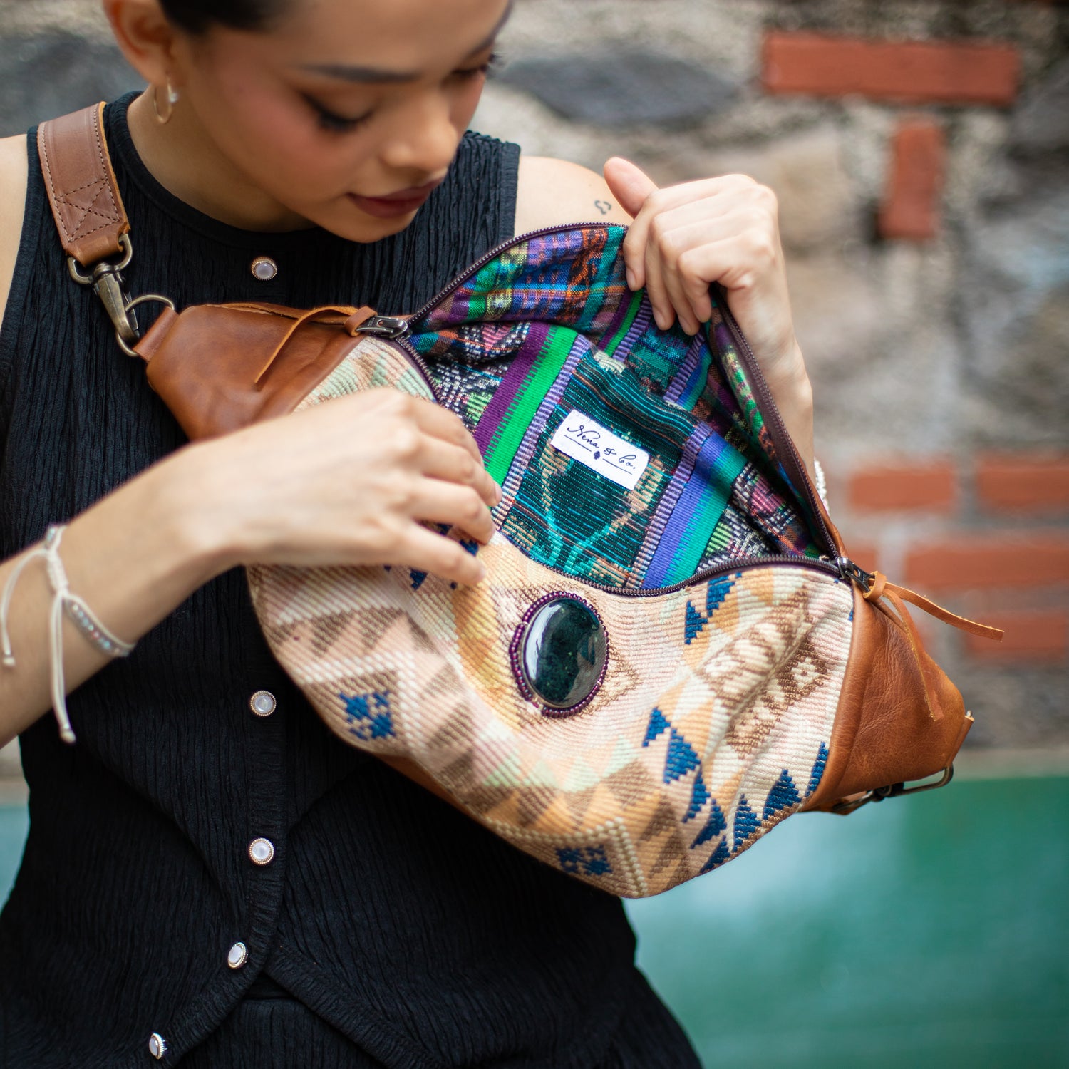 We make every effort to provide our customers with the best-handcrafted and high-quality bags. Please note that all our processes to make the bags are done by hand, from curing, cutting, and treating the leather to using up-cycled huipils. Our bags have natural characteristics and qualities that should not be considered as flaws or as damage because they do not interfere with the functionality of the bag. We up-cycle vintage Maya clothing to make beautiful one-of-a-kind products. Many times you will find snags in the pattern. This is normal. Should your patterned huipil snag you can snip the loose threads with scissors. Do not pull them.