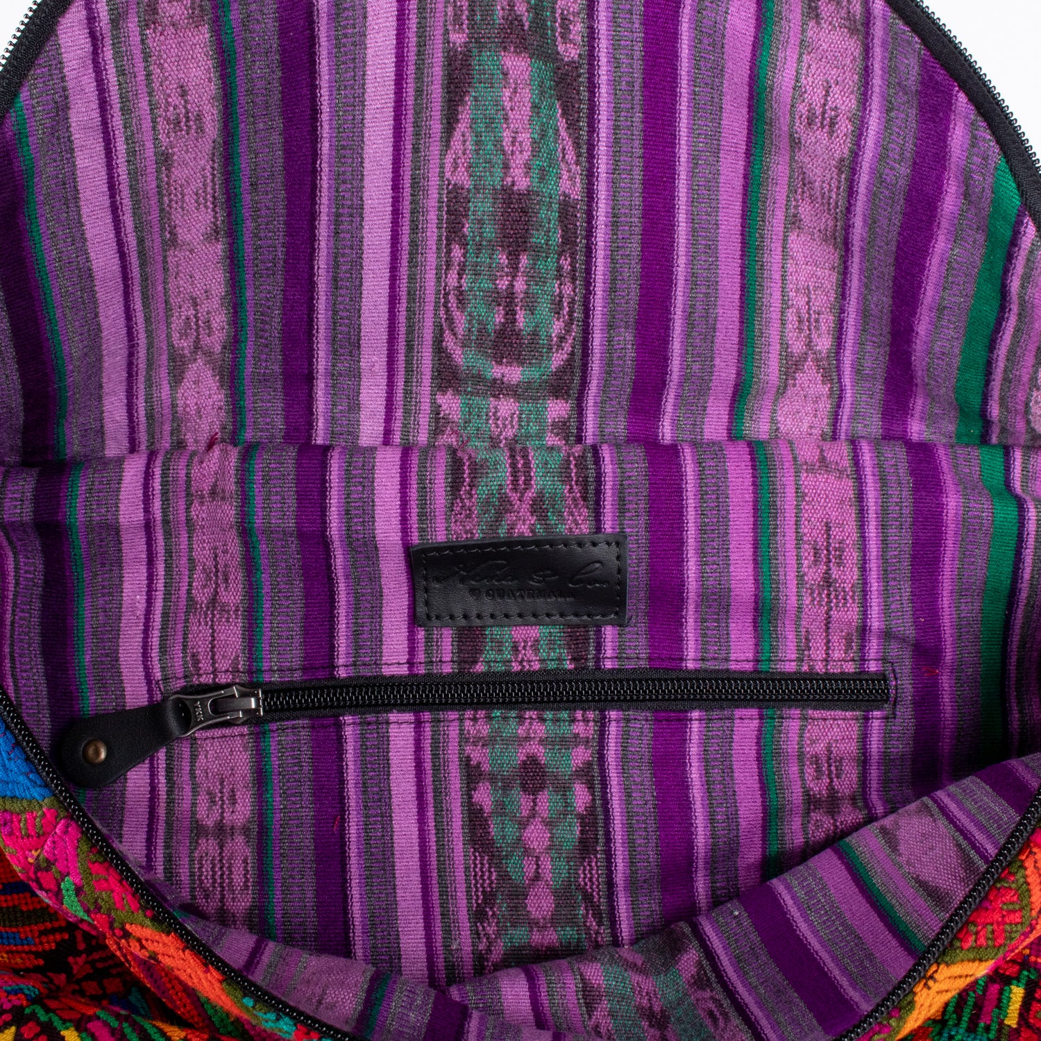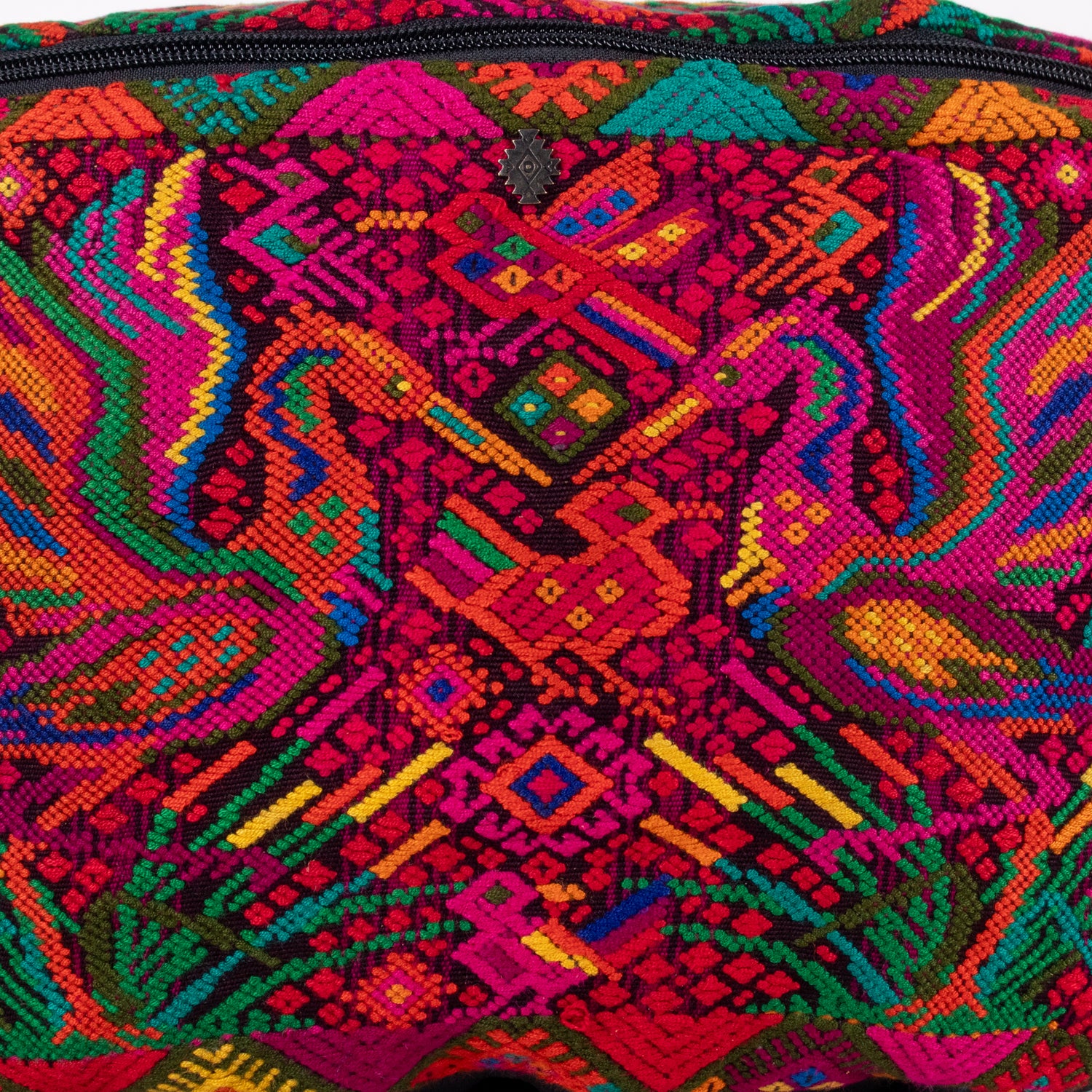 Many unique Maya symbols can be found in our One of a Kind Collection. The fabric we use for this collection is made from upcycled vintage huipiles (traditional attire worn by women in Guatemala) that were handwoven by Artisans up to 10 years ago, and they have lived a full life before being incorporated into your leather bag!