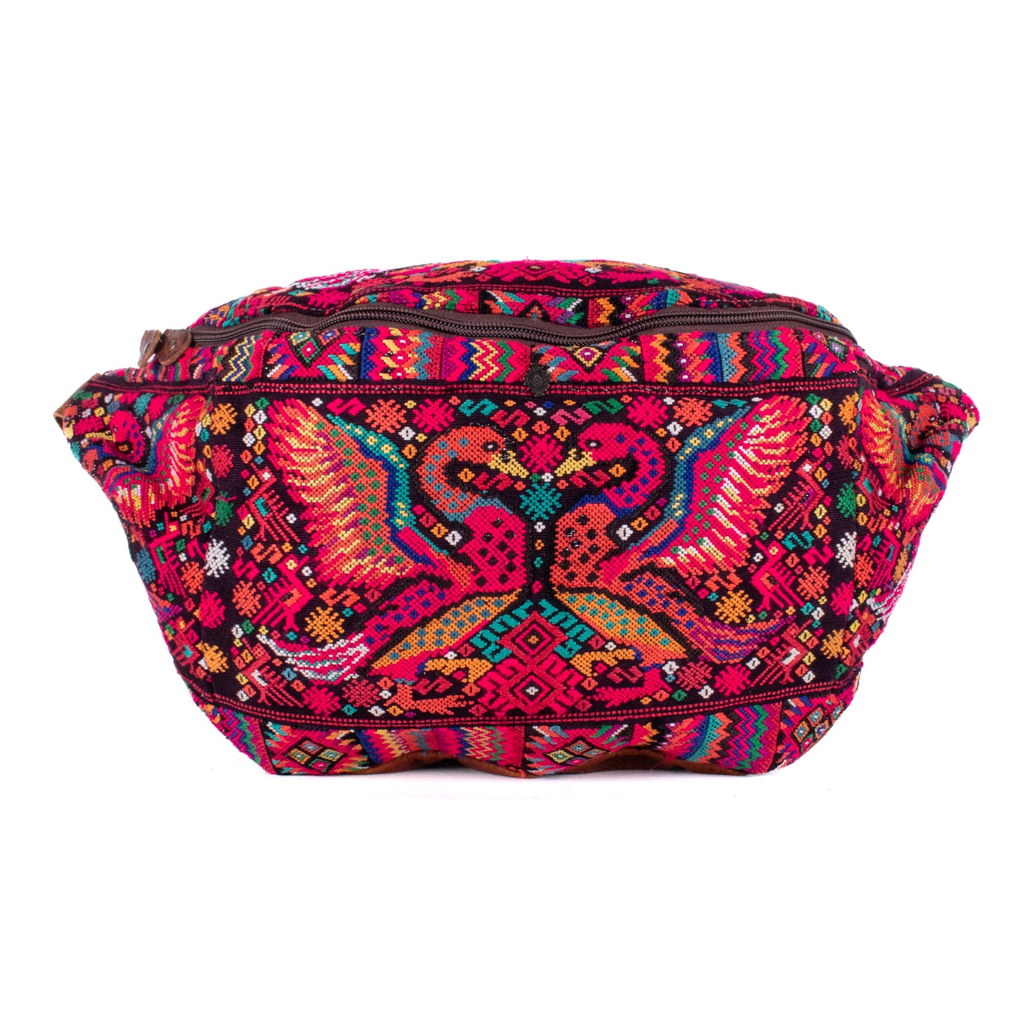 Many unique Maya symbols can be found in our One of a Kind Collection. The fabric we use for this collection is made from upcycled vintage huipiles (traditional attire worn by women in Guatemala) that were handwoven by Artisans up to 10 years ago, and they have lived a full life before being incorporated into your leather bag!