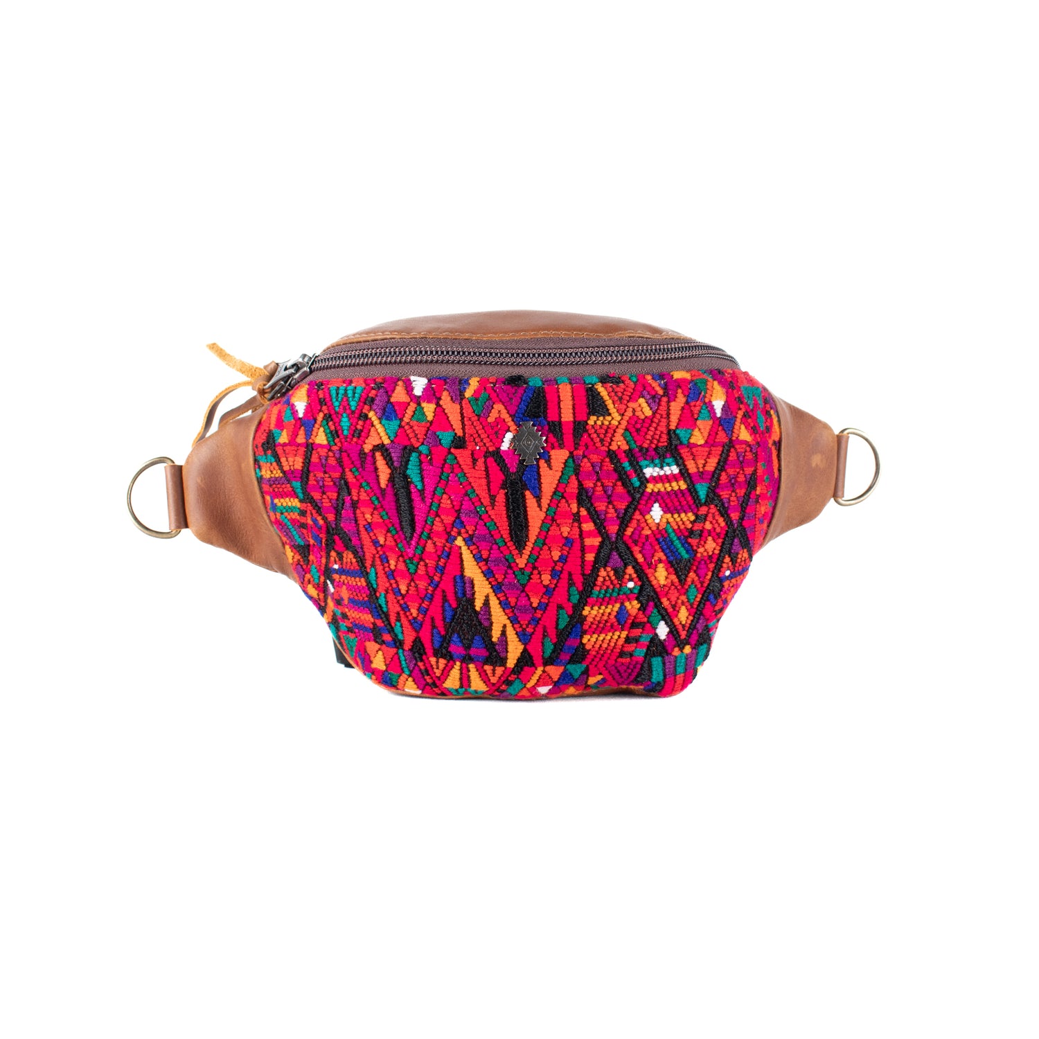 Many unique Maya symbols can be found in our One of a Kind Collection. The fabric we use for this collection is made from upcycled vintage huipiles (traditional attire worn by women in Guatemala) that were handwoven by Artisans up to 10 years ago, and they have lived a full life before being incorporated into your leather bag!
