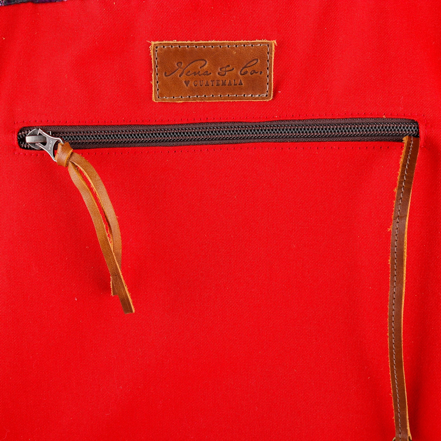 Many unique Maya symbols can be found in our One of a Kind Collection. The fabric we use for this collection is made from upcycled vintage huipiles (traditional attire worn by women in Guatemala) that were handwoven by Artisans up to 10 years ago, and they have lived a full life before being incorporated into your leather bag!