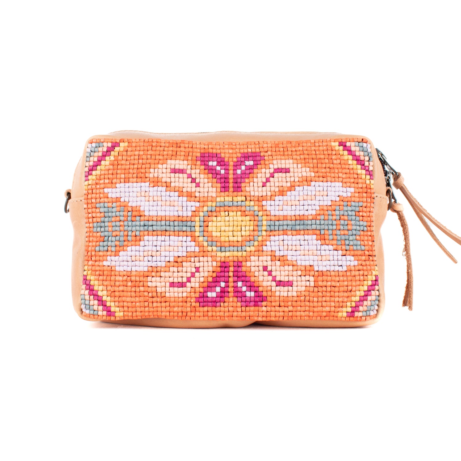 H&s wander crossbody set - ooak beaded panel - apricot - no. 17110