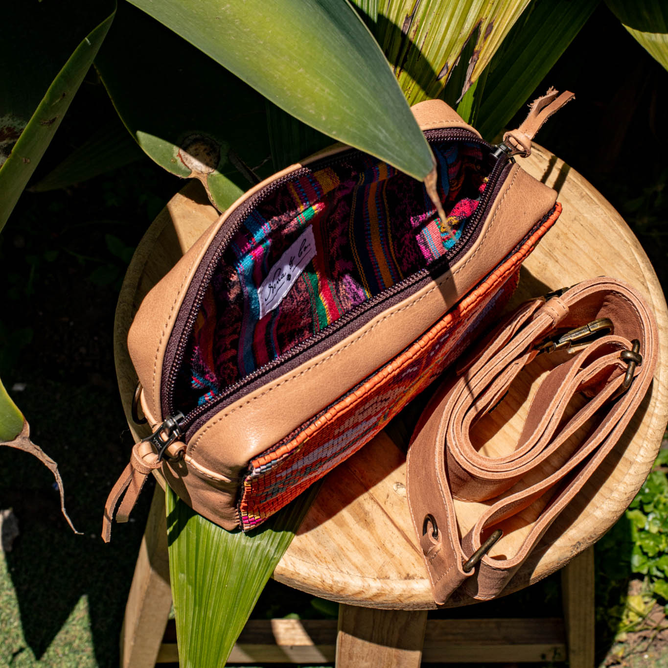 We make every effort to provide our customers with the best-handcrafted and high-quality bags. Please note that all our processes to make the bags are done by hand, from curing, cutting, and treating the leather to using up-cycled huipils. Our bags have natural characteristics and qualities that should not be considered as flaws or as damage because they do not interfere with the functionality of the bag. We up-cycle vintage Maya clothing to make beautiful one-of-a-kind products. Many times you will find snags in the pattern. This is normal. Should your patterned huipil snag you can snip the loose threads with scissors. Do not pull them.