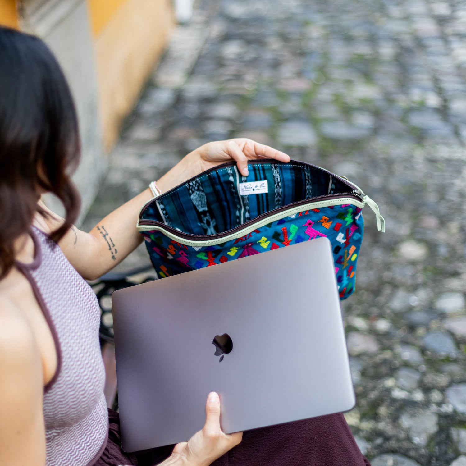 Our One Of A Kind Collection consists of products constructed using curated vintage fabrics purchased from loyal Guatemalan market vendors. All of the fabrics seen in the One Of A Kind Collection have lived a full life before being incorporated into your Nena product! These vintage fabrics were woven from the memory by a Guatemalan artisan up to 10 years ago; each pattern distinctive of the region where the artisan resides. Truly and completely one-of-a-kind, these products are a masterpiece!