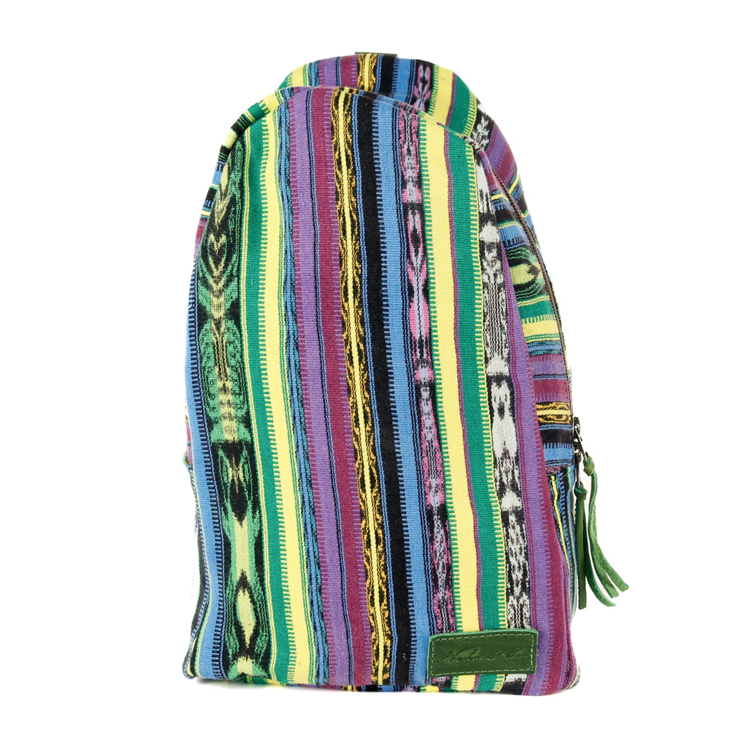 Many unique Maya symbols can be found in our One of a Kind Collection. The fabric we use for this collection is made from upcycled vintage huipiles (traditional attire worn by women in Guatemala) that were handwoven by Artisans up to 10 years ago, and they have lived a full life before being incorporated into your leather bag!