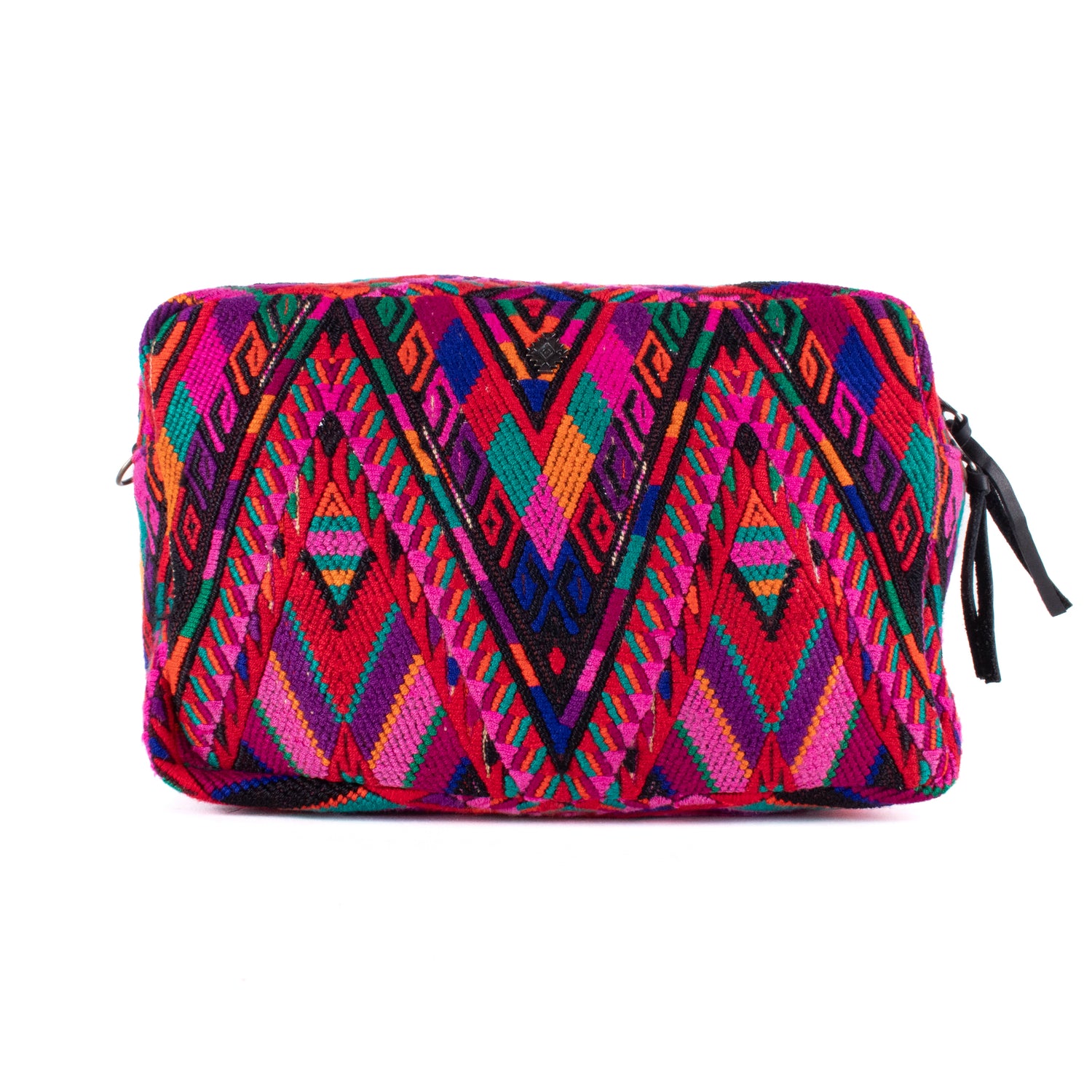 Many unique Maya symbols can be found in our One of a Kind Collection. The fabric we use for this collection is made from upcycled vintage huipiles (traditional attire worn by women in Guatemala) that were handwoven by Artisans up to 10 years ago, and they have lived a full life before being incorporated into your leather bag!