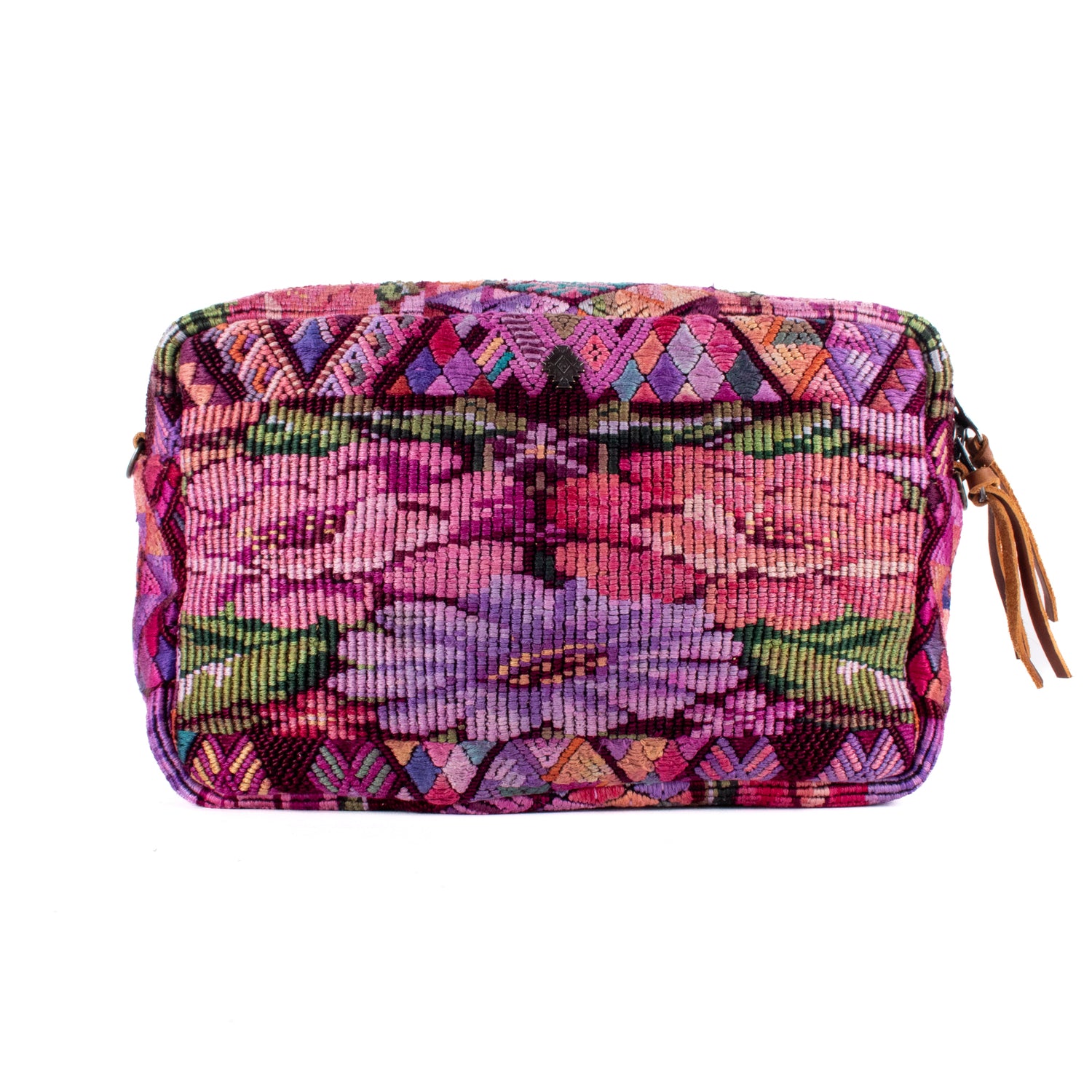 Many unique Maya symbols can be found in our One of a Kind Collection. The fabric we use for this collection is made from upcycled vintage huipiles (traditional attire worn by women in Guatemala) that were handwoven by Artisans up to 10 years ago, and they have lived a full life before being incorporated into your leather bag!