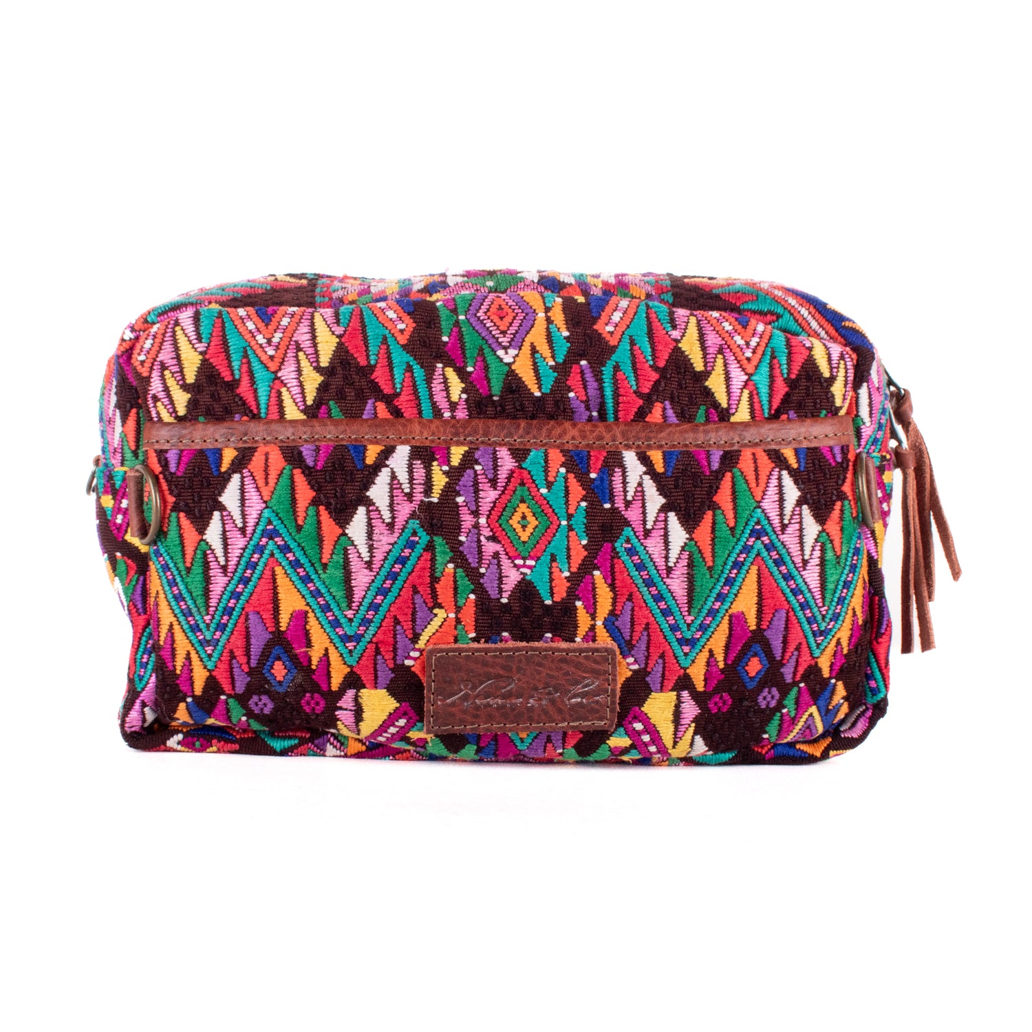 Many unique Maya symbols can be found in our One of a Kind Collection. The fabric we use for this collection is made from upcycled vintage huipiles (traditional attire worn by women in Guatemala) that were handwoven by Artisans up to 10 years ago, and they have lived a full life before being incorporated into your leather bag!