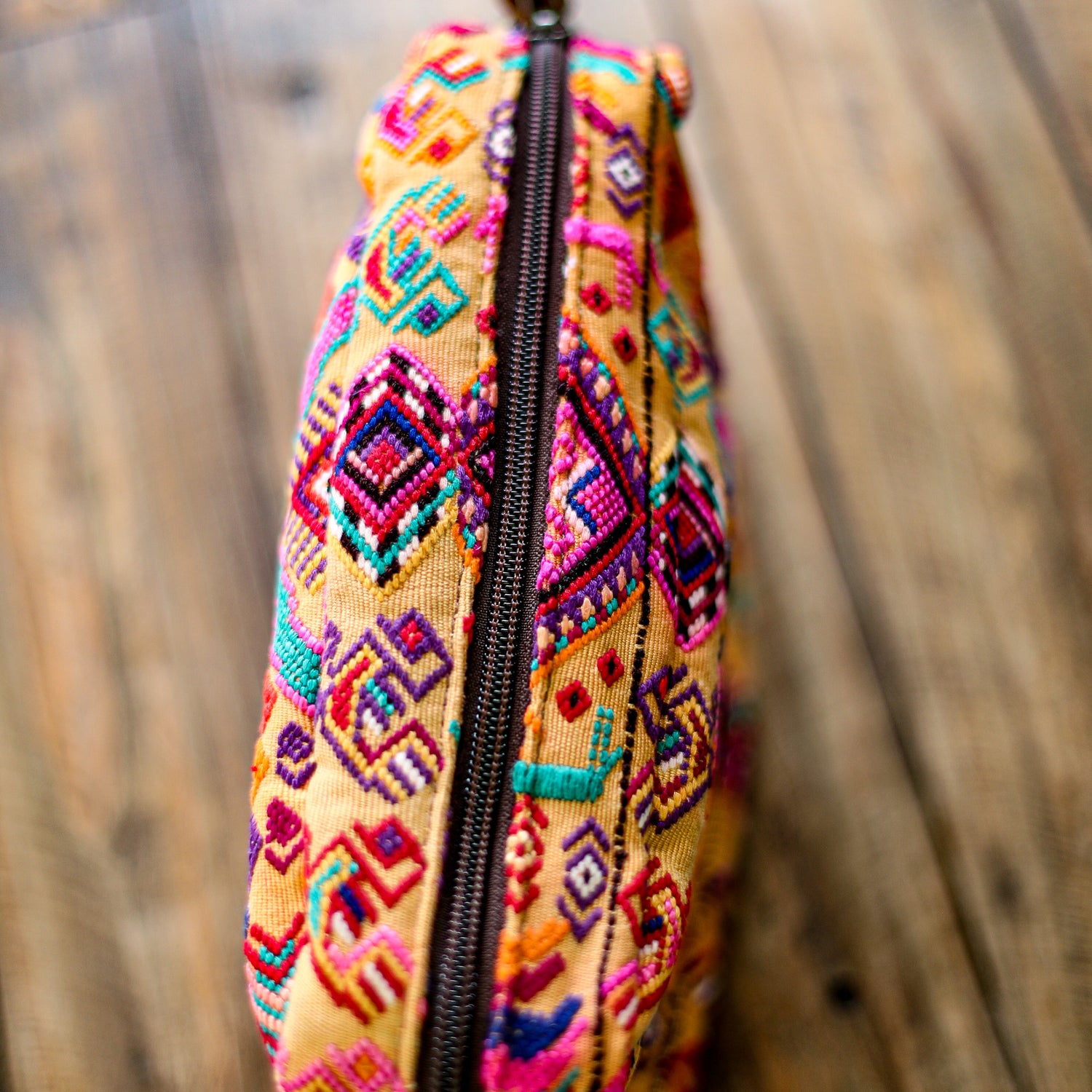 We make every effort to provide our customers with the best-handcrafted and high-quality bags. Please note that all our processes to make the bags are done by hand, from curing, cutting, and treating the leather to using up-cycled huipils. Our bags have natural characteristics and qualities that should not be considered as flaws or as damage because they do not interfere with the functionality of the bag. We up-cycle vintage Maya clothing to make beautiful one-of-a-kind products. Many times you will find snags in the pattern. This is normal. Should your patterned huipil snag you can snip the loose threads with scissors. Do not pull them.