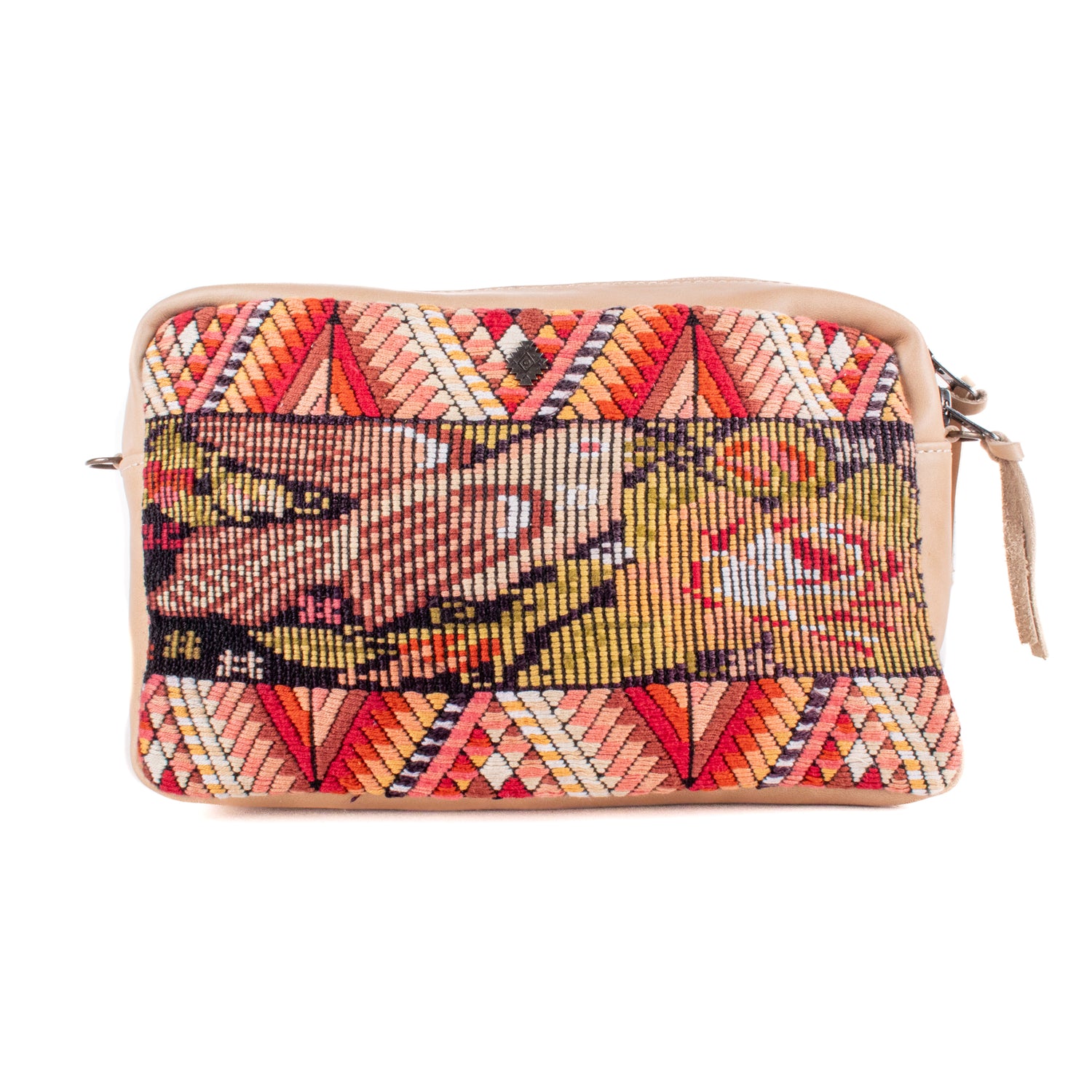 Many unique Maya symbols can be found in our One of a Kind Collection. The fabric we use for this collection is made from upcycled vintage huipiles (traditional attire worn by women in Guatemala) that were handwoven by Artisans up to 10 years ago, and they have lived a full life before being incorporated into your leather bag!