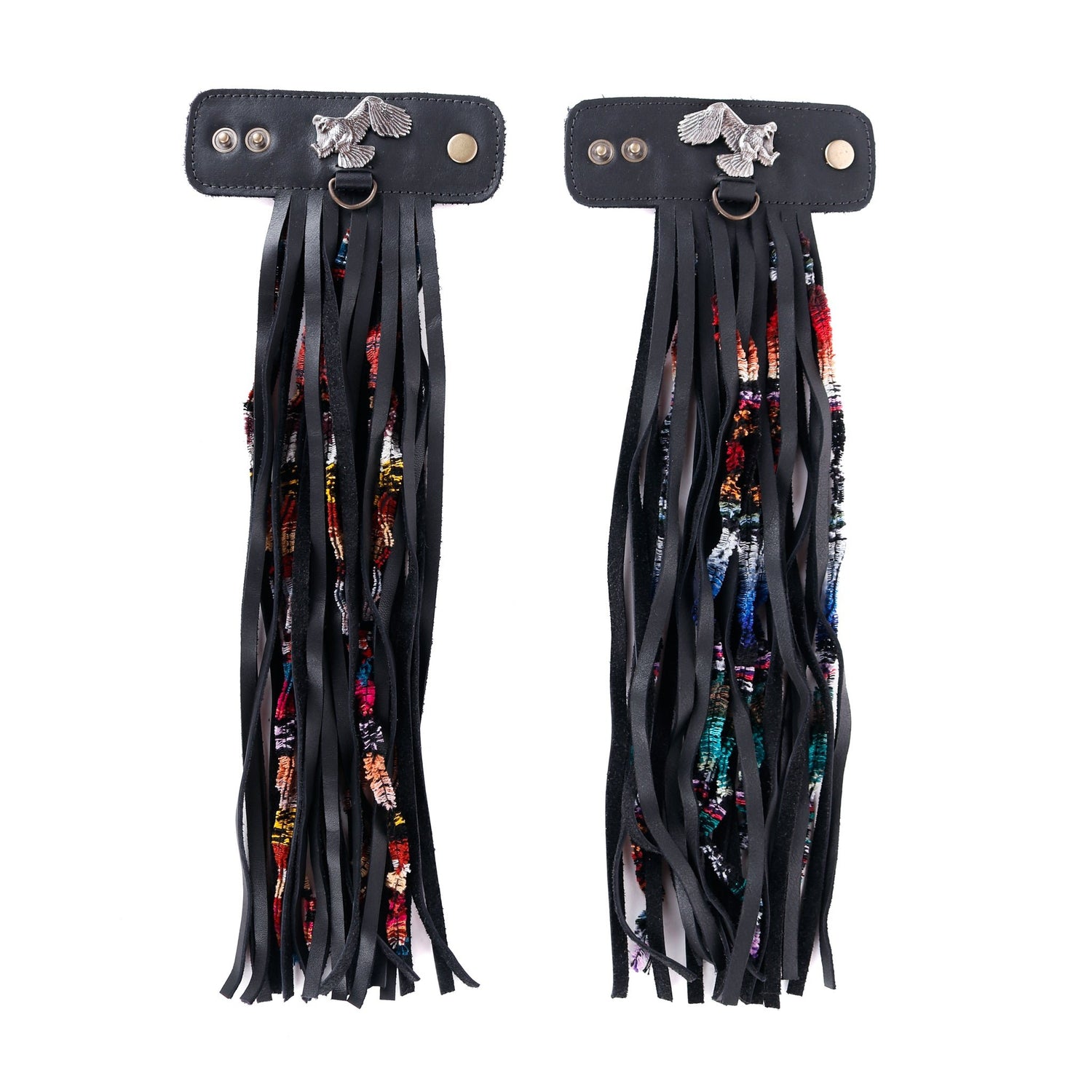 Add personality and flair to your favorite handbag with Layered Tassels! Constructed from traditionally tanned full-grain leather and newly loomed artisan fabric, with Concho embellishments. The front D-ring gives the ability to layer charms on top of the tassels with ease.
