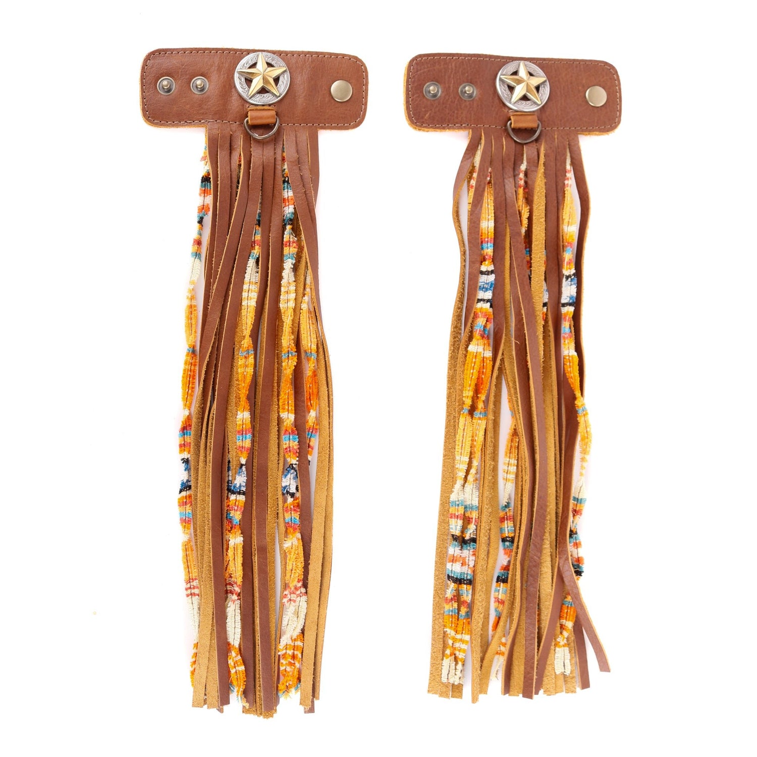 Add personality and flair to your favorite handbag with Layered Tassels! Constructed from traditionally tanned full-grain leather and newly loomed artisan fabric, with Concho embellishments. The front D-ring gives the ability to layer charms on top of the tassels with ease.
