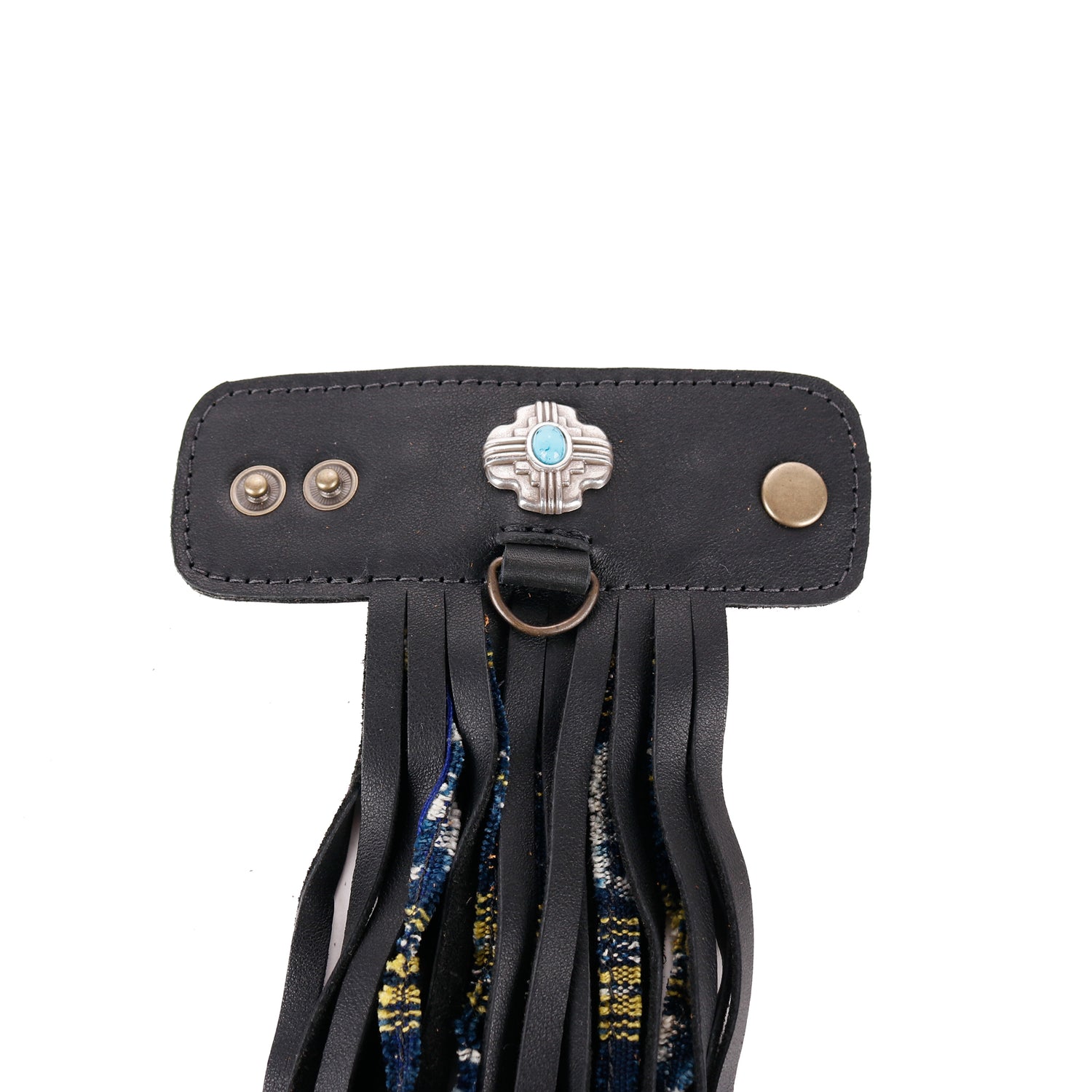 Add personality and flair to your favorite handbag with Layered Tassels! Constructed from traditionally tanned full-grain leather and newly loomed artisan fabric, with Concho embellishments. The front D-ring gives the ability to layer charms on top of the tassels with ease.