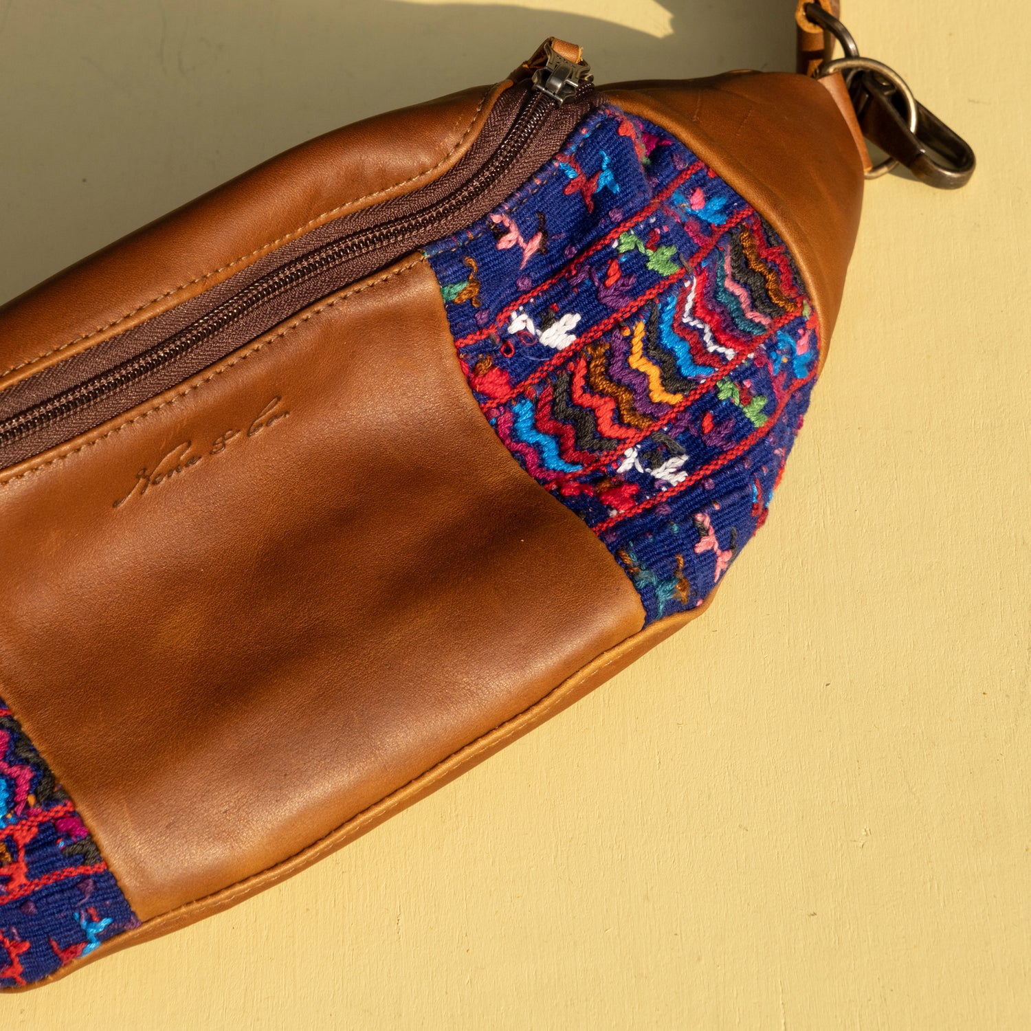 We make every effort to provide our customers with the best-handcrafted and high-quality bags. Please note that all our processes to make the bags are done by hand, from curing, cutting, and treating the leather to using up-cycled huipils. Our bags have natural characteristics and qualities that should not be considered as flaws or as damage because they do not interfere with the functionality of the bag. We up-cycle vintage Maya clothing to make beautiful one-of-a-kind products. Many times you will find snags in the pattern. This is normal. Should your patterned huipil snag you can snip the loose threads with scissors. Do not pull them.