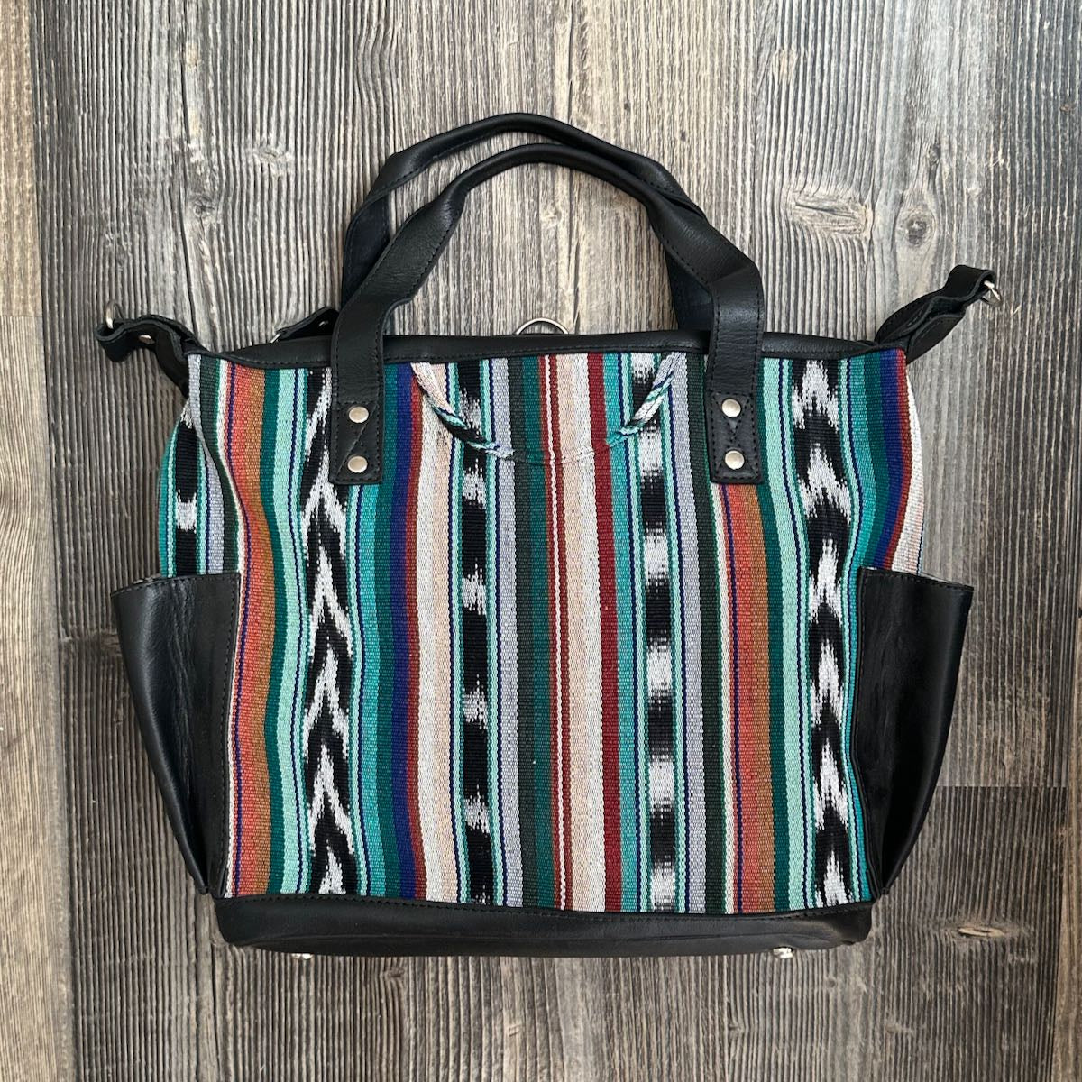 Many unique Maya symbols can be found in our One of a Kind Collection. The fabric we use for this collection is made from upcycled vintage huipiles (traditional attire worn by women in Guatemala) that were handwoven by Artisans up to 10 years ago, and they have lived a full life before being incorporated into your leather bag!