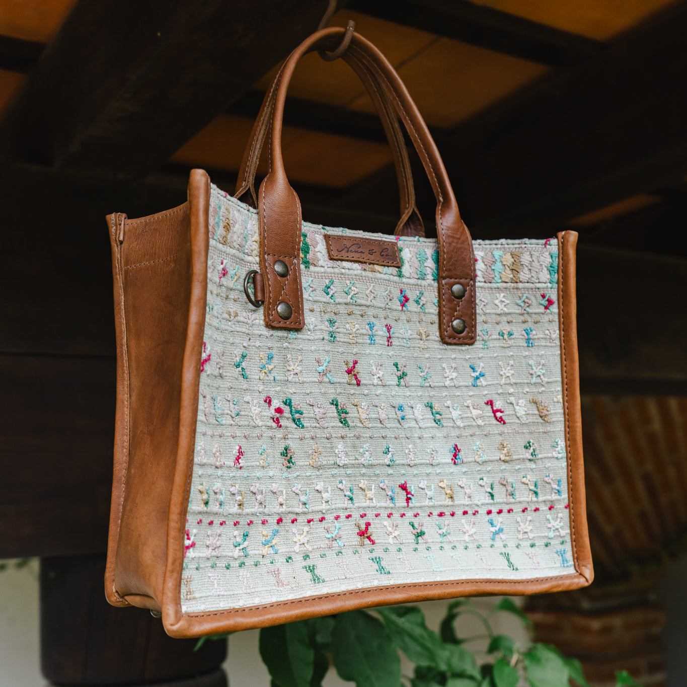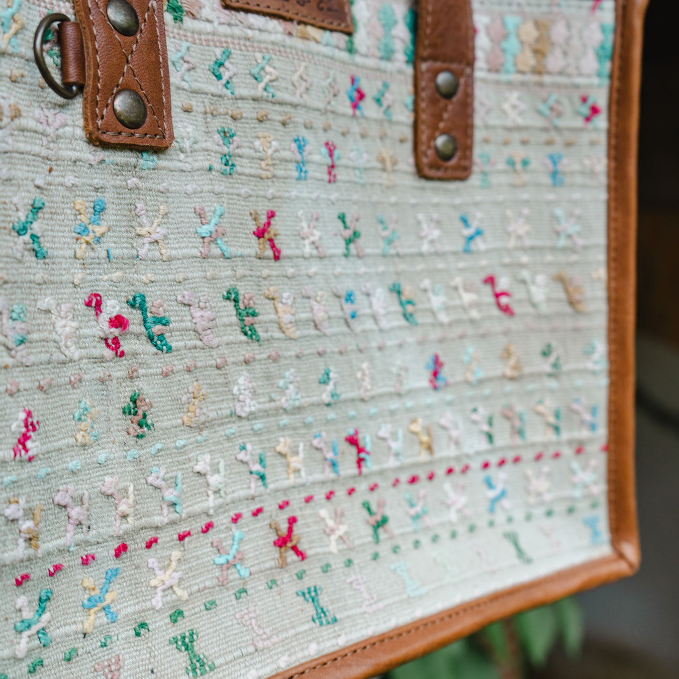 We make every effort to provide our customers with the best-handcrafted and high-quality bags. Please note that all our processes to make the bags are done by hand, from curing, cutting, and treating the leather to using up-cycled huipils. Our bags have natural characteristics and qualities that should not be considered as flaws or as damage because they do not interfere with the functionality of the bag. We up-cycle vintage Maya clothing to make beautiful one-of-a-kind products. Many times you will find snags in the pattern. This is normal. Should your patterned huipil snag you can snip the loose threads with scissors. Do not pull them.