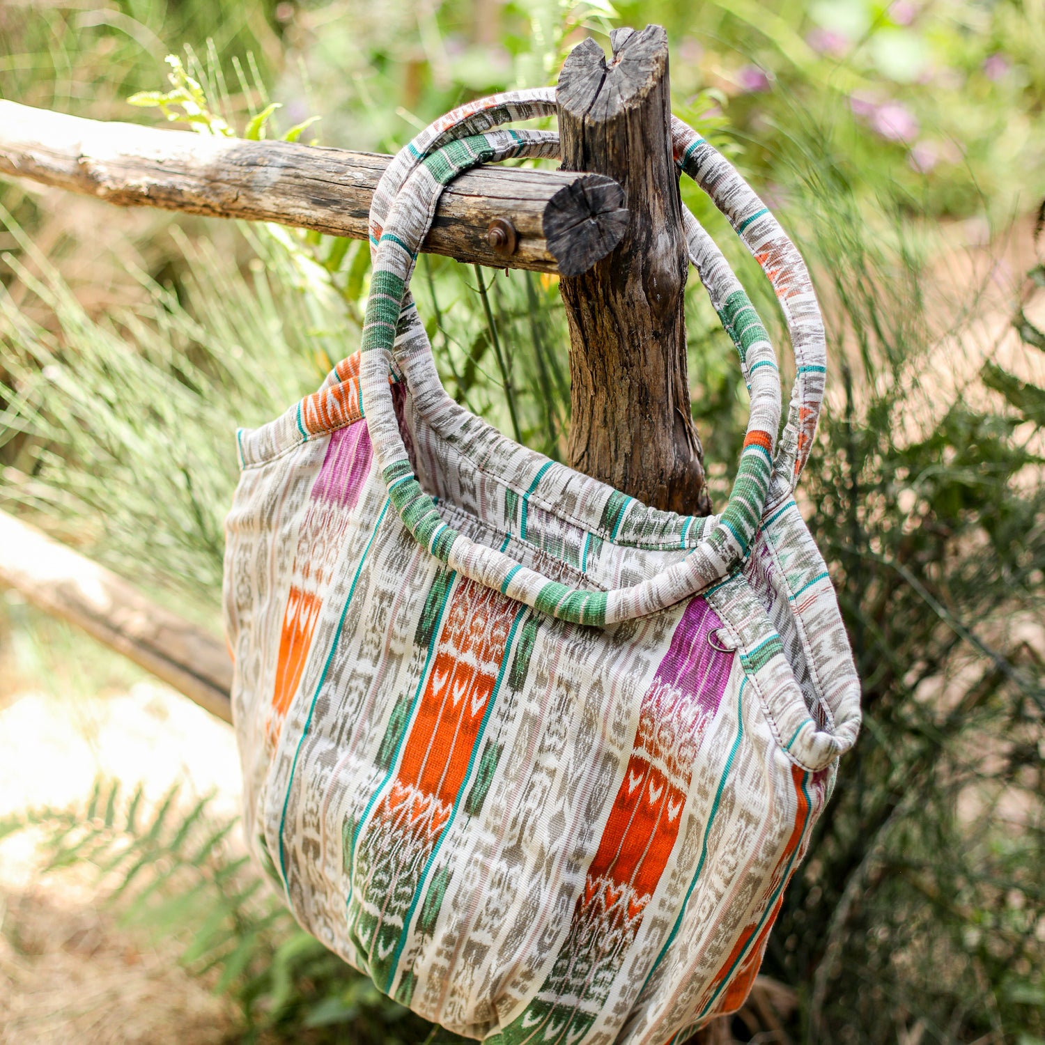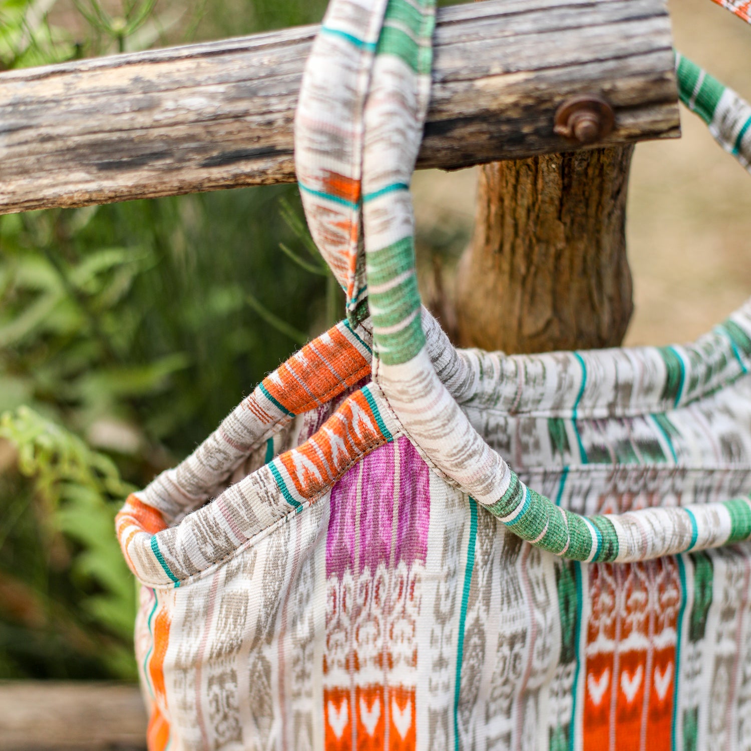 Our One Of A Kind Collection consists of products constructed using curated vintage fabrics purchased from loyal Guatemalan market vendors. All of the fabrics seen in the One Of A Kind Collection have lived a full life before being incorporated into your bag! These vintage fabrics were woven from the memory by a Guatemalan artisan up to 10 years ago; each pattern distinctive of the region where the artisan resides. Truly and completely one-of-a-kind, these bags are a masterpiece!