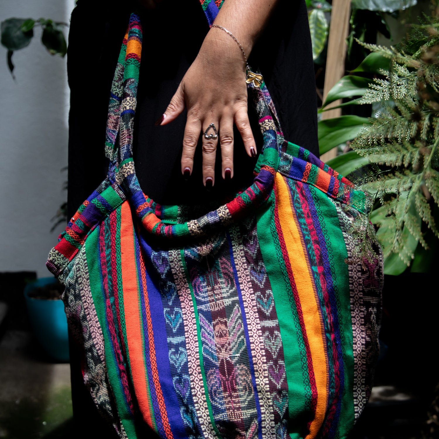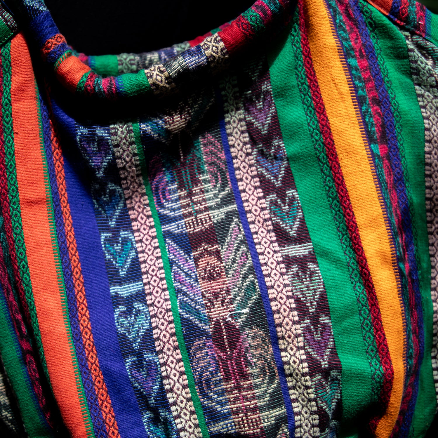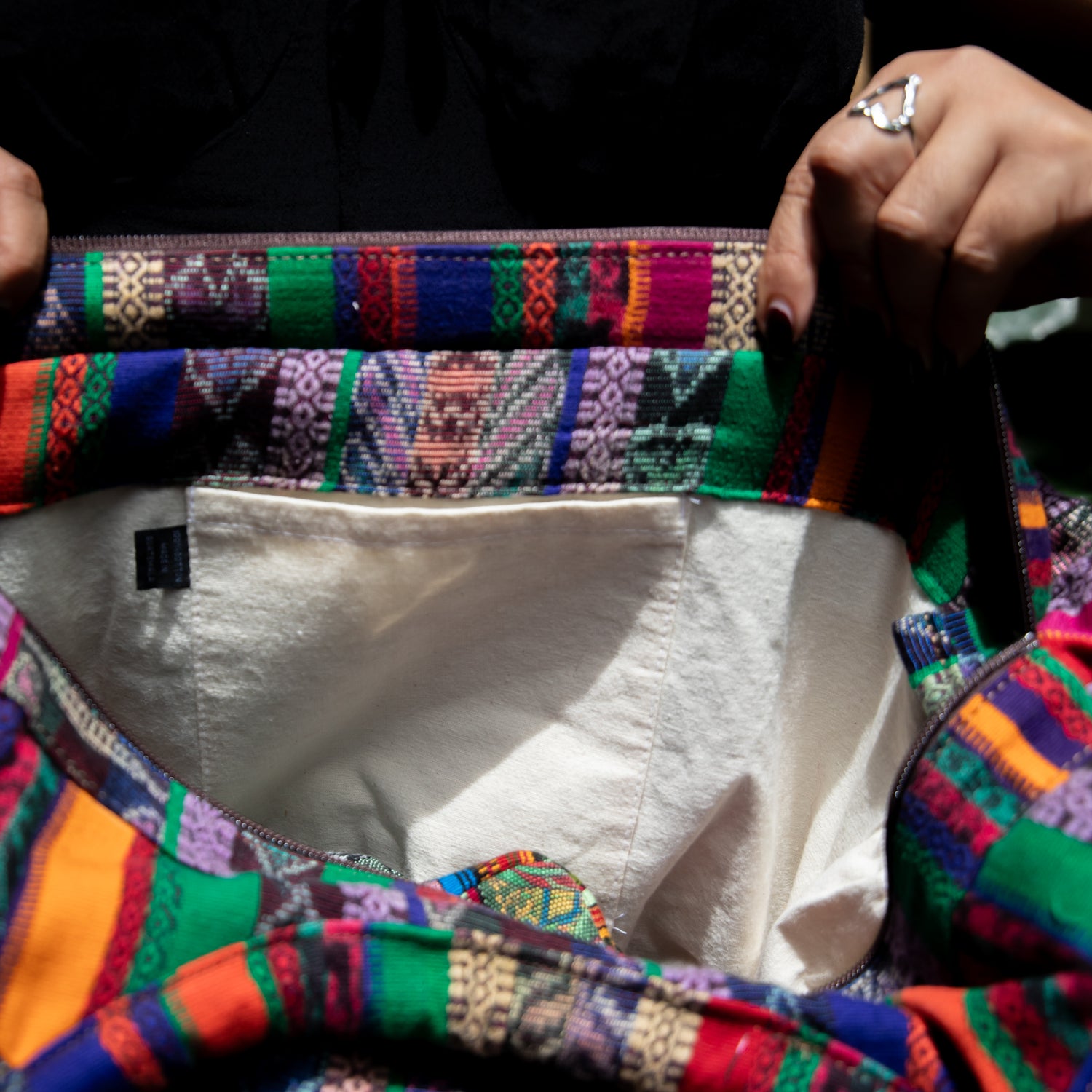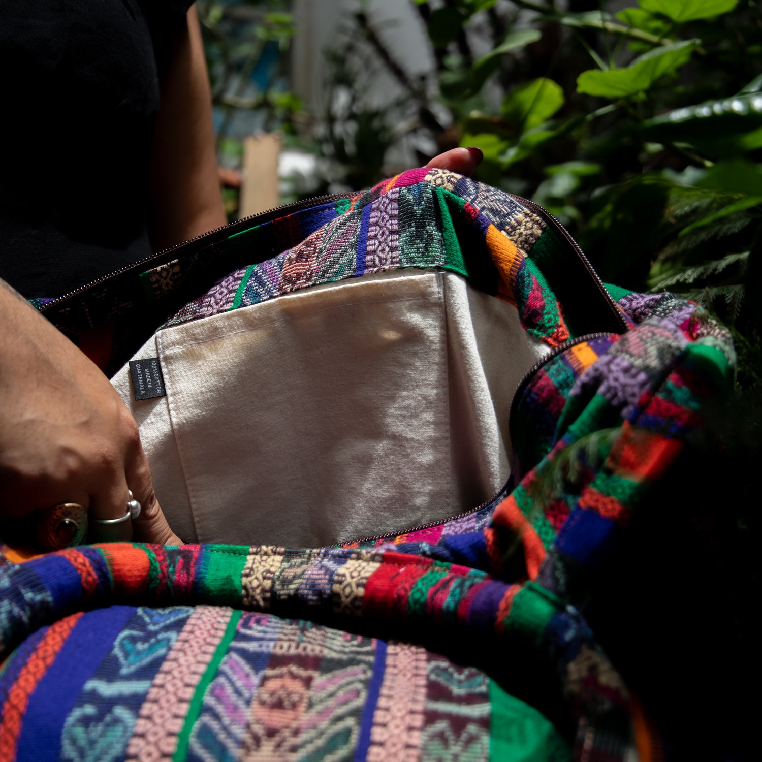 Our One Of A Kind Collection consists of products constructed using curated vintage fabrics purchased from loyal Guatemalan market vendors. All of the fabrics seen in the One Of A Kind Collection have lived a full life before being incorporated into your bag! These vintage fabrics were woven from the memory by a Guatemalan artisan up to 10 years ago; each pattern distinctive of the region where the artisan resides. Truly and completely one-of-a-kind, these bags are a masterpiece!