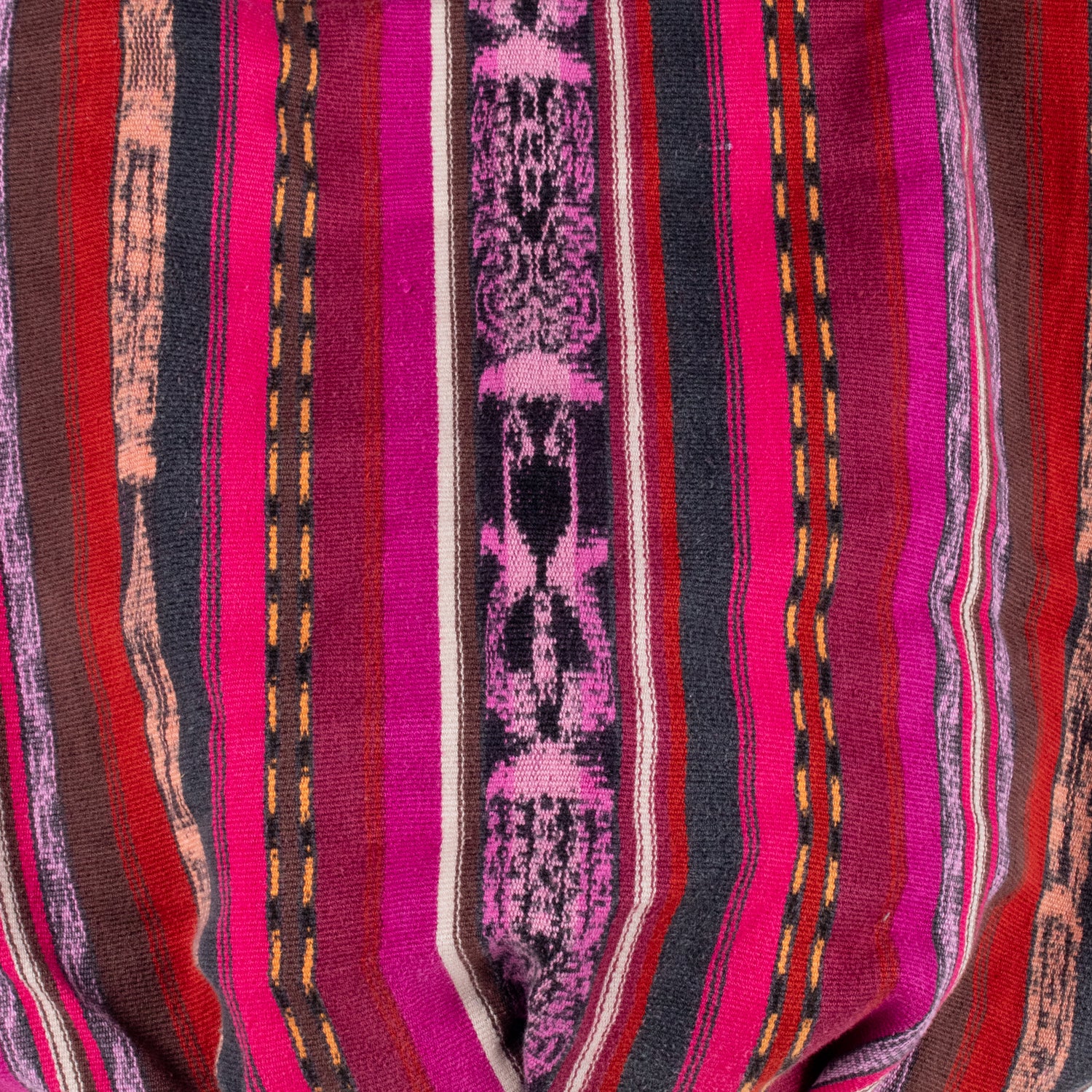 Our One Of A Kind Collection consists of products constructed using curated vintage fabrics purchased from loyal Guatemalan market vendors. All of the fabrics seen in the One Of A Kind Collection have lived a full life before being incorporated into your bag! These vintage fabrics were woven from the memory by a Guatemalan artisan up to 10 years ago; each pattern distinctive of the region where the artisan resides. Truly and completely one-of-a-kind, these bags are a masterpiece!