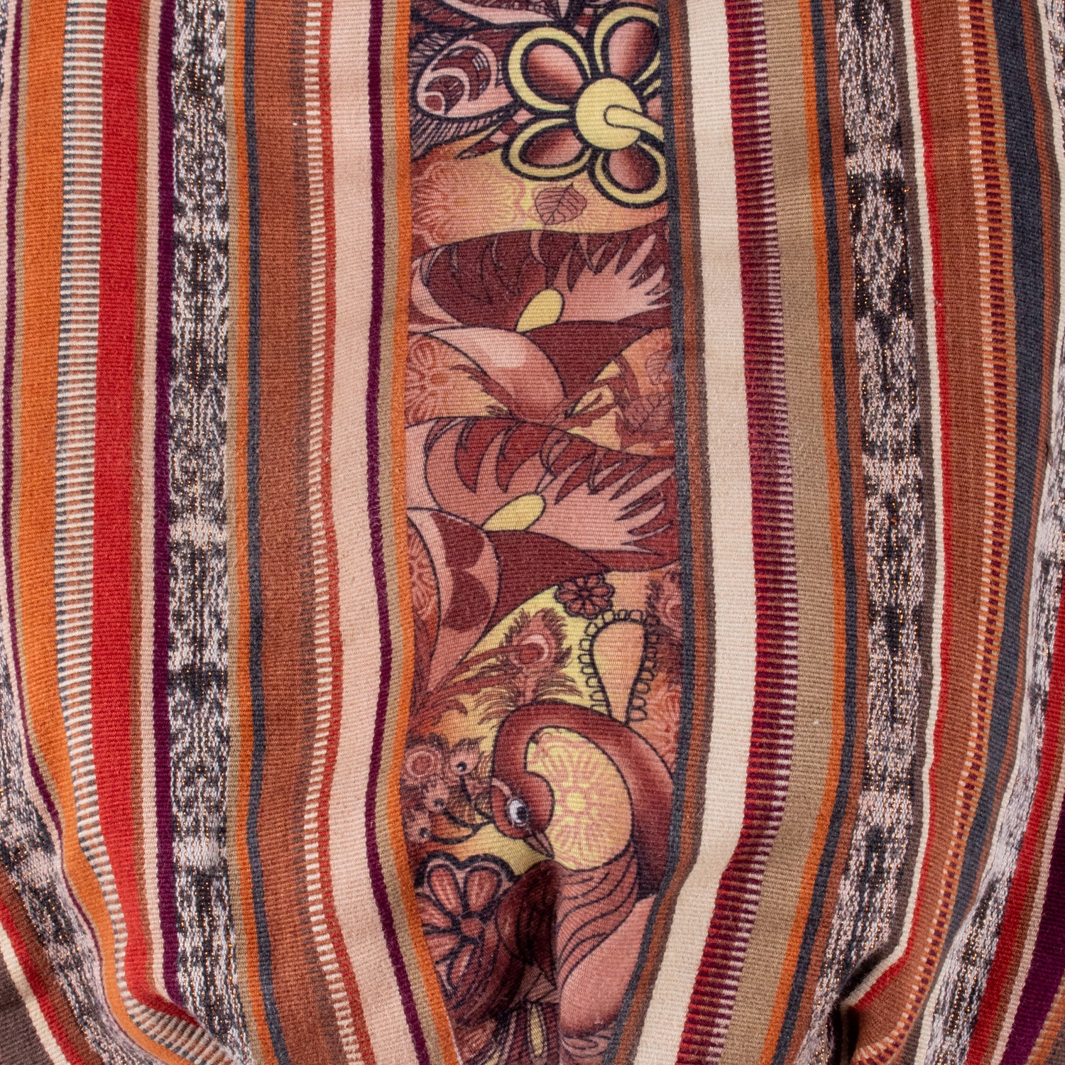 Our One Of A Kind Collection consists of products constructed using curated vintage fabrics purchased from loyal Guatemalan market vendors. All of the fabrics seen in the One Of A Kind Collection have lived a full life before being incorporated into your bag! These vintage fabrics were woven from the memory by a Guatemalan artisan up to 10 years ago; each pattern distinctive of the region where the artisan resides. Truly and completely one-of-a-kind, these bags are a masterpiece!