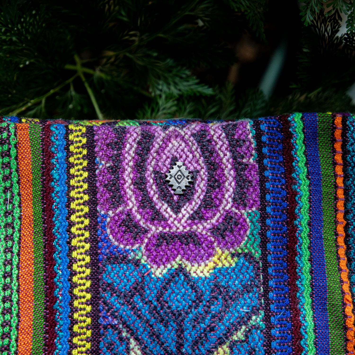 Many unique Maya symbols can be found in our One of a Kind Collection. The fabric we use for this collection is made from upcycled vintage huipiles (traditional attire worn by women in Guatemala) that were handwoven by Artisans up to 10 years ago, and they have lived a full life before being incorporated into your leather bag!