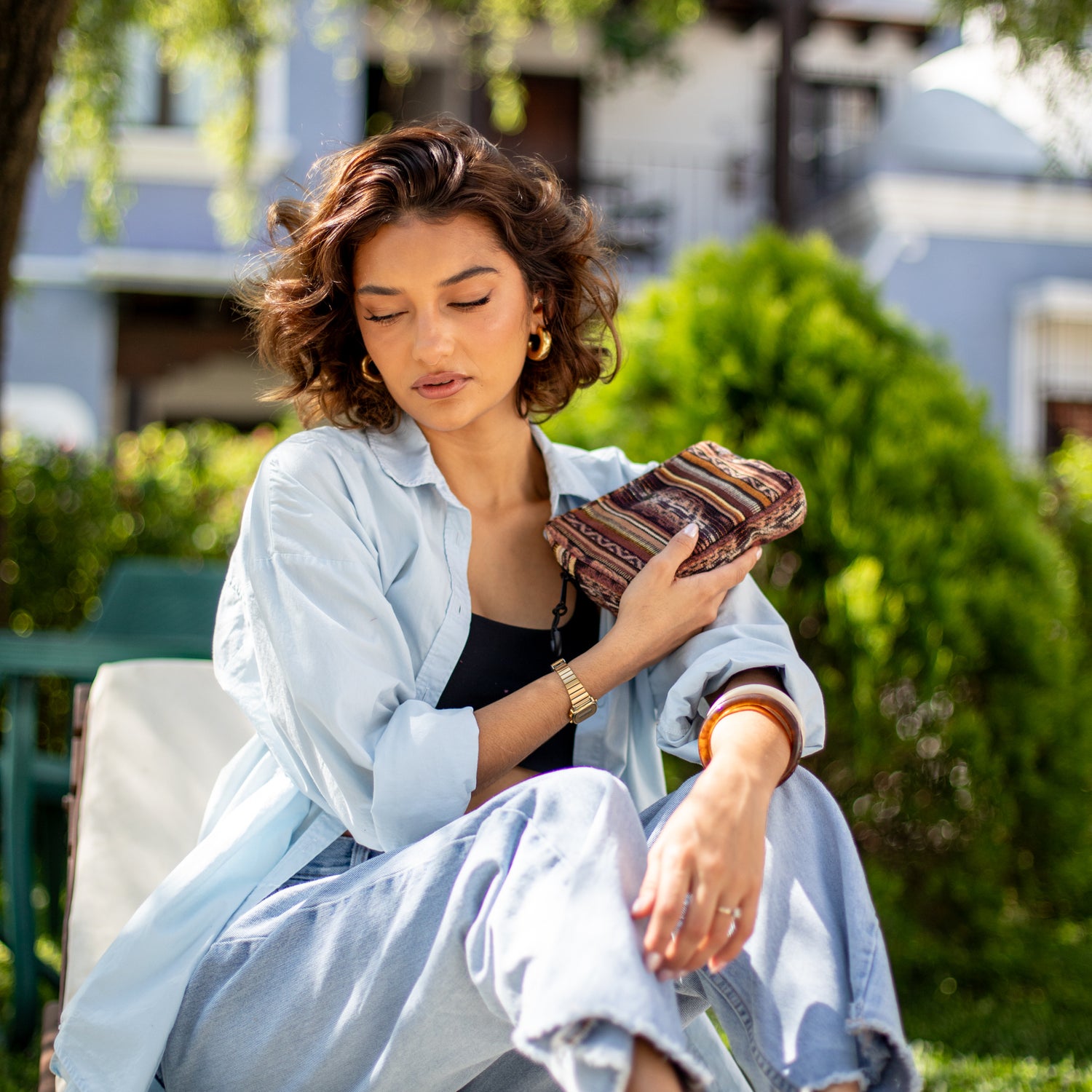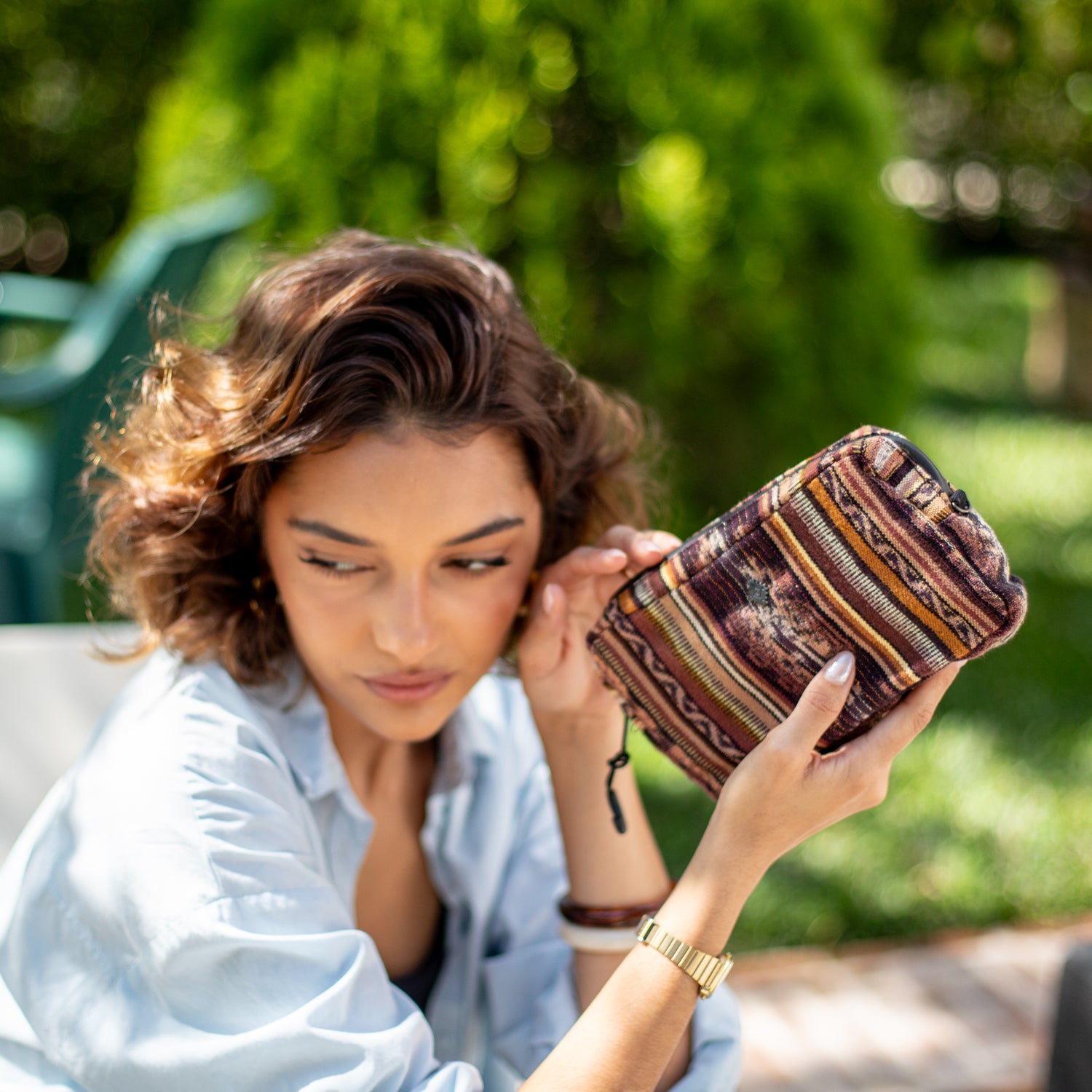 We make every effort to provide our customers with the best-handcrafted and high-quality bags. Please note that all our processes to make the bags are done by hand, from curing, cutting, and treating the leather to using up-cycled huipils. Our bags have natural characteristics and qualities that should not be considered as flaws or as damage because they do not interfere with the functionality of the bag. We up-cycle vintage Maya clothing to make beautiful one-of-a-kind products. Many times you will find snags in the pattern. This is normal. Should your patterned huipil snag you can snip the loose threads with scissors. Do not pull them.