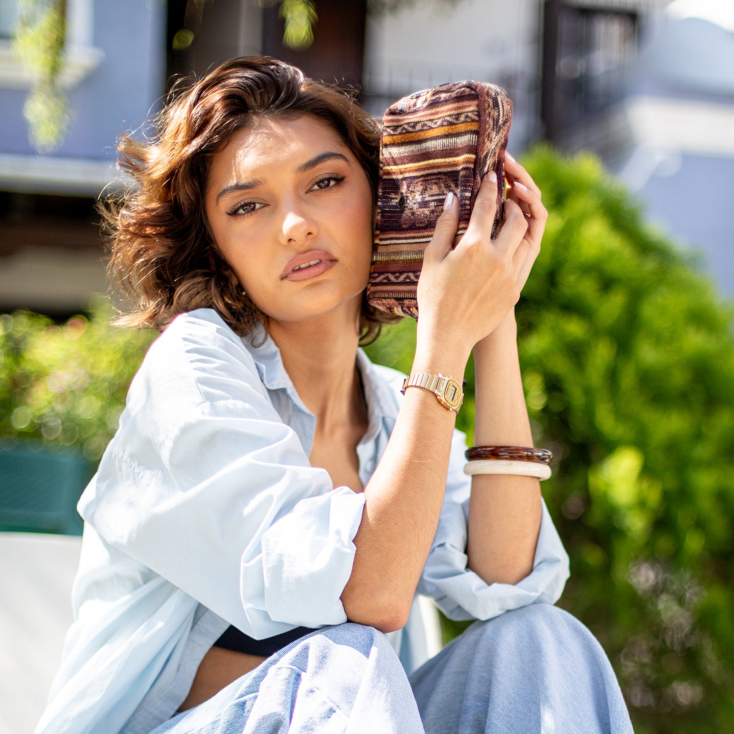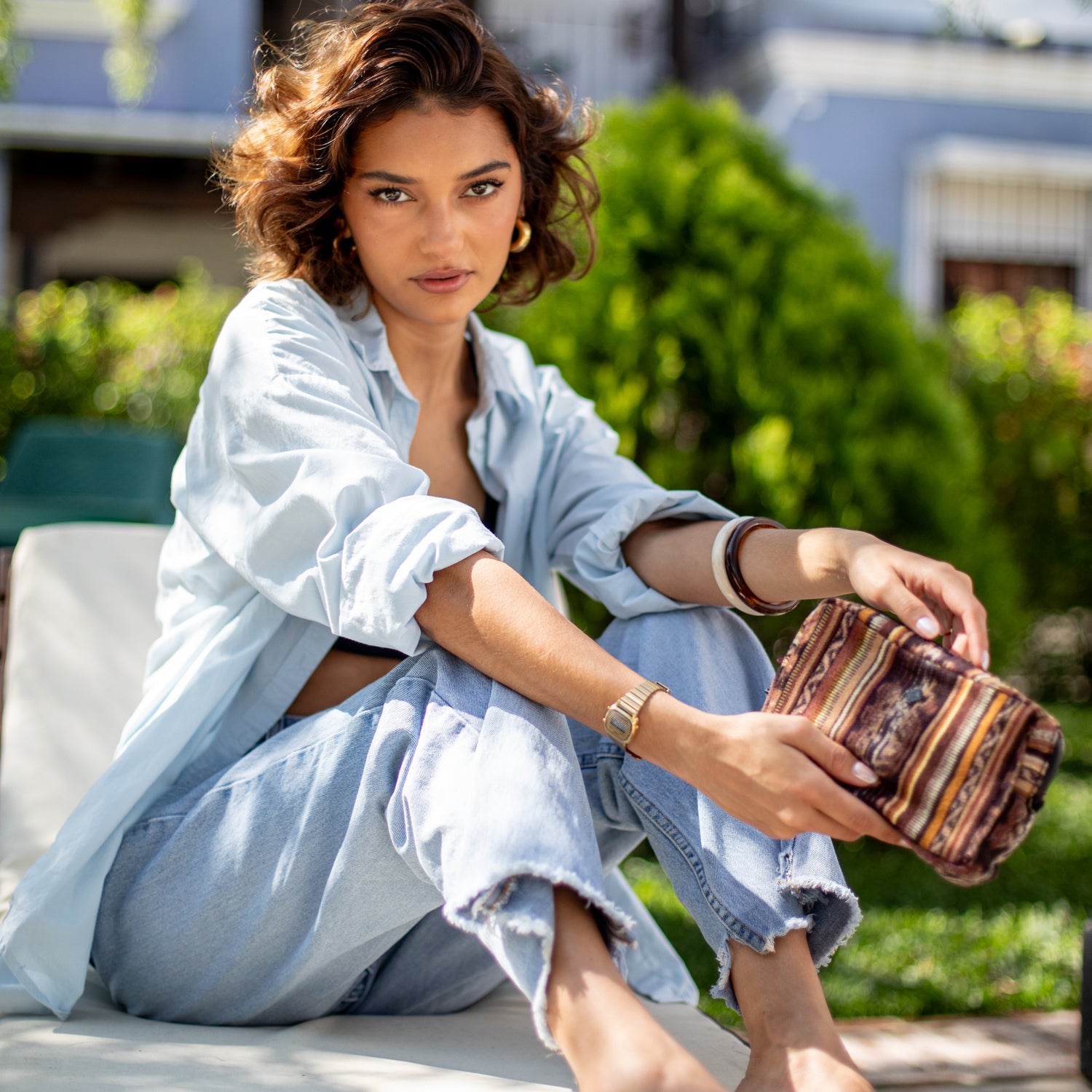 Our most well-known symbol is the Womanhood Icon from our Heritage & Society Collection. Inspired by the symbols of the traditional weavings, Nena Founder Ali Hynek created this icon to symbolize our ebbs and flows, our seasons, powers of creation, our never ending journey to find balance, and our constant regeneration and rebirths.