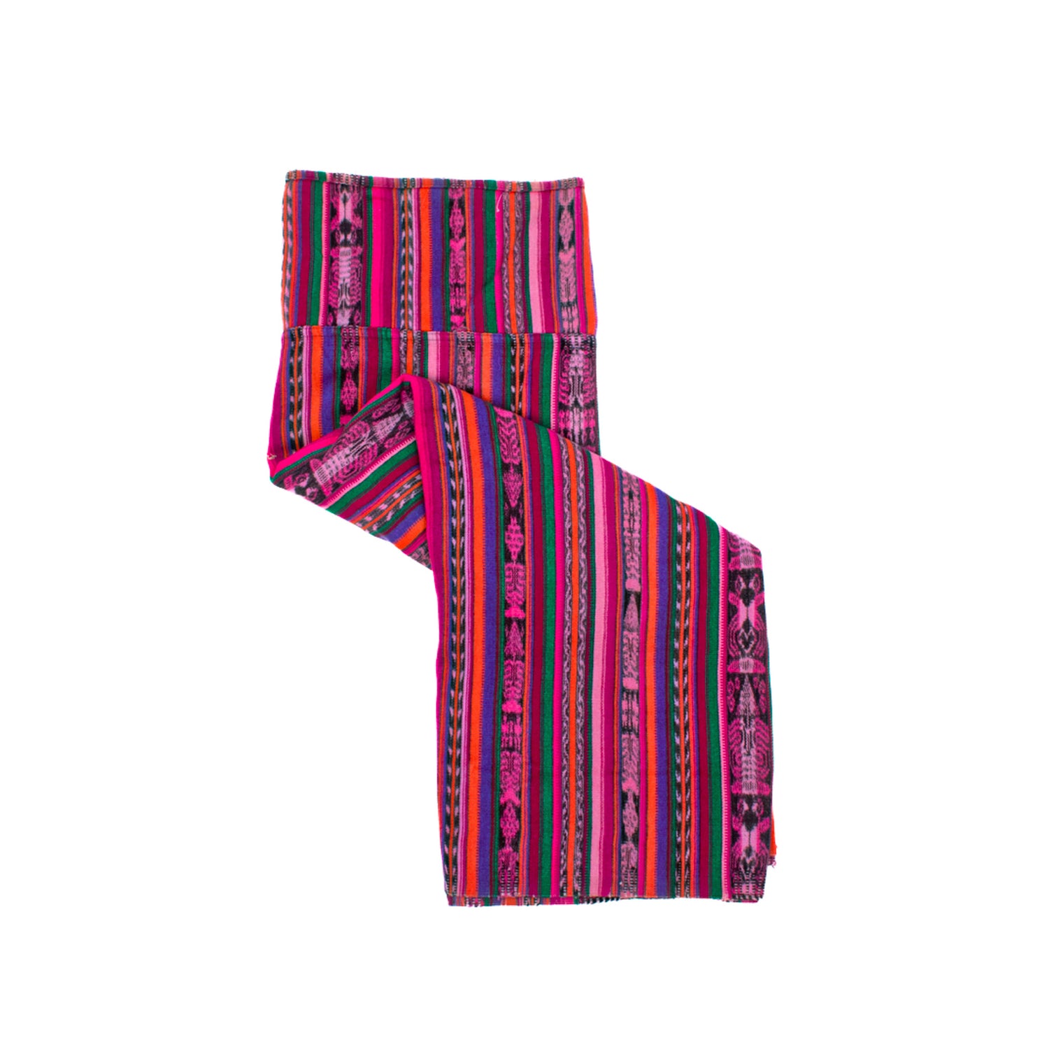 This design may appear to be a Chevron-like pattern. However, the Maya people see the landscape of their homelands in this motif. The two distinct tall peaks represent the soaring mountains and the narrow valleys they live in. The wide range of diamonds and lines woven throughout the landscape are the people, rivers, and roads. This design is often special to those who have triumphed over hardships or returned to peace.