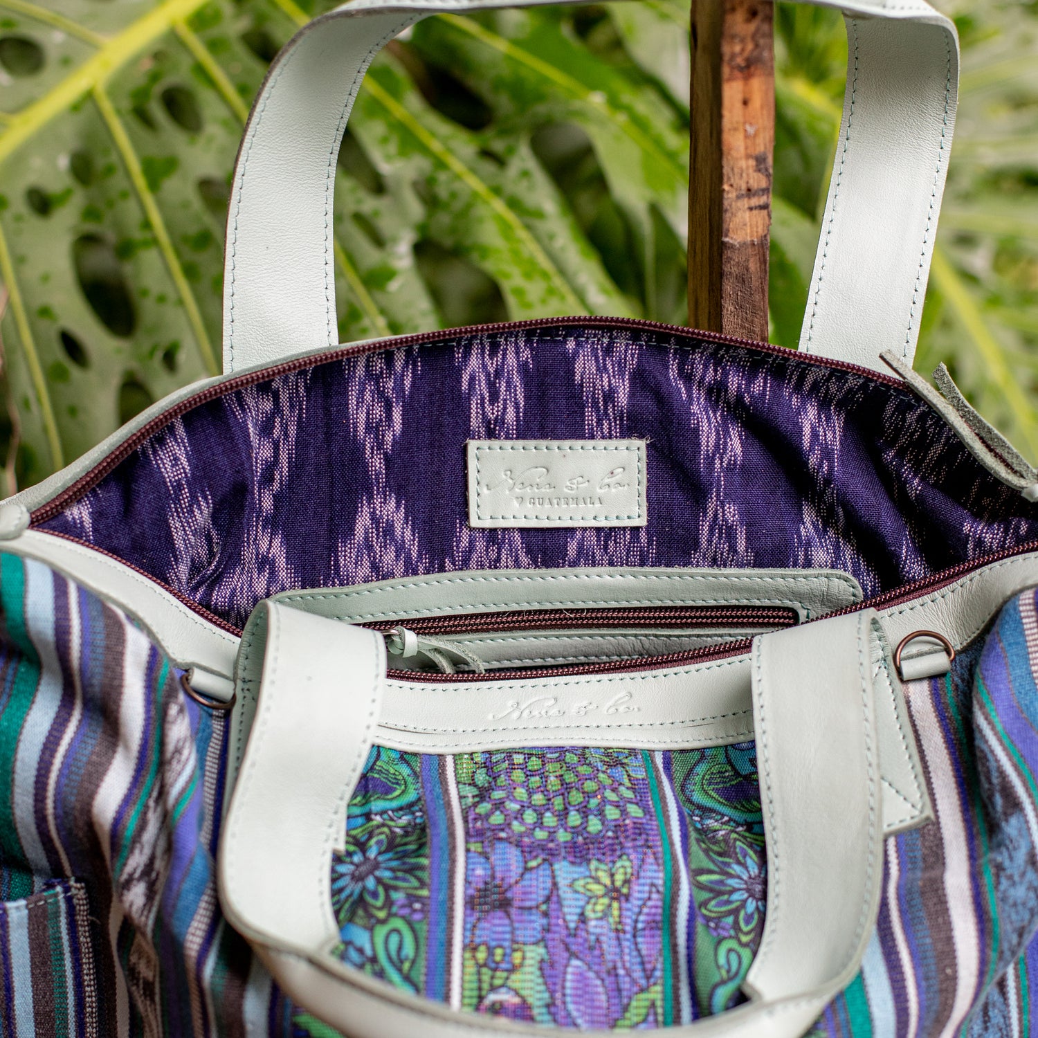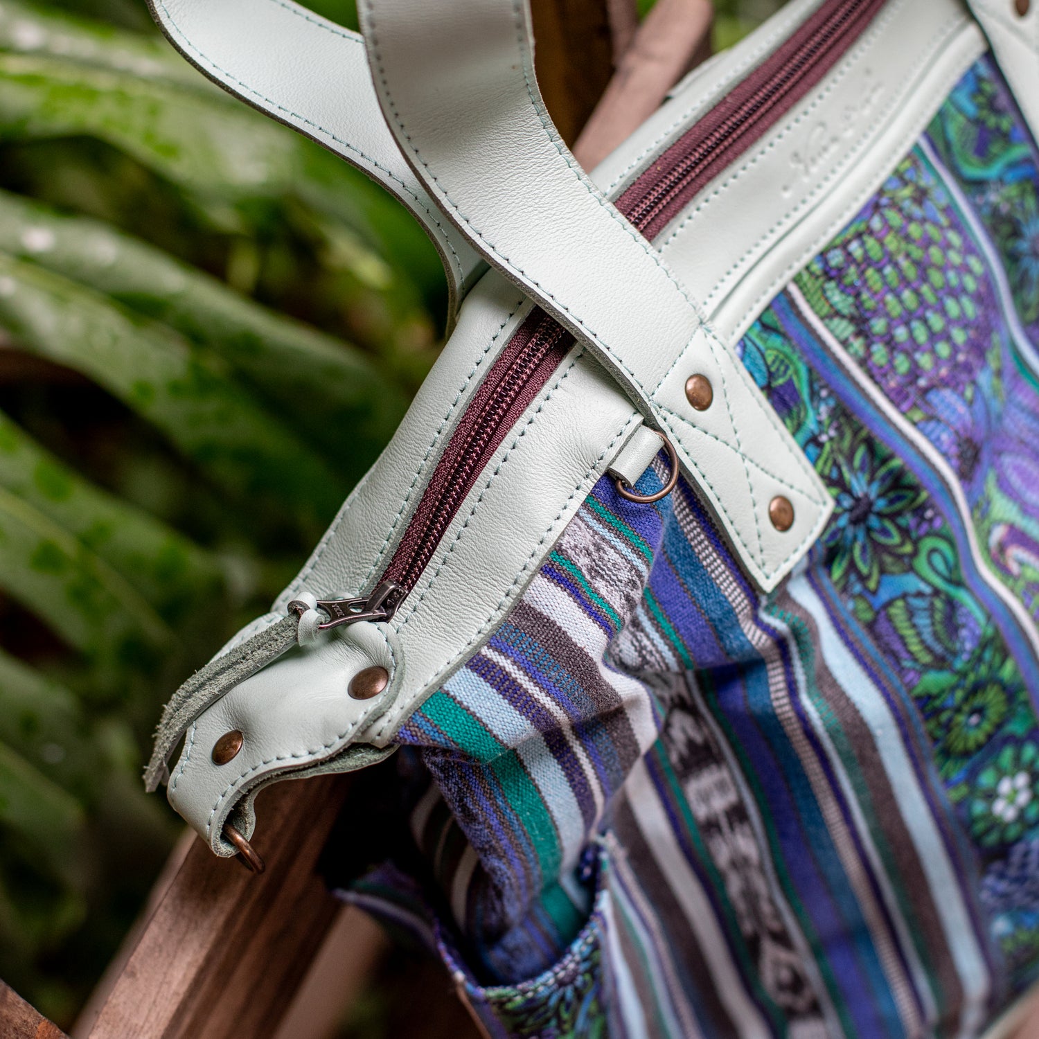 We make every effort to provide our customers with the best-handcrafted and high-quality bags. Please note that all our processes to make the bags are done by hand, from curing, cutting, and treating the leather to using up-cycled huipils. Our bags have natural characteristics and qualities that should not be considered as flaws or as damage because they do not interfere with the functionality of the bag. We up-cycle vintage Maya clothing to make beautiful one-of-a-kind products. Many times you will find snags in the pattern. This is normal. Should your patterned huipil snag you can snip the loose threads with scissors. Do not pull them.