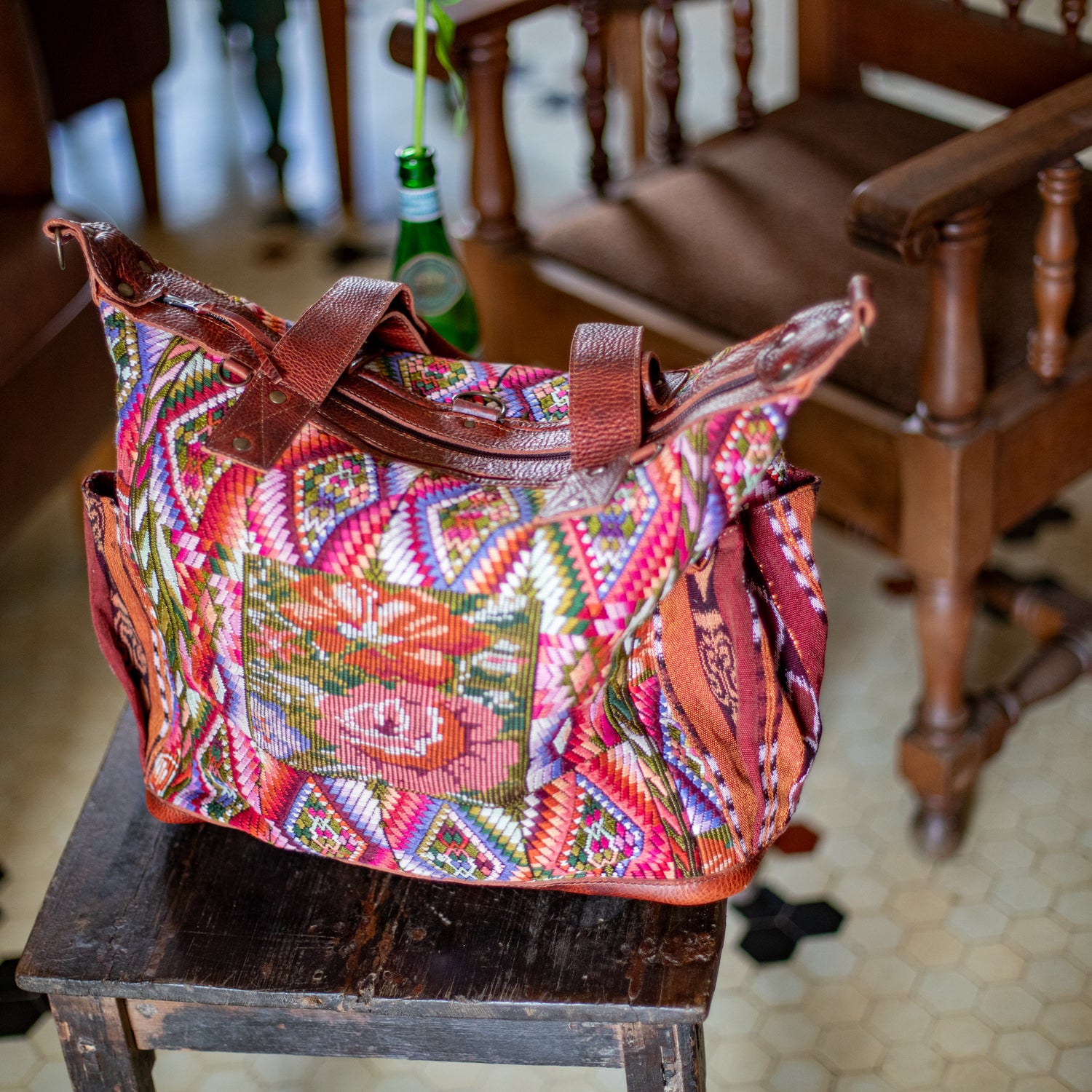 Our One of a Kind Collection features products crafted from hand-selected vintage fabrics sourced from trusted market vendors in Guatemala. Each textile has a story—woven by artisans from memory, often a decade ago, with patterns unique to their region. These fabrics have lived vibrant lives before being reimagined into your Nena piece. Every item is truly one of a kind—rich in heritage, artfully made, and absolutely unforgettable.