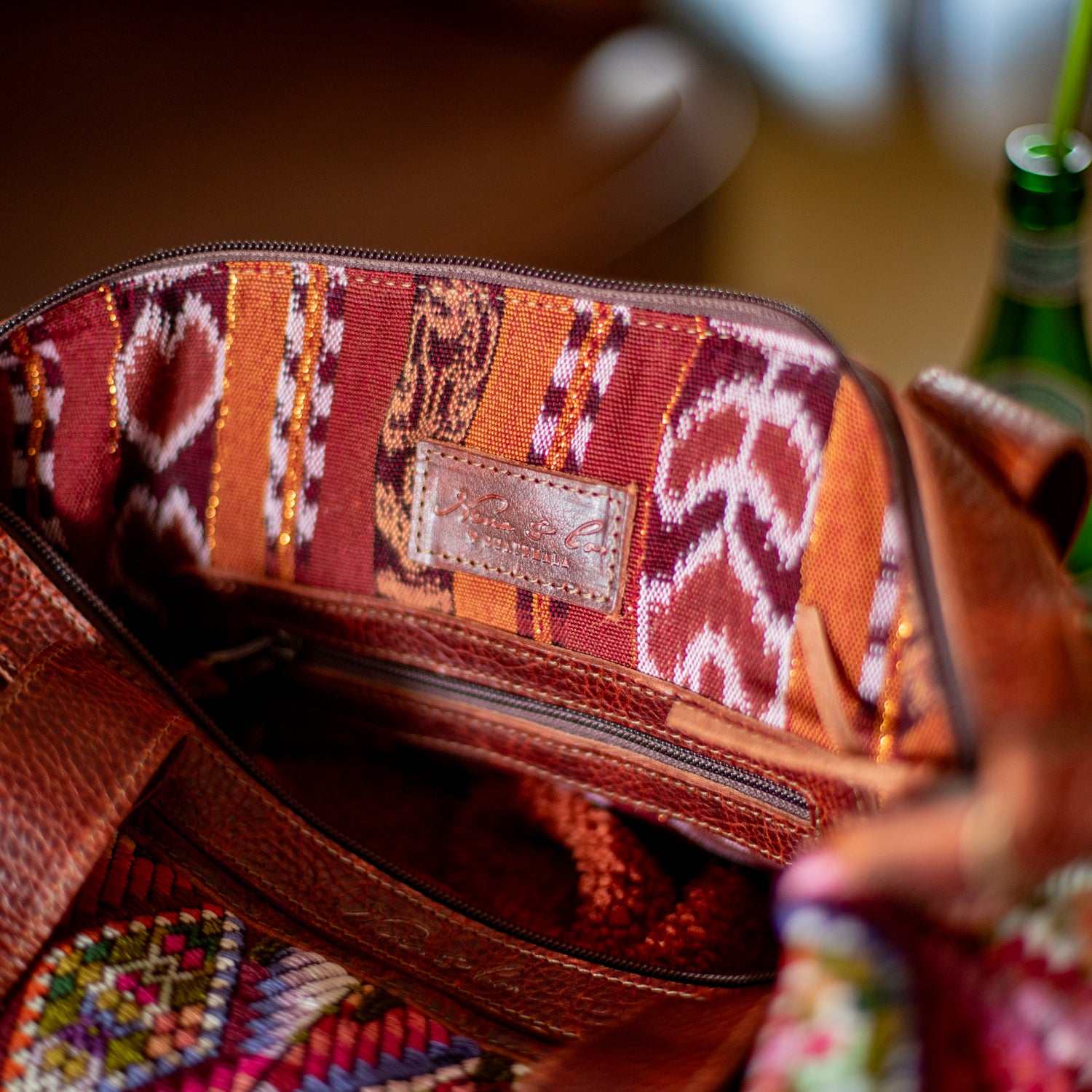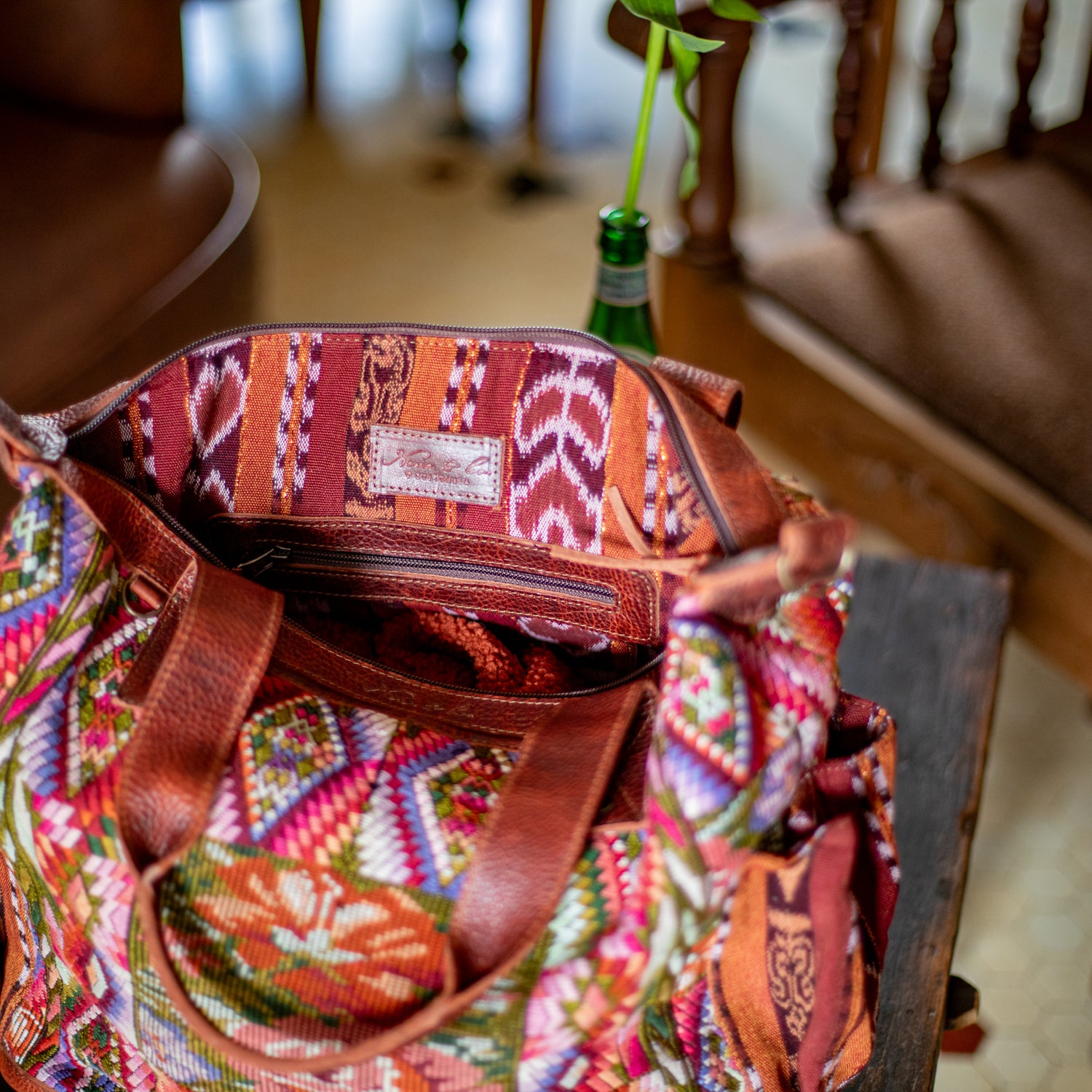 We make every effort to provide our customers with the best-handcrafted and high-quality bags. Please note that all our processes to make the bags are done by hand, from curing, cutting, and treating the leather to using up-cycled huipils. Our bags have natural characteristics and qualities that should not be considered as flaws or as damage because they do not interfere with the functionality of the bag. We up-cycle vintage Maya clothing to make beautiful one-of-a-kind products. Many times you will find snags in the pattern. This is normal. Should your patterned huipil snag you can snip the loose threads with scissors. Do not pull them.