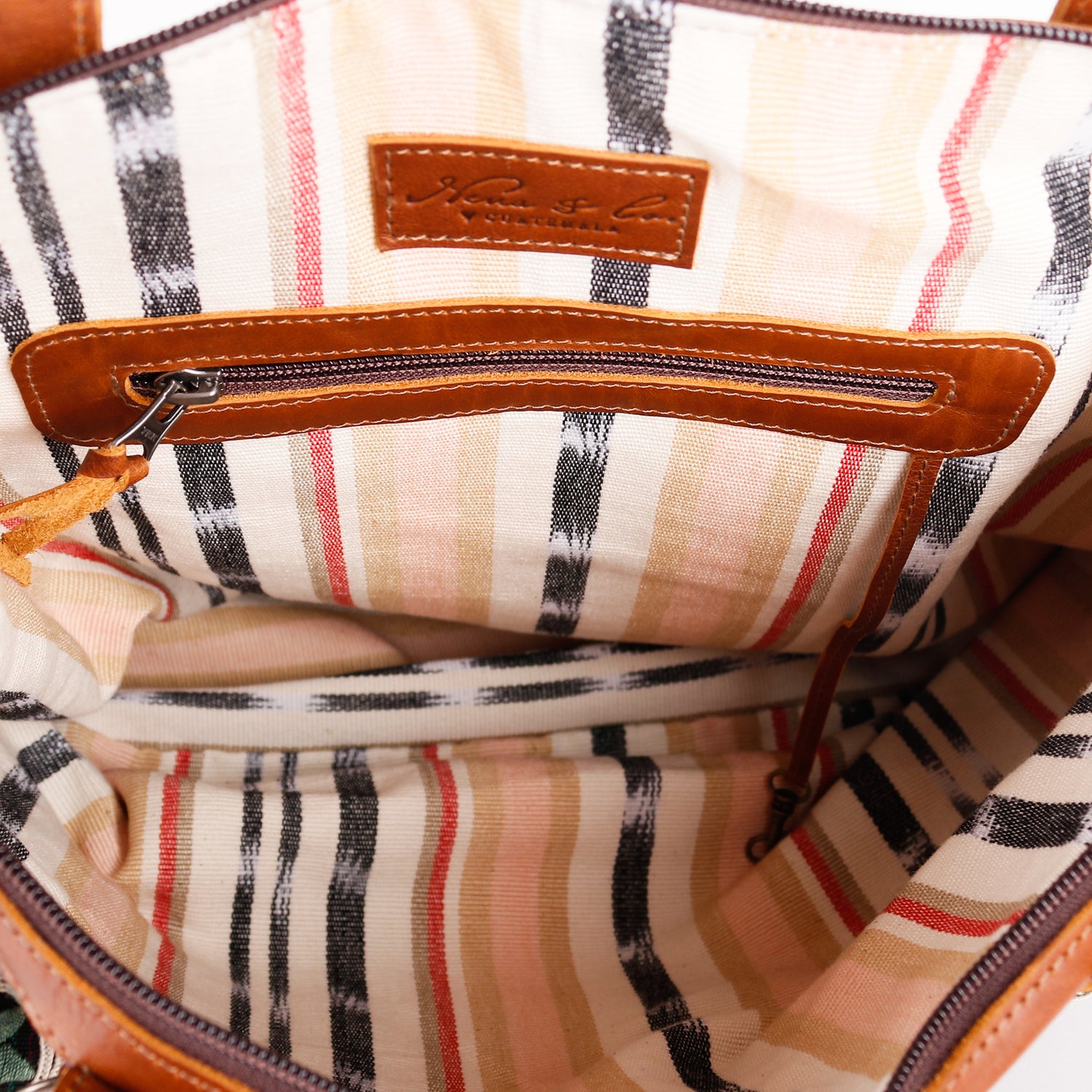 We make every effort to provide our customers with the best-handcrafted and high-quality bags. Please note that all our processes to make the bags are done by hand, from curing, cutting, and treating the leather to using up-cycled huipils. Our bags have natural characteristics and qualities that should not be considered as flaws or as damage because they do not interfere with the functionality of the bag. We up-cycle vintage Maya clothing to make beautiful one-of-a-kind products. Many times you will find snags in the pattern. This is normal. Should your patterned huipil snag you can snip the loose threads with scissors. Do not pull them.