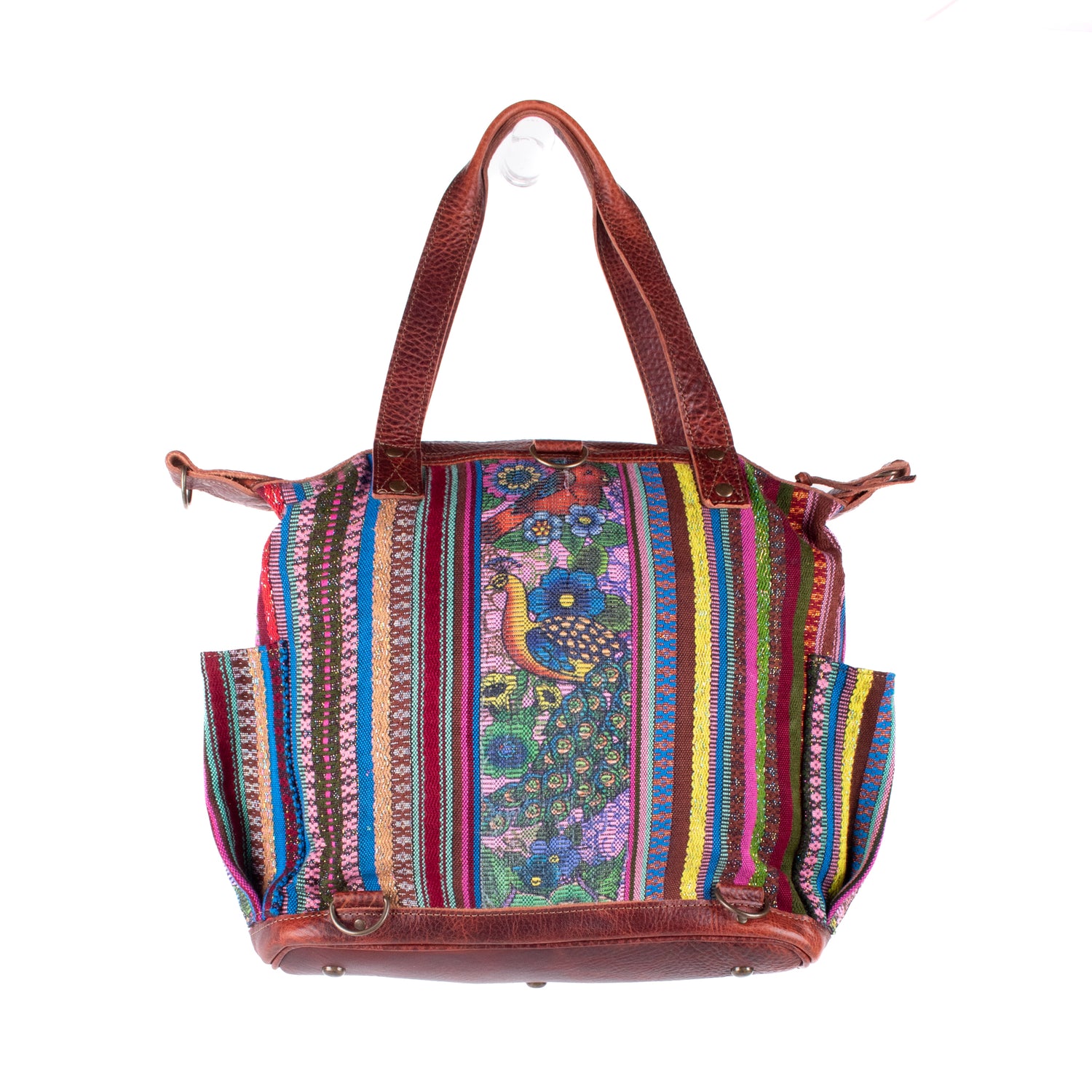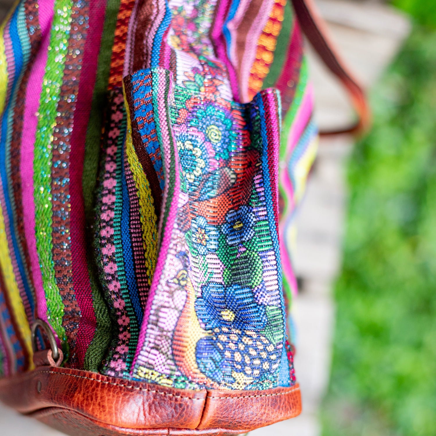 Many unique Maya symbols can be found in our One of a Kind Collection. The fabric we use for this collection is made from upcycled vintage huipiles (traditional attire worn by women in Guatemala) that were handwoven by Artisans up to 10 years ago, and they have lived a full life before being incorporated into your leather bag!