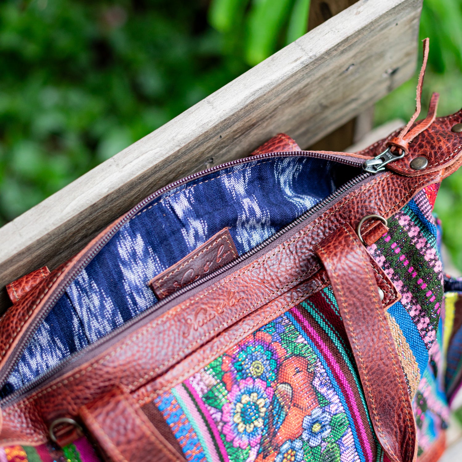 We make every effort to provide our customers with the best-handcrafted and high-quality bags. Please note that all our processes to make the bags are done by hand, from curing, cutting, and treating the leather to using up-cycled huipils. Our bags have natural characteristics and qualities that should not be considered as flaws or as damage because they do not interfere with the functionality of the bag. We up-cycle vintage Maya clothing to make beautiful one-of-a-kind products. Many times you will find snags in the pattern. This is normal. Should your patterned huipil snag you can snip the loose threads with scissors. Do not pull them.
