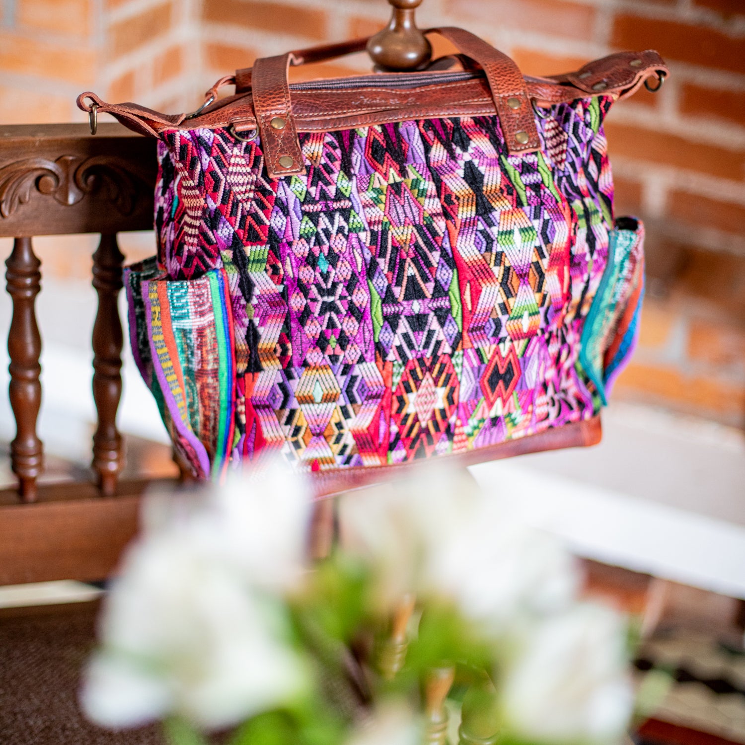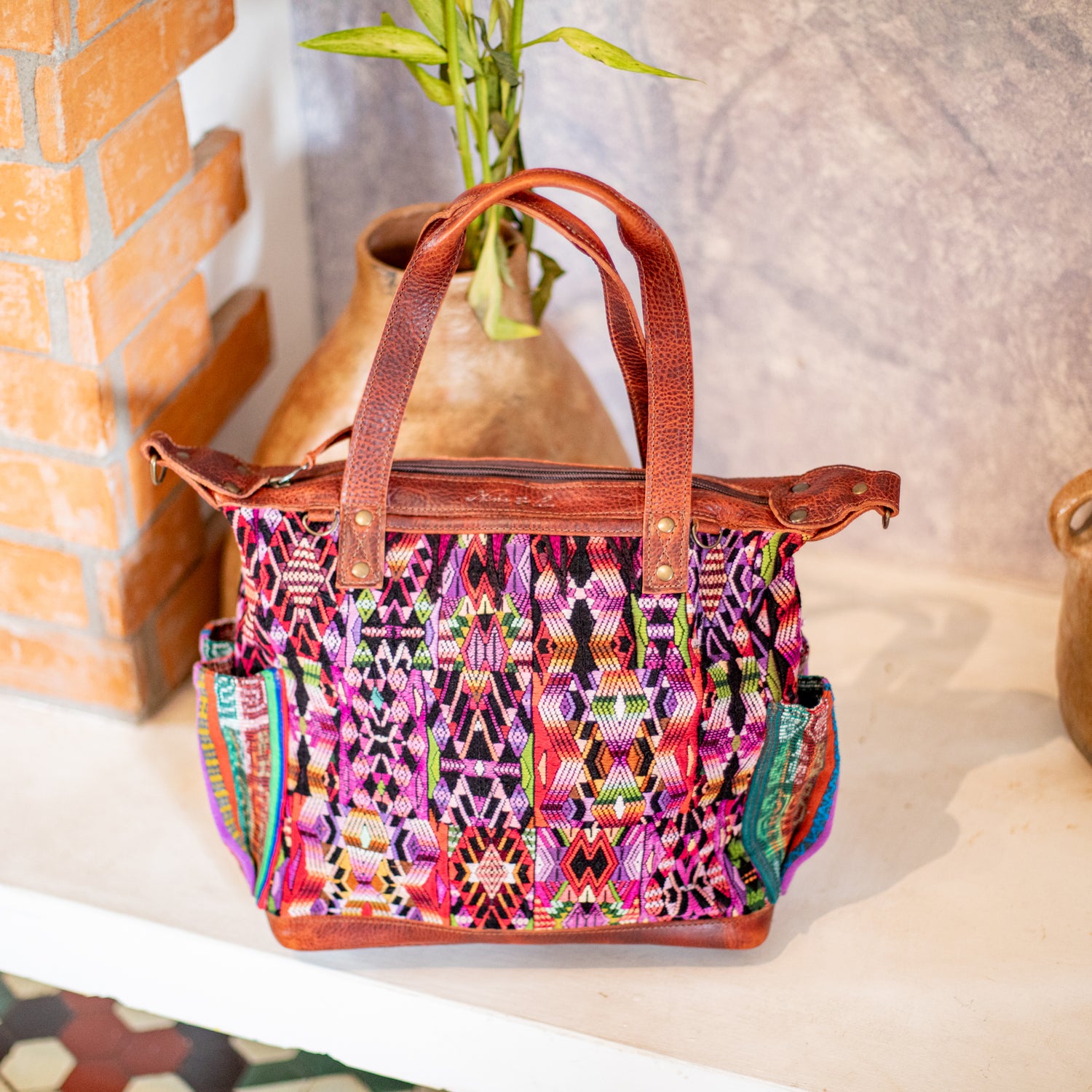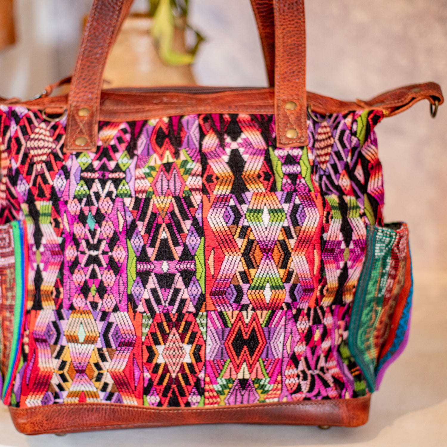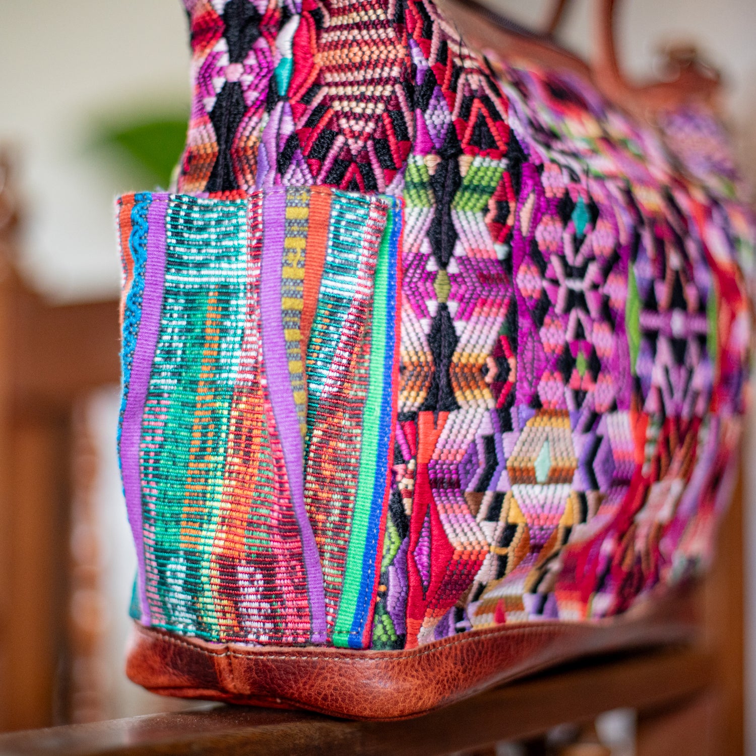 We make every effort to provide our customers with the best-handcrafted and high-quality bags. Please note that all our processes to make the bags are done by hand, from curing, cutting, and treating the leather to using up-cycled huipils. Our bags have natural characteristics and qualities that should not be considered as flaws or as damage because they do not interfere with the functionality of the bag. We up-cycle vintage Maya clothing to make beautiful one-of-a-kind products. Many times you will find snags in the pattern. This is normal. Should your patterned huipil snag you can snip the loose threads with scissors. Do not pull them.