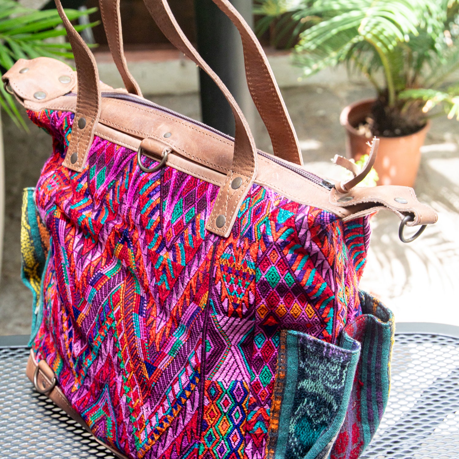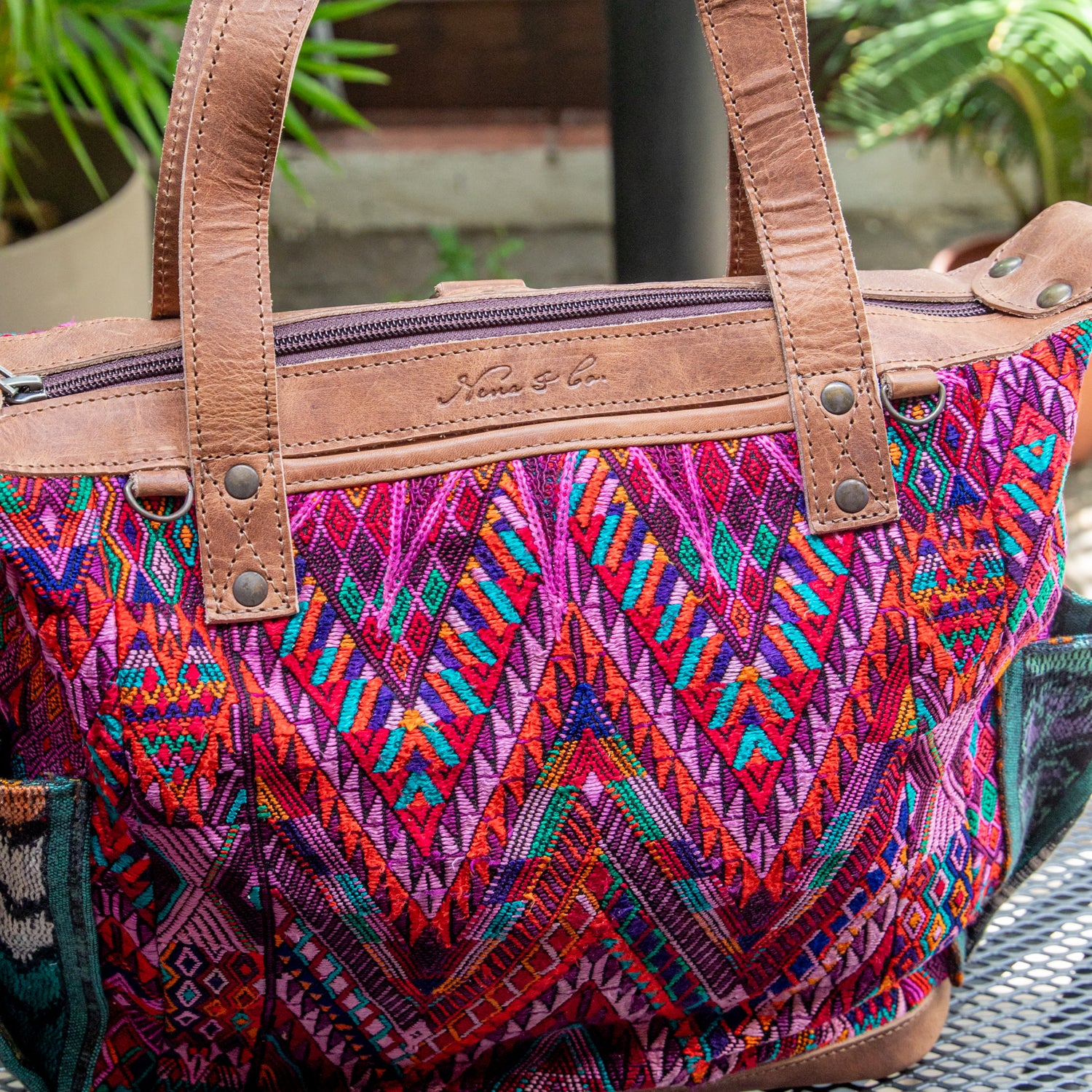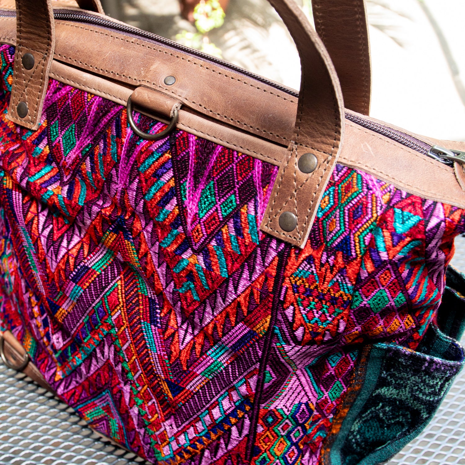 We make every effort to provide our customers with the best-handcrafted and high-quality bags. Please note that all our processes to make the bags are done by hand, from curing, cutting, and treating the leather to using up-cycled huipils. Our bags have natural characteristics and qualities that should not be considered as flaws or as damage because they do not interfere with the functionality of the bag. We up-cycle vintage Maya clothing to make beautiful one-of-a-kind products. Many times you will find snags in the pattern. This is normal. Should your patterned huipil snag you can snip the loose threads with scissors. Do not pull them.