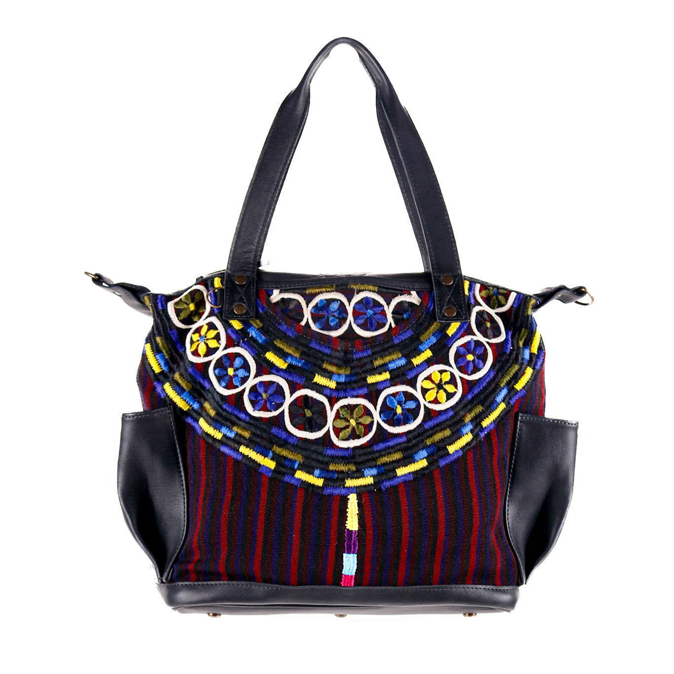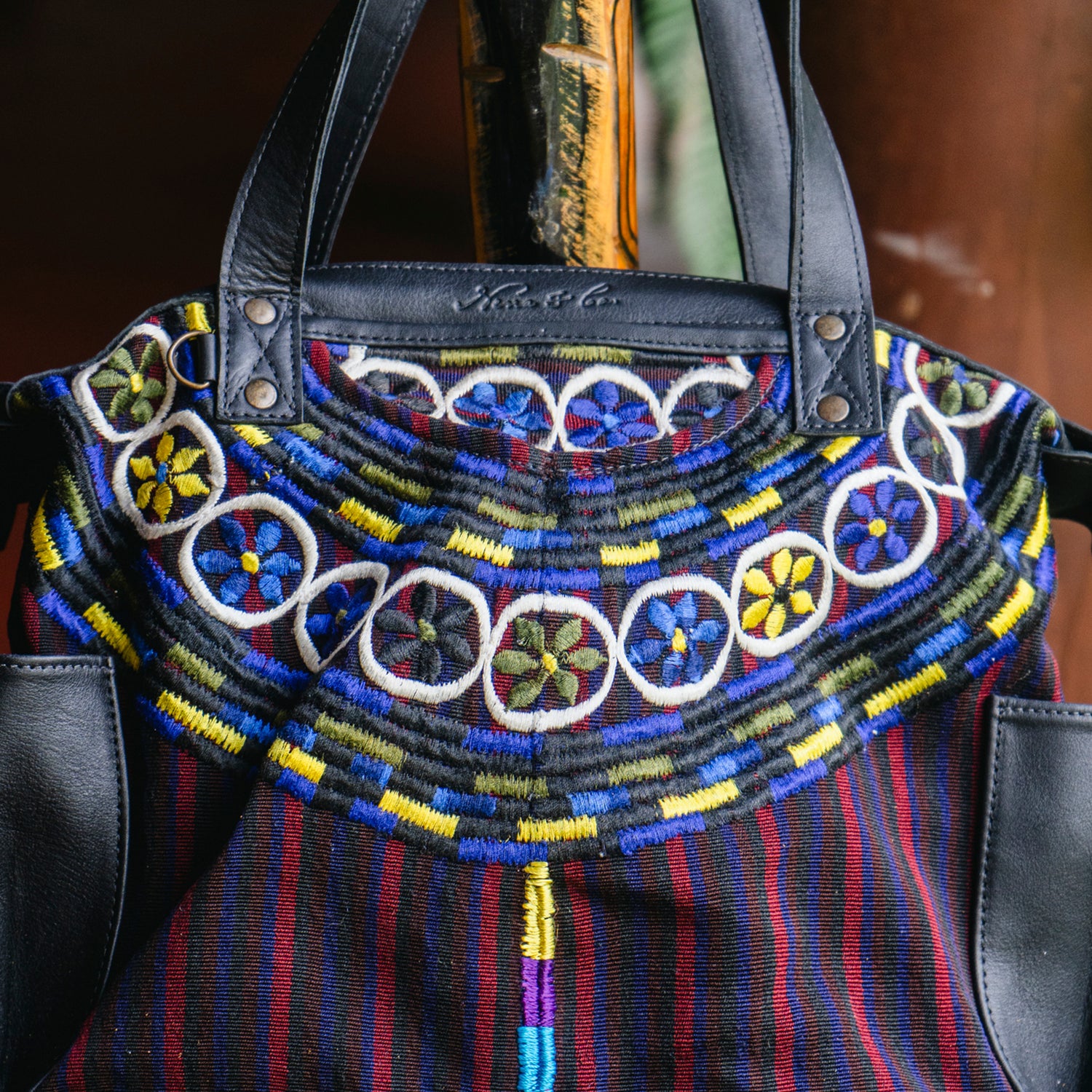 We make every effort to provide our customers with the best-handcrafted and high-quality bags. Please note that all our processes to make the bags are done by hand, from curing, cutting, and treating the leather to using up-cycled huipils. Our bags have natural characteristics and qualities that should not be considered as flaws or as damage because they do not interfere with the functionality of the bag. We up-cycle vintage Maya clothing to make beautiful one-of-a-kind products. Many times you will find snags in the pattern. This is normal. Should your patterned huipil snag you can snip the loose threads with scissors. Do not pull them.