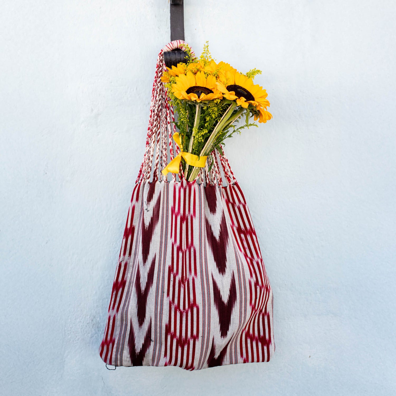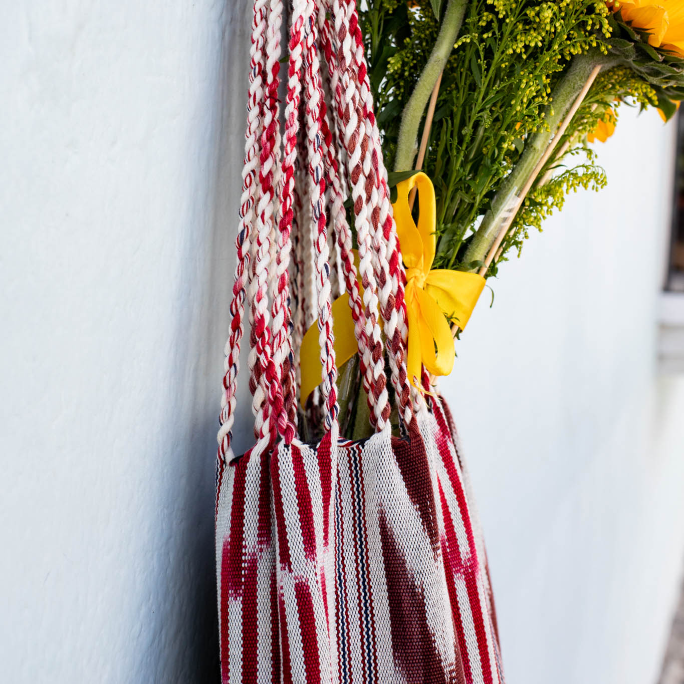 The Pana Market Tote is a stunning celebration of tradition and craftsmanship, sourced directly from skilled artisans in Panajachel, Guatemala. Made from hand-loomed fabric, each showcases vibrant, heritage-rich patterns woven on traditional foot looms--a meticulous art form passed down through generations. The twisted thread handles add both durability and a distinctive touch, making this tote as functional as it is beautiful. Whether you're headed to the market or the beach, the Pana Market Tote carries the soul of its makers and their stories.