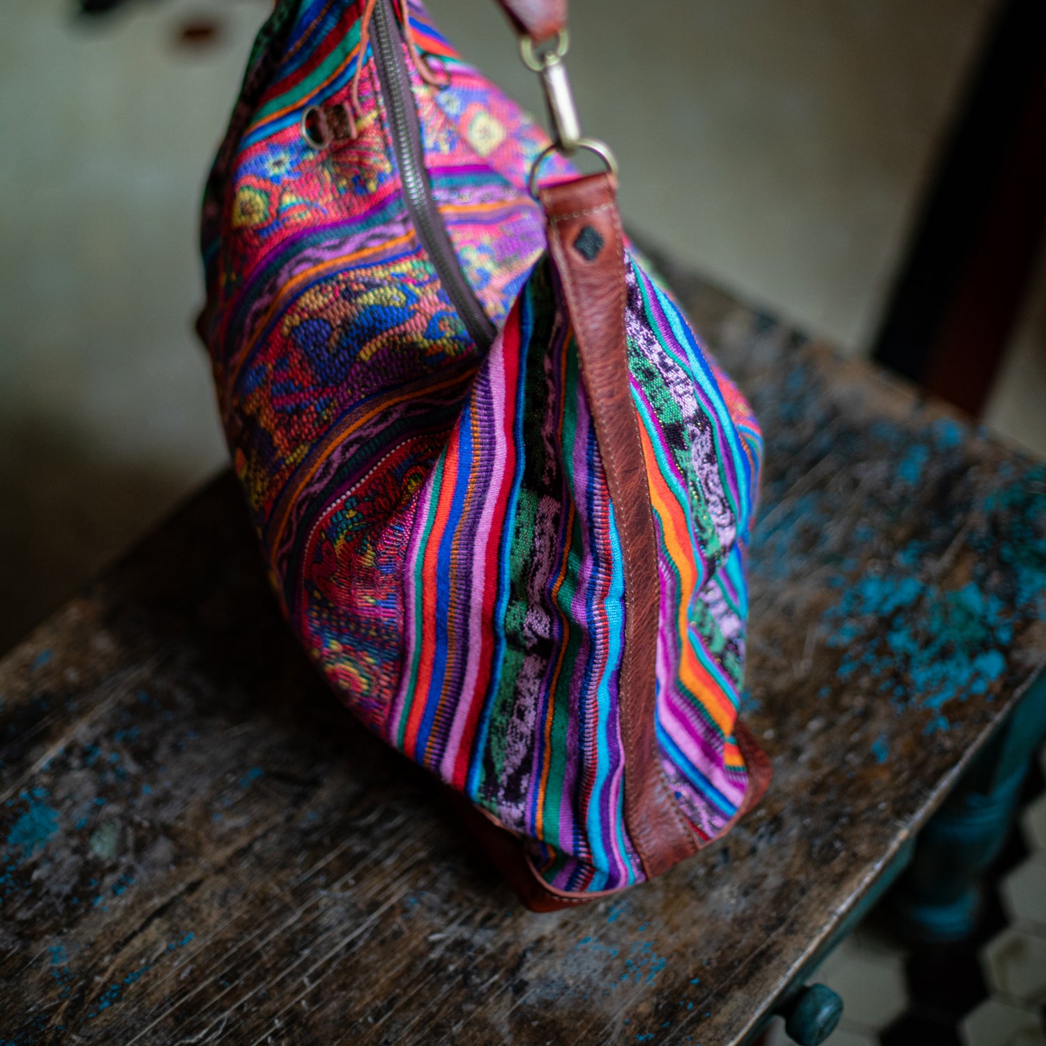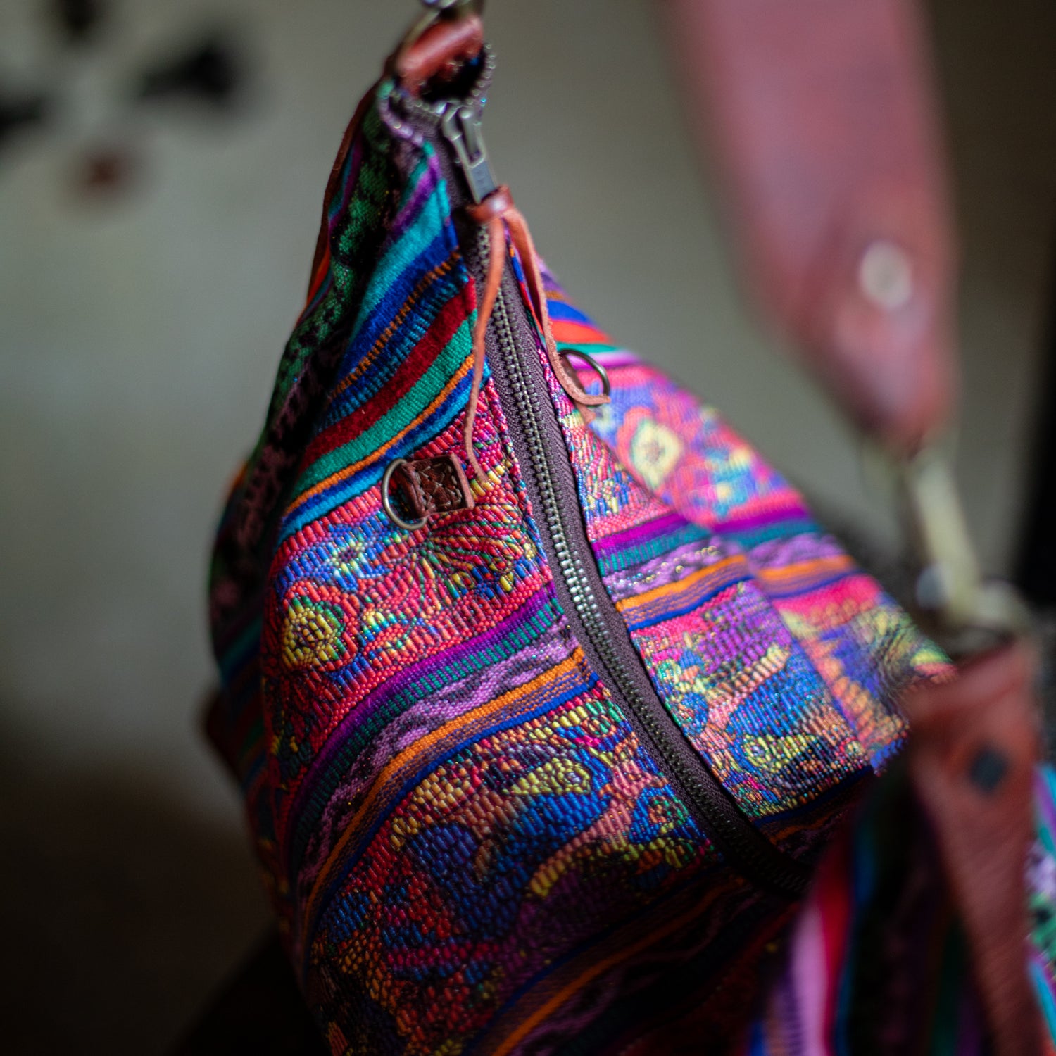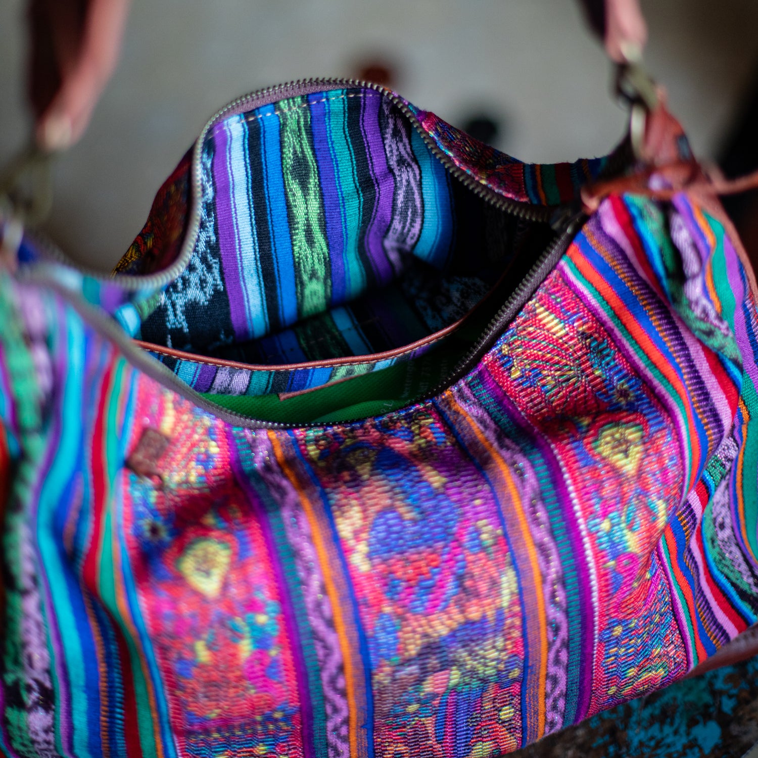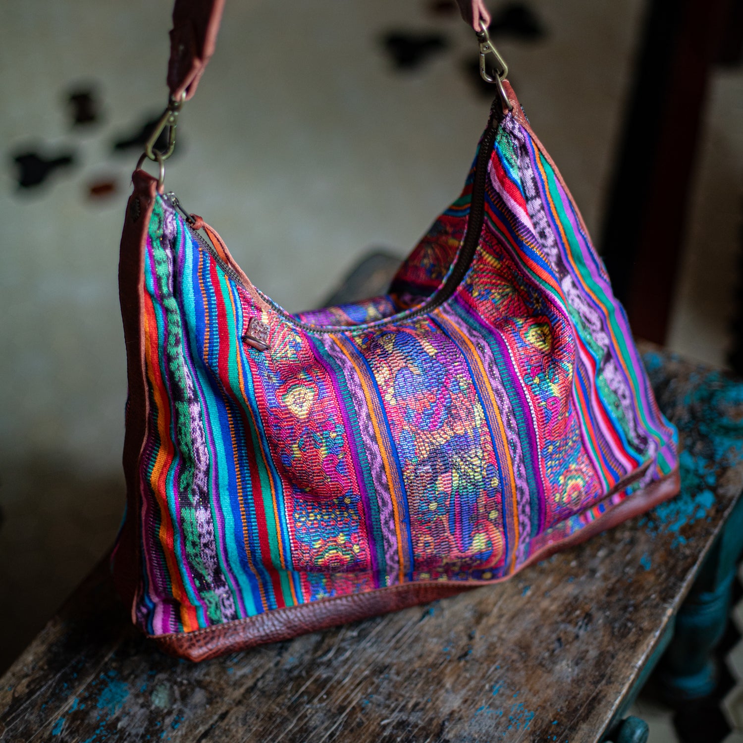 We make every effort to provide our customers with the best-handcrafted and high-quality bags. Please note that all our processes to make the bags are done by hand, from curing, cutting, and treating the leather to using up-cycled huipils. Our bags have natural characteristics and qualities that should not be considered as flaws or as damage because they do not interfere with the functionality of the bag. We up-cycle vintage Maya clothing to make beautiful one-of-a-kind products. Many times you will find snags in the pattern. This is normal. Should your patterned huipil snag you can snip the loose threads with scissors. Do not pull them.