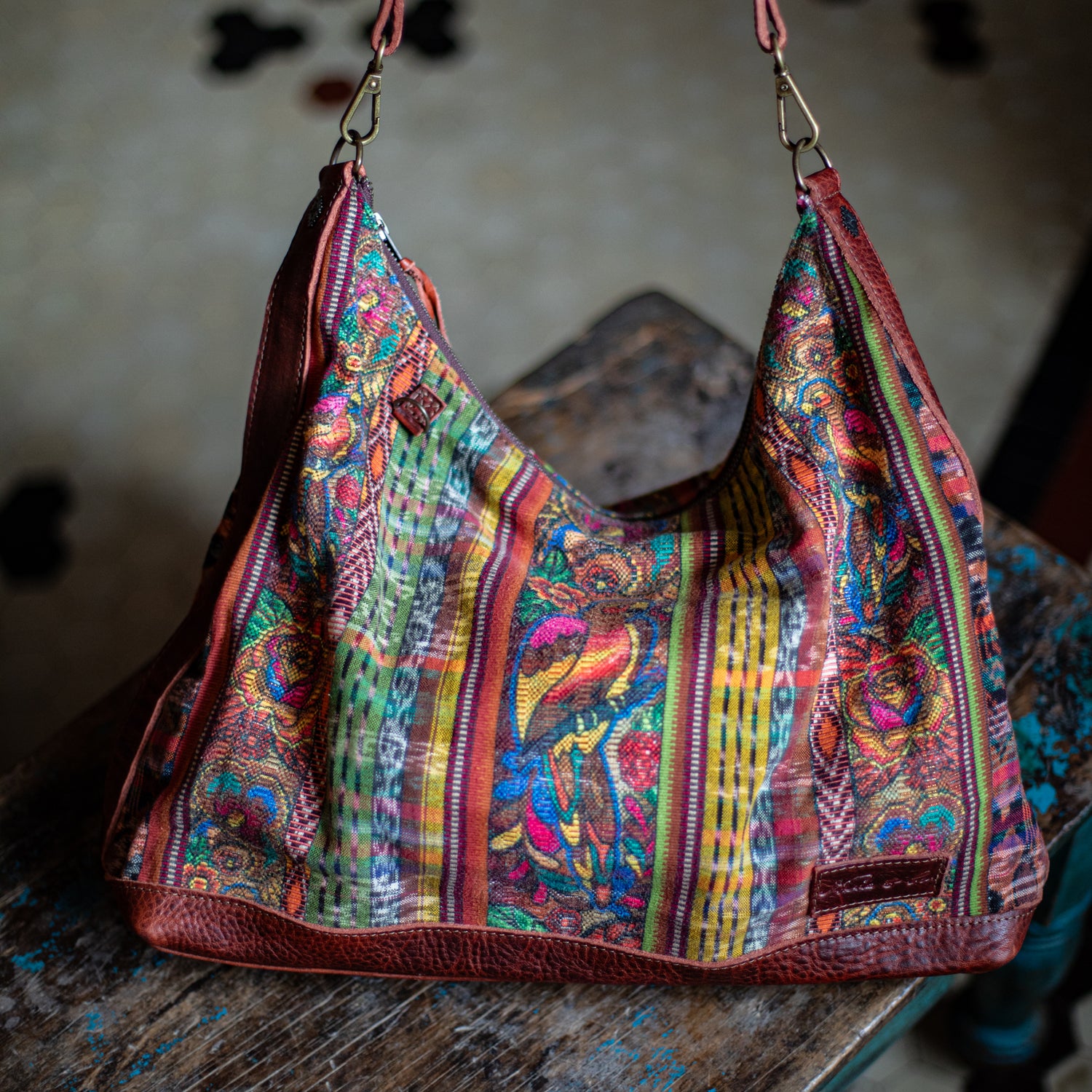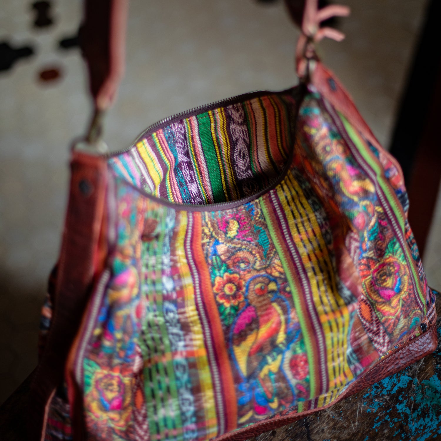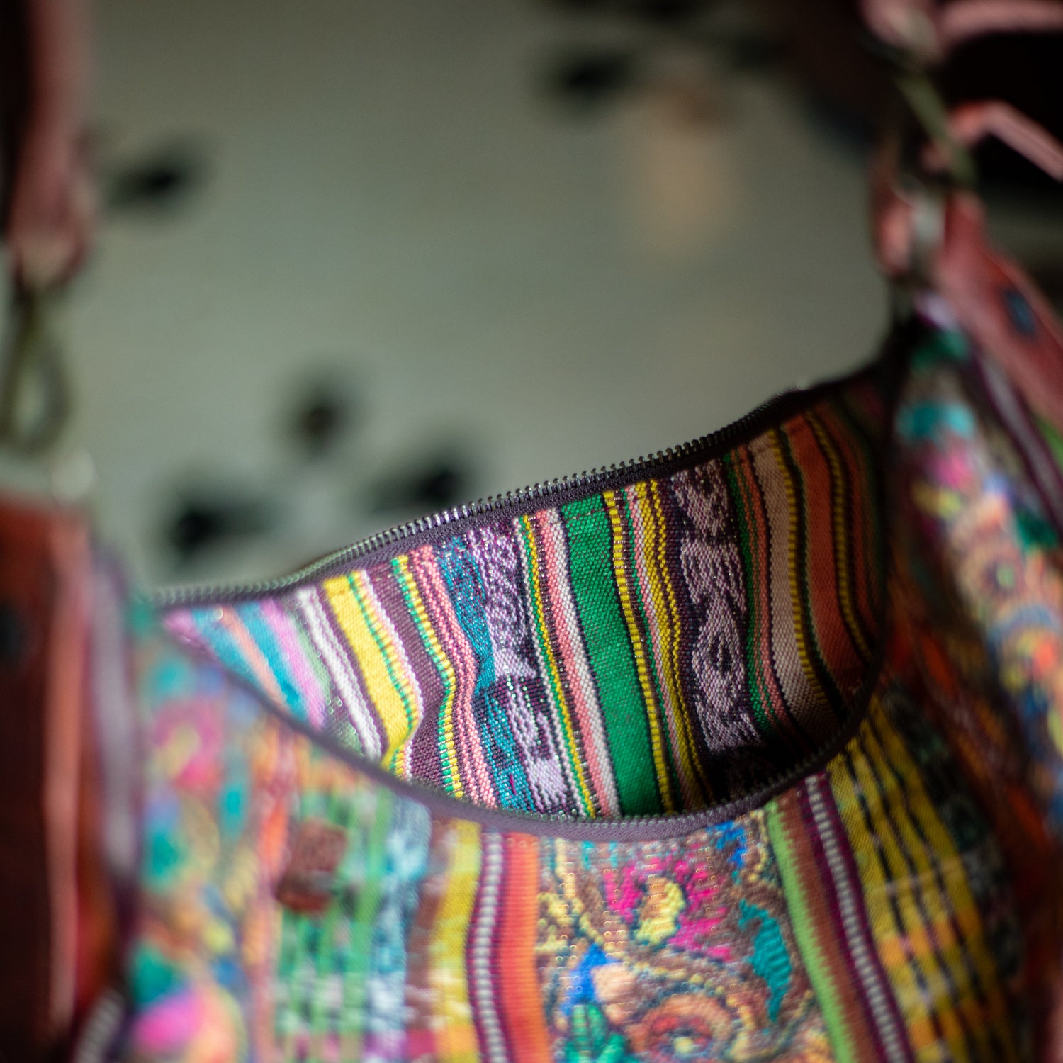 We make every effort to provide our customers with the best-handcrafted and high-quality bags. Please note that all our processes to make the bags are done by hand, from curing, cutting, and treating the leather to using up-cycled huipils. Our bags have natural characteristics and qualities that should not be considered as flaws or as damage because they do not interfere with the functionality of the bag. We up-cycle vintage Maya clothing to make beautiful one-of-a-kind products. Many times you will find snags in the pattern. This is normal. Should your patterned huipil snag you can snip the loose threads with scissors. Do not pull them.