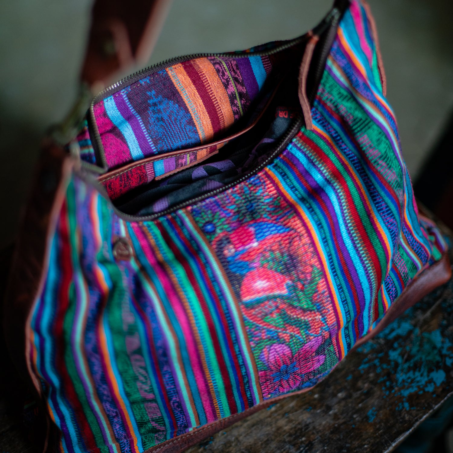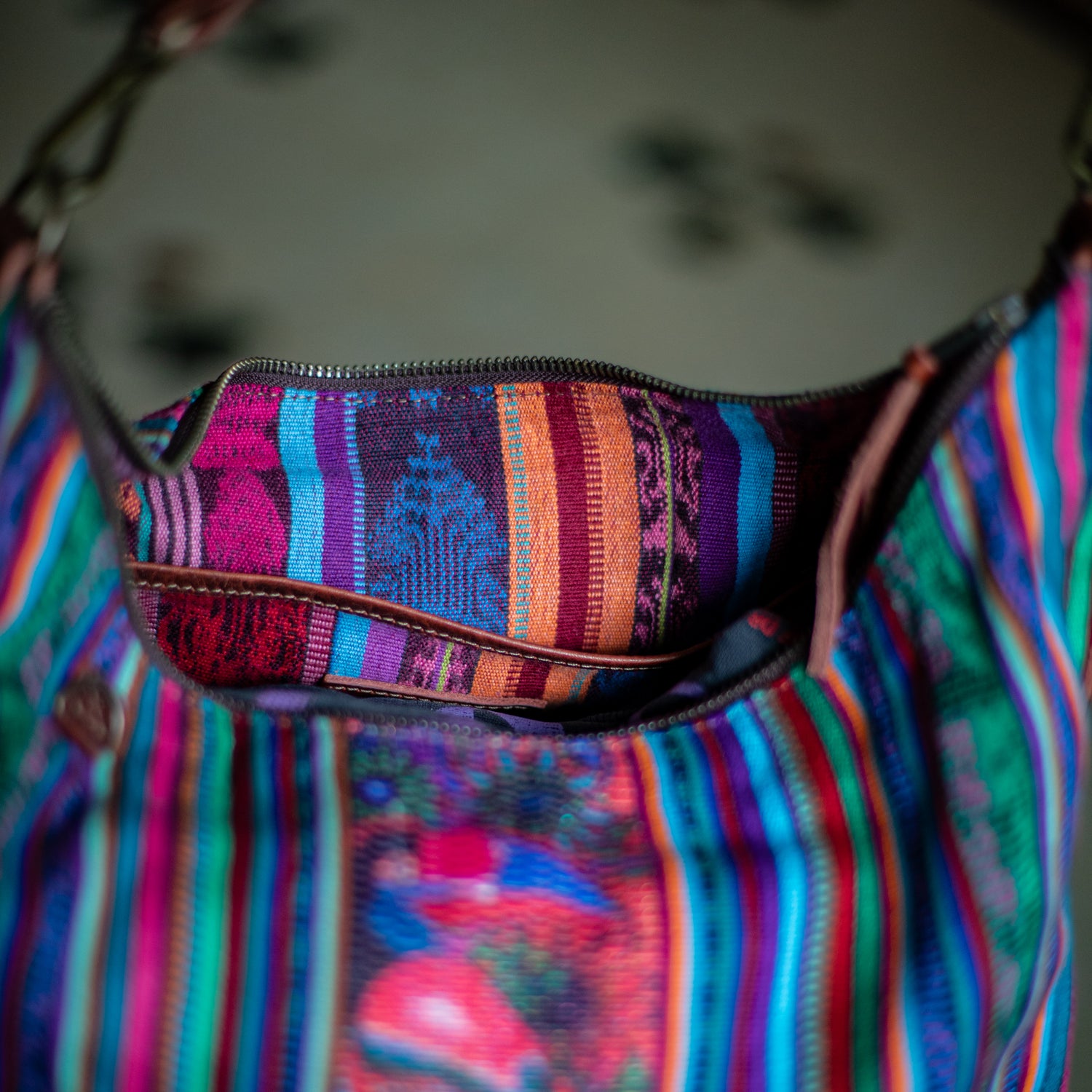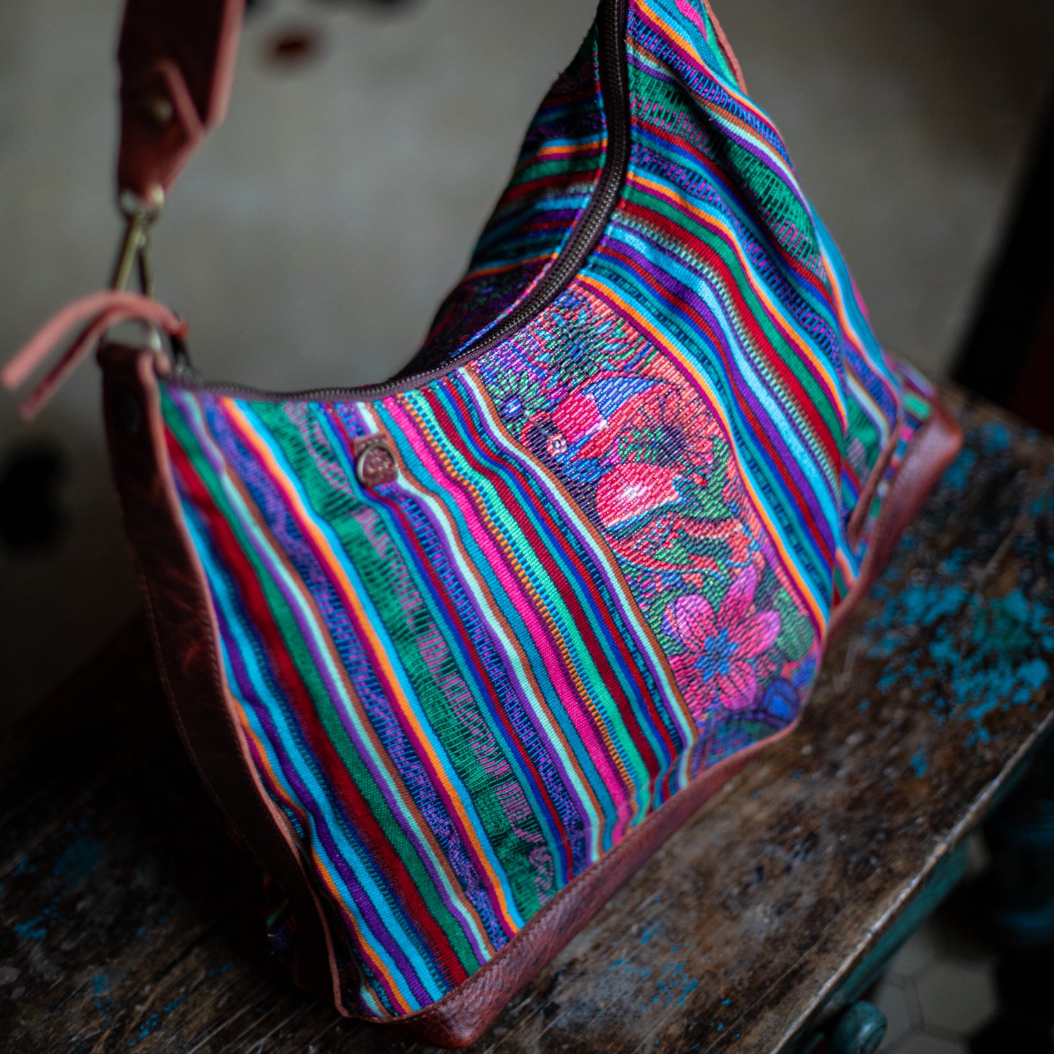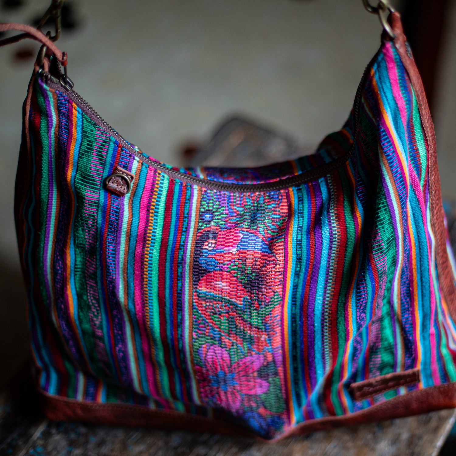 We make every effort to provide our customers with the best-handcrafted and high-quality bags. Please note that all our processes to make the bags are done by hand, from curing, cutting, and treating the leather to using up-cycled huipils. Our bags have natural characteristics and qualities that should not be considered as flaws or as damage because they do not interfere with the functionality of the bag. We up-cycle vintage Maya clothing to make beautiful one-of-a-kind products. Many times you will find snags in the pattern. This is normal. Should your patterned huipil snag you can snip the loose threads with scissors. Do not pull them.