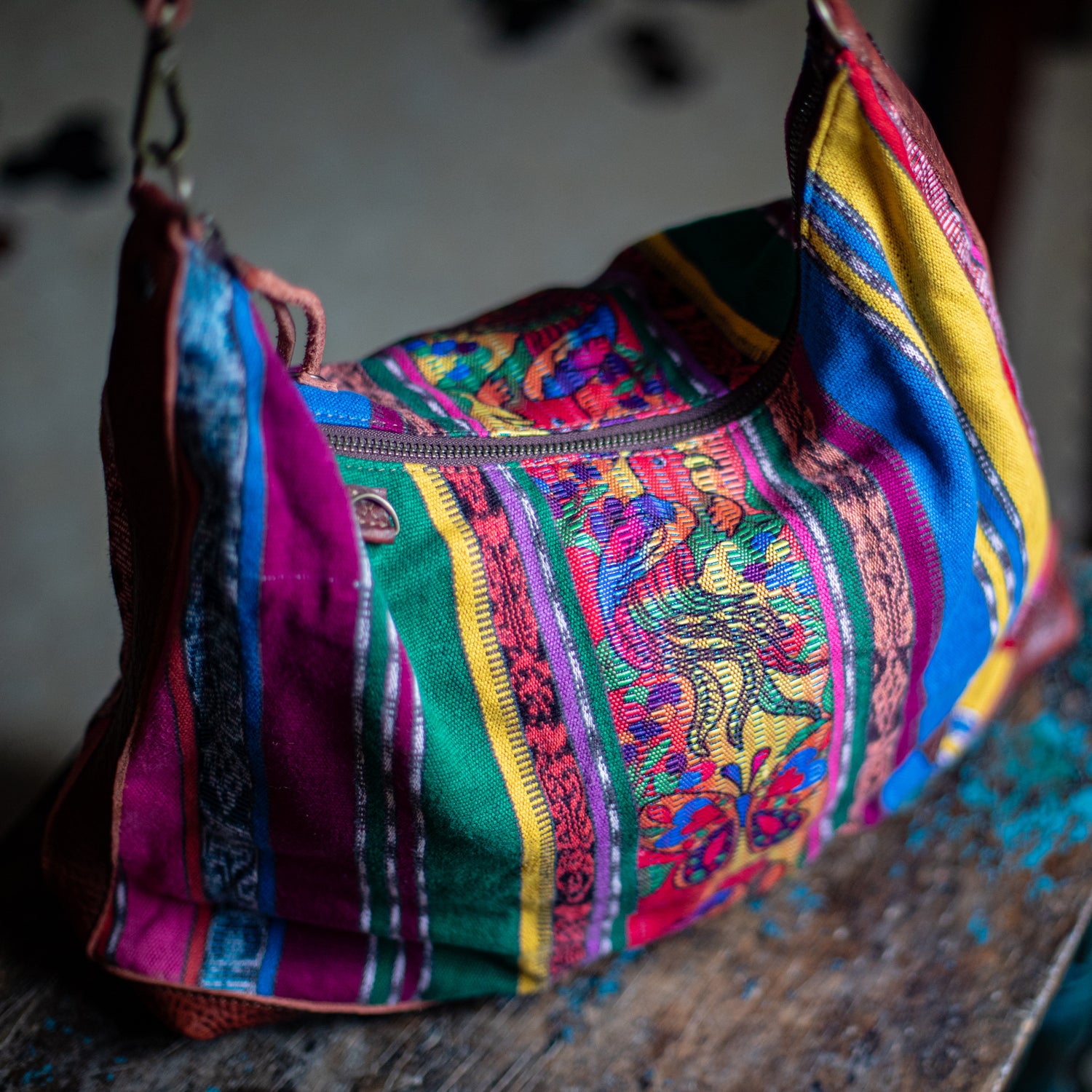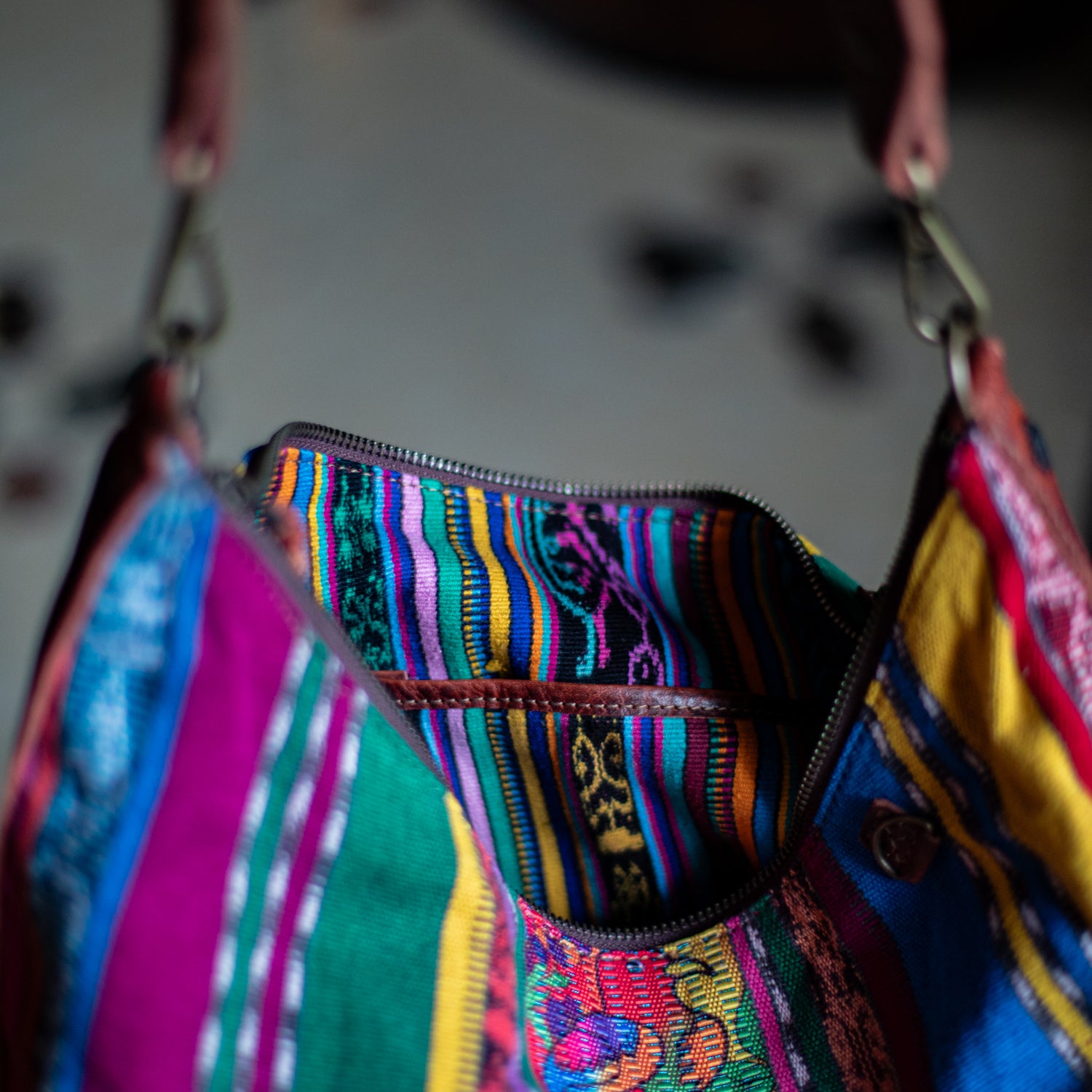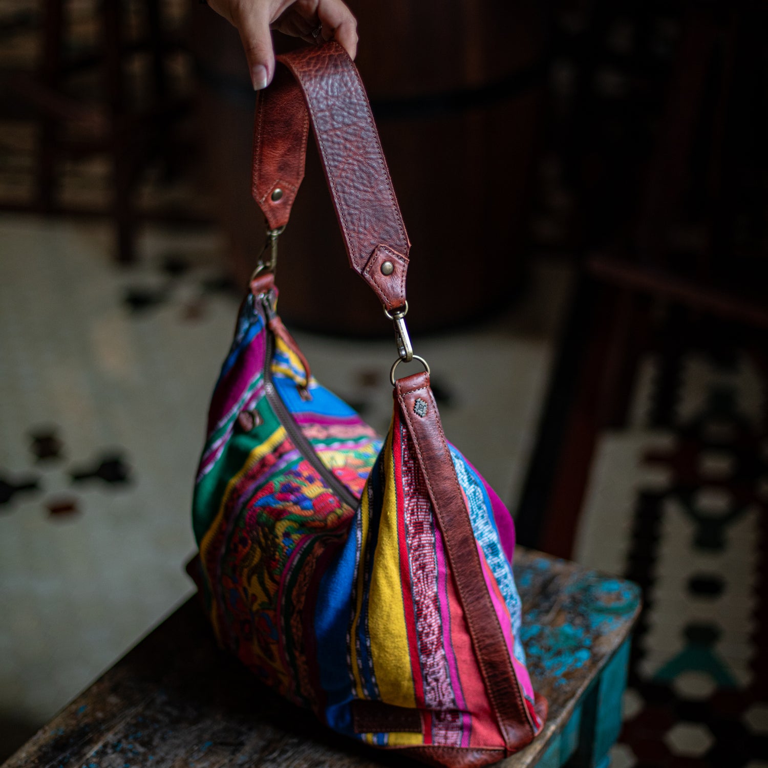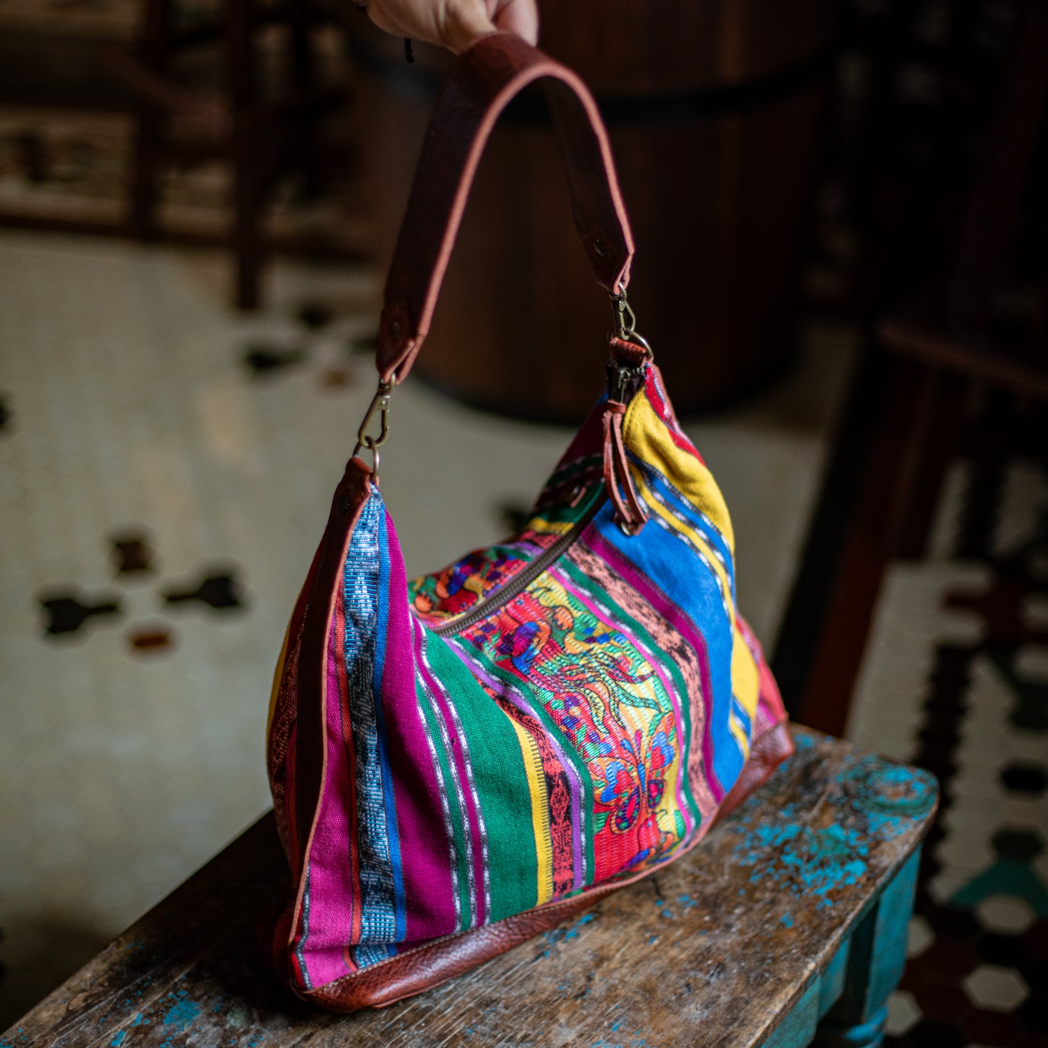 We make every effort to provide our customers with the best-handcrafted and high-quality bags. Please note that all our processes to make the bags are done by hand, from curing, cutting, and treating the leather to using up-cycled huipils. Our bags have natural characteristics and qualities that should not be considered as flaws or as damage because they do not interfere with the functionality of the bag. We up-cycle vintage Maya clothing to make beautiful one-of-a-kind products. Many times you will find snags in the pattern. This is normal. Should your patterned huipil snag you can snip the loose threads with scissors. Do not pull them.
