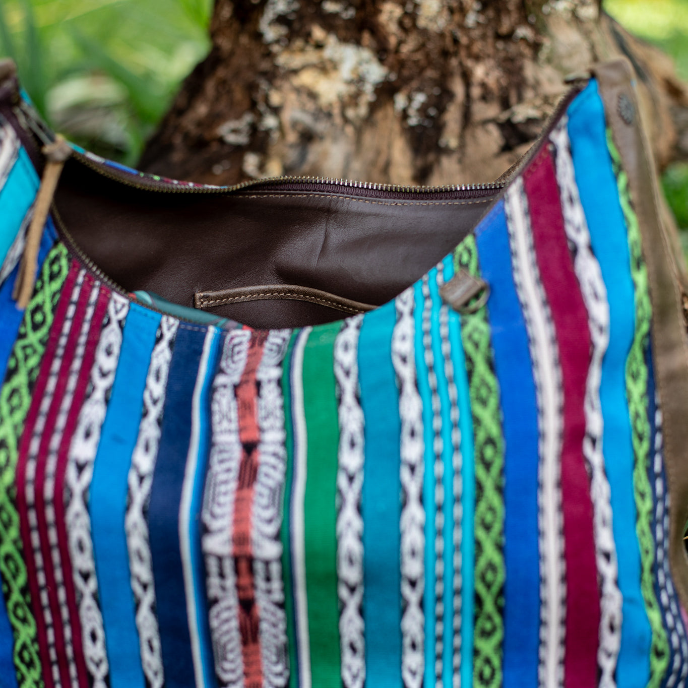 We make every effort to provide our customers with the best-handcrafted and high-quality bags. Please note that all our processes to make the bags are done by hand, from curing, cutting, and treating the leather to using up-cycled huipils. Our bags have natural characteristics and qualities that should not be considered as flaws or as damage because they do not interfere with the functionality of the bag. We up-cycle vintage Maya clothing to make beautiful one-of-a-kind products. Many times you will find snags in the pattern. This is normal. Should your patterned huipil snag you can snip the loose threads with scissors. Do not pull them.